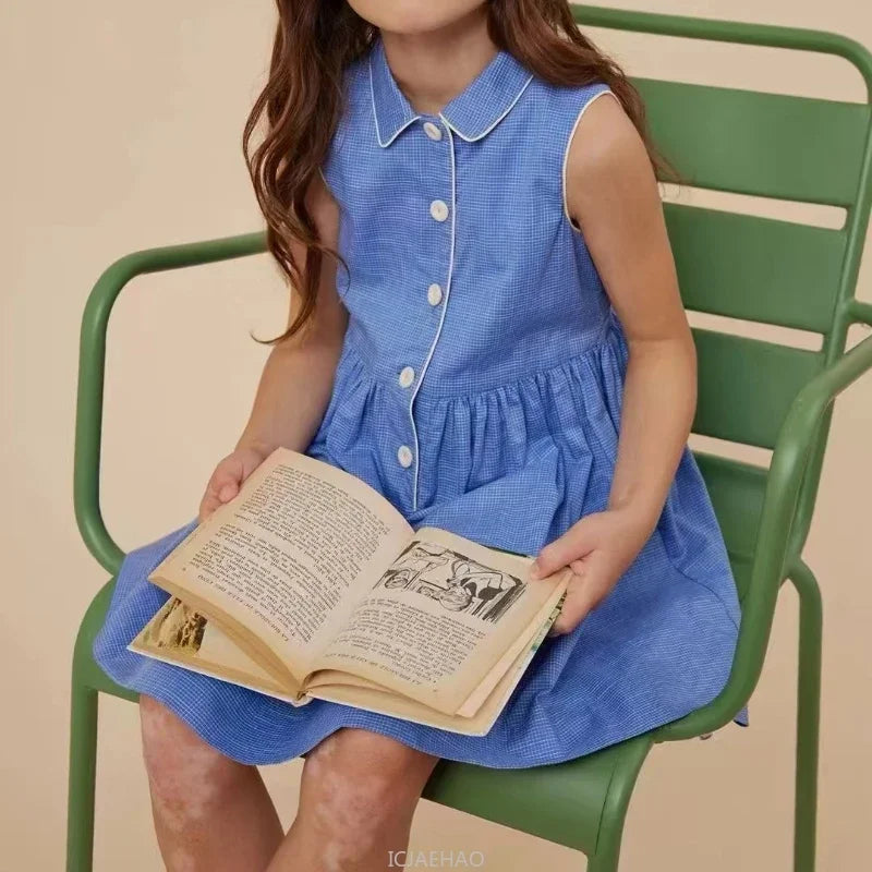 2025 New Kids Clothes Daily Wear Smocked Girls Dress Cotton ChildrenVacation Outfits Summer Casual Green Dresses Matching