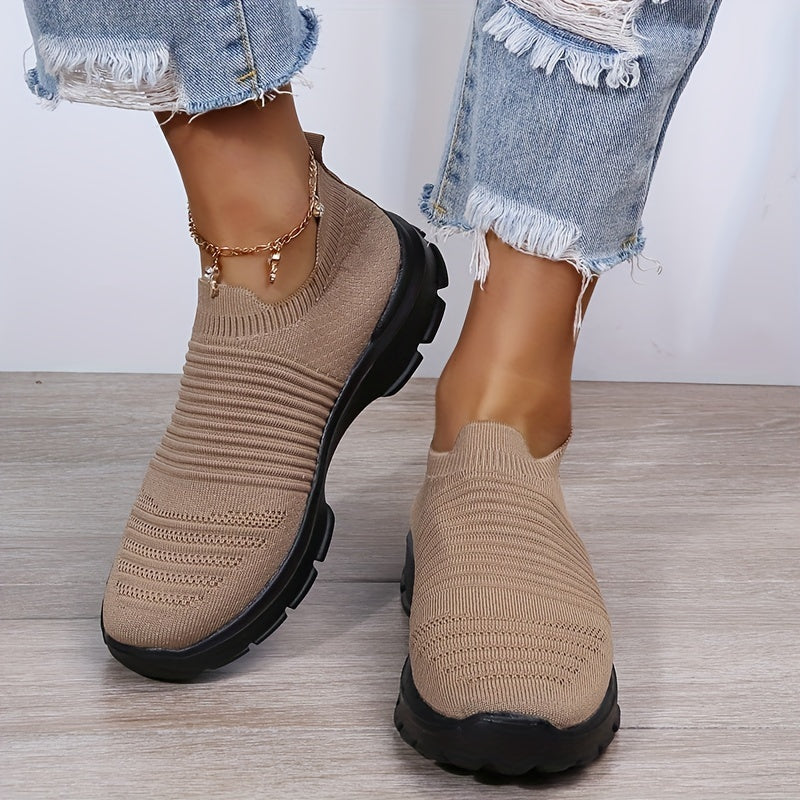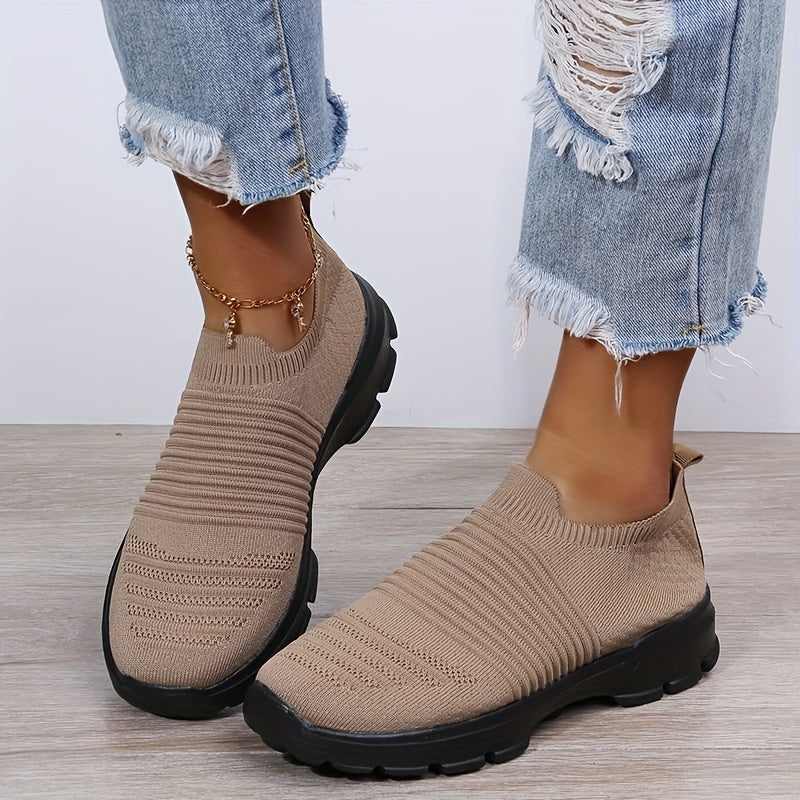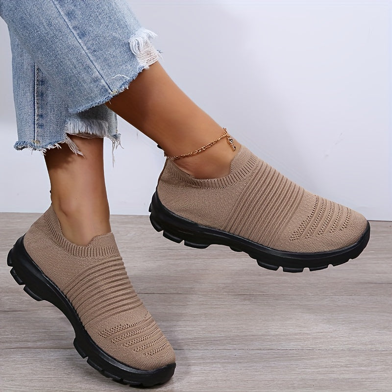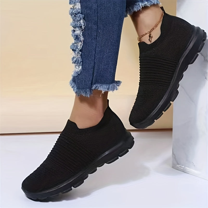 Women's Knit Soft Sole Breathable Mesh Sneakers, Solid Color Slip On Shoes, Women's Footwear