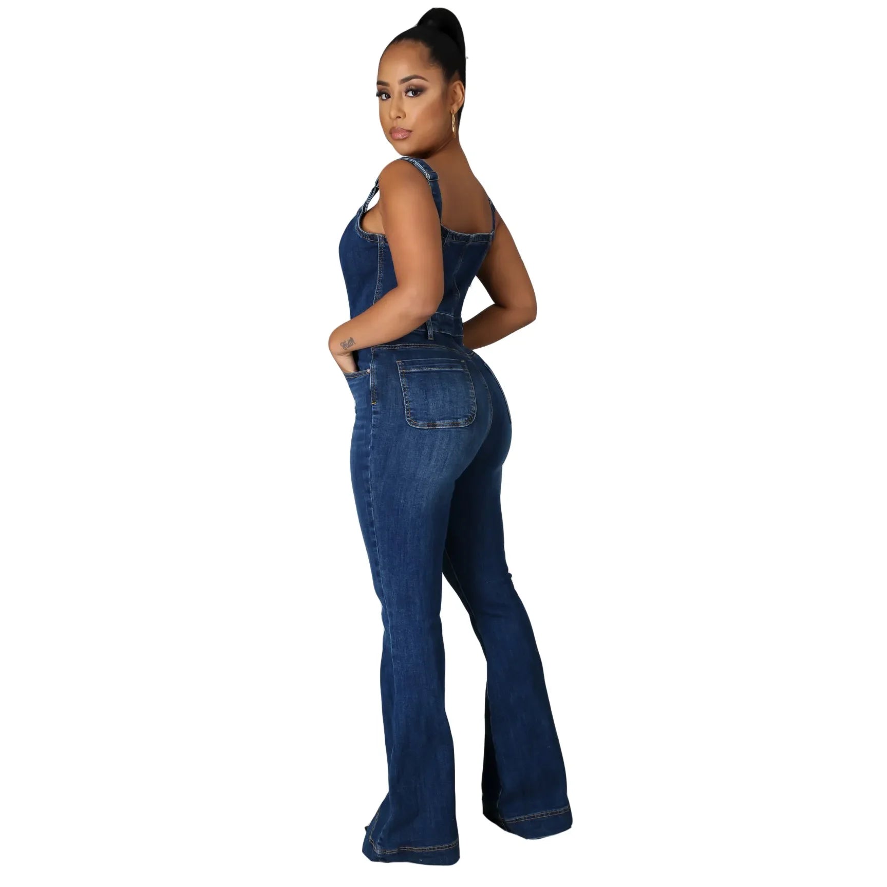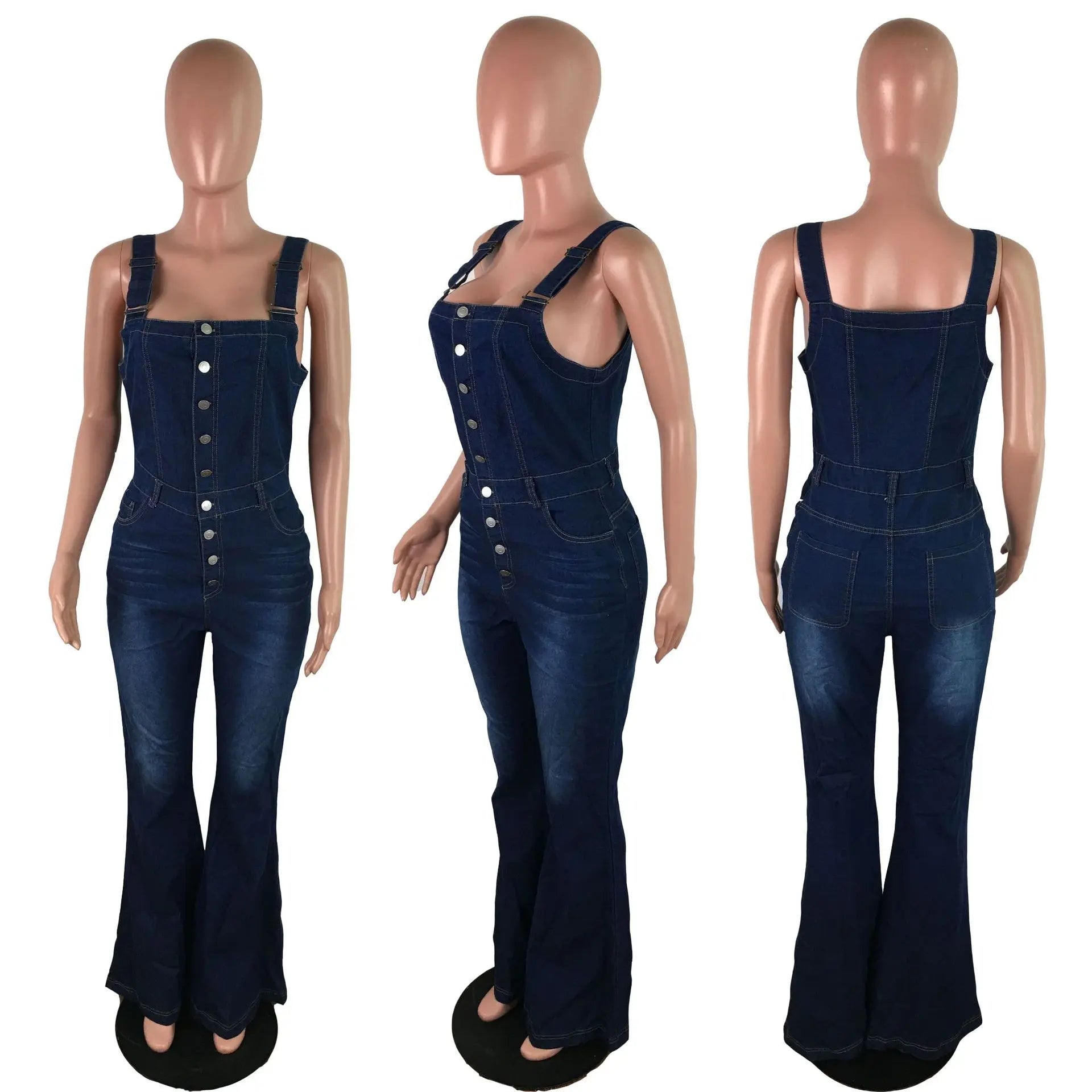 Women's Fashion Casual Sexy Denim Bib Jumpsuit Wide Leg Pants Jeans Woman