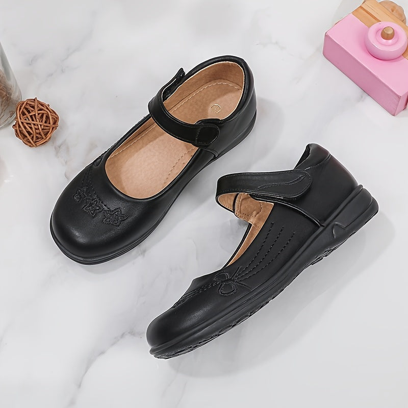 [School Essential] Girls' Black Mary Jane Flats with Bow Detail - Non-Slip, Comfortable PU Insole, Round Toe Casual & Performance Shoes for Students, Perfect for Spring/Autumn, Casual Youngsters Shoes|Strap Adornment Footwear