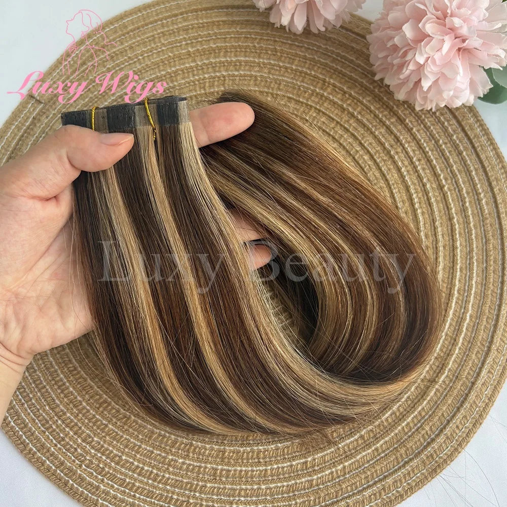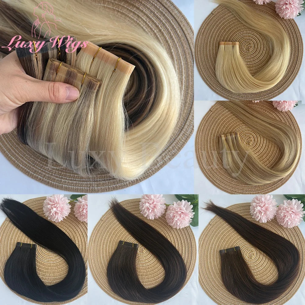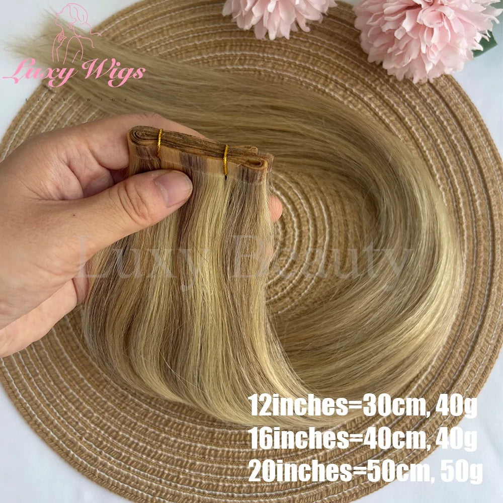 Long PU Tape Weft Human Hair Extensions Balayge Blonde PU Skin Weft Tape in Hair Extensions No Glue Human Hair For Fine Hair