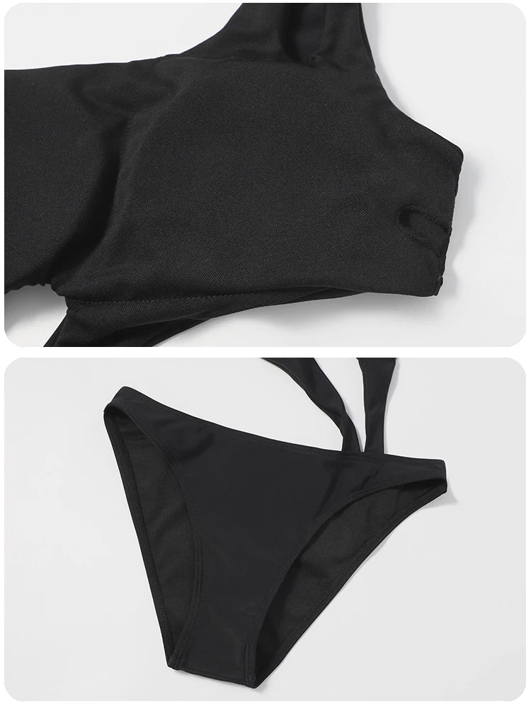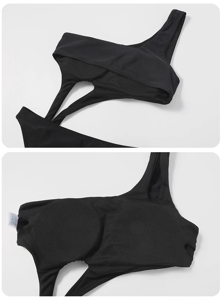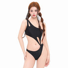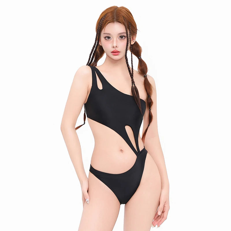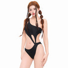 Black Women Swim Suit One-piece Swimsuits Korean Fused Swimwear Ladies Bathing Suits Off Shoulder Bodysuit Monokini Beachwear
