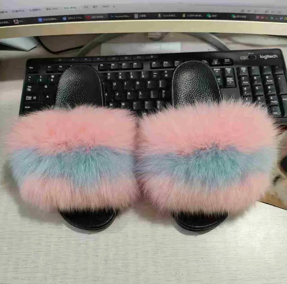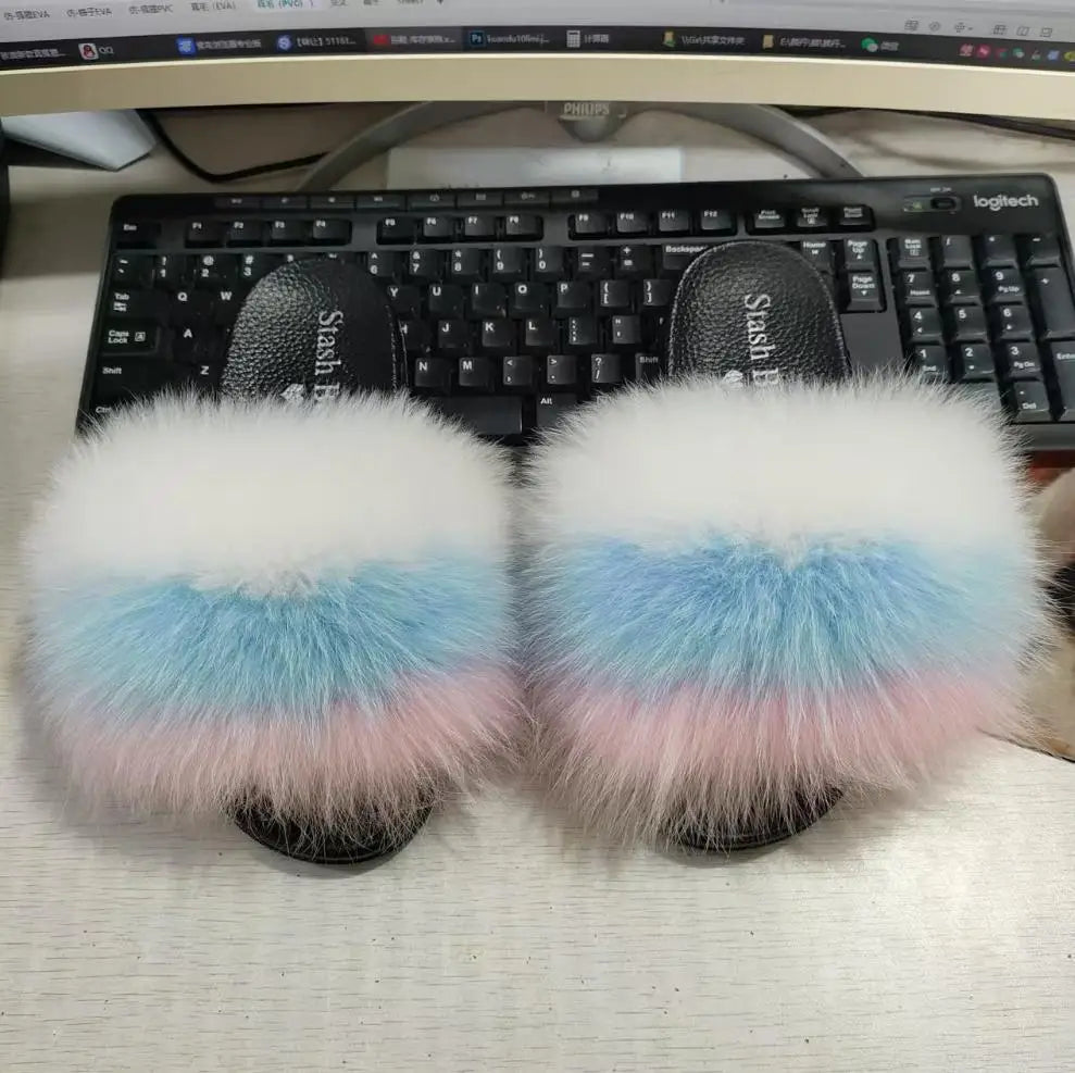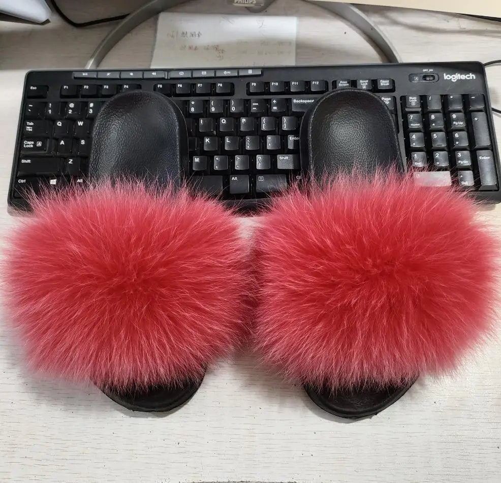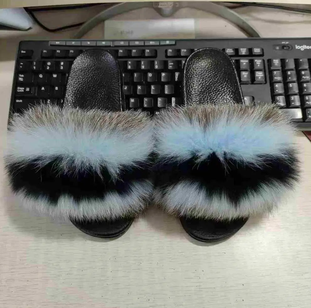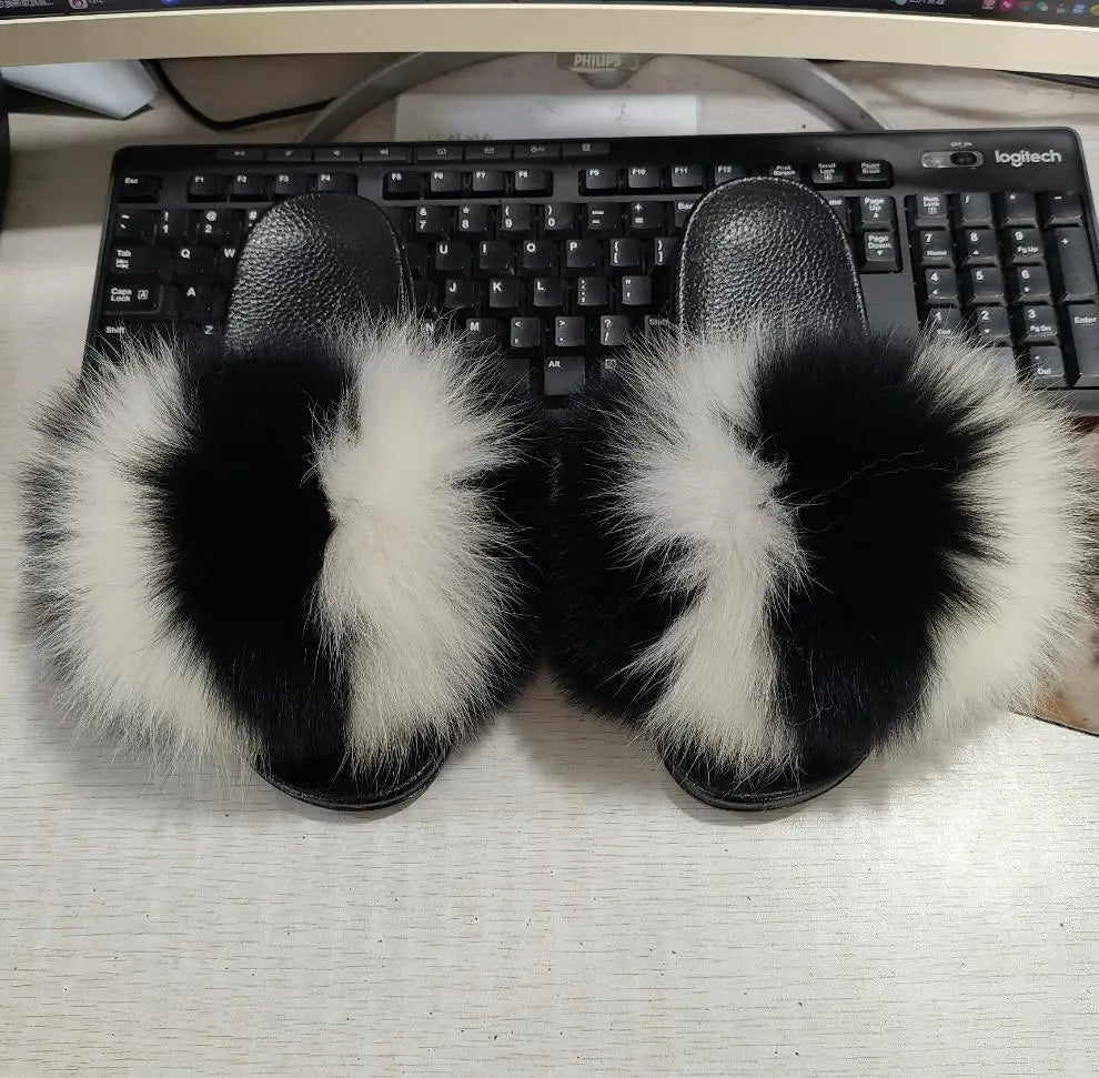 Real Fox Fur Slippers