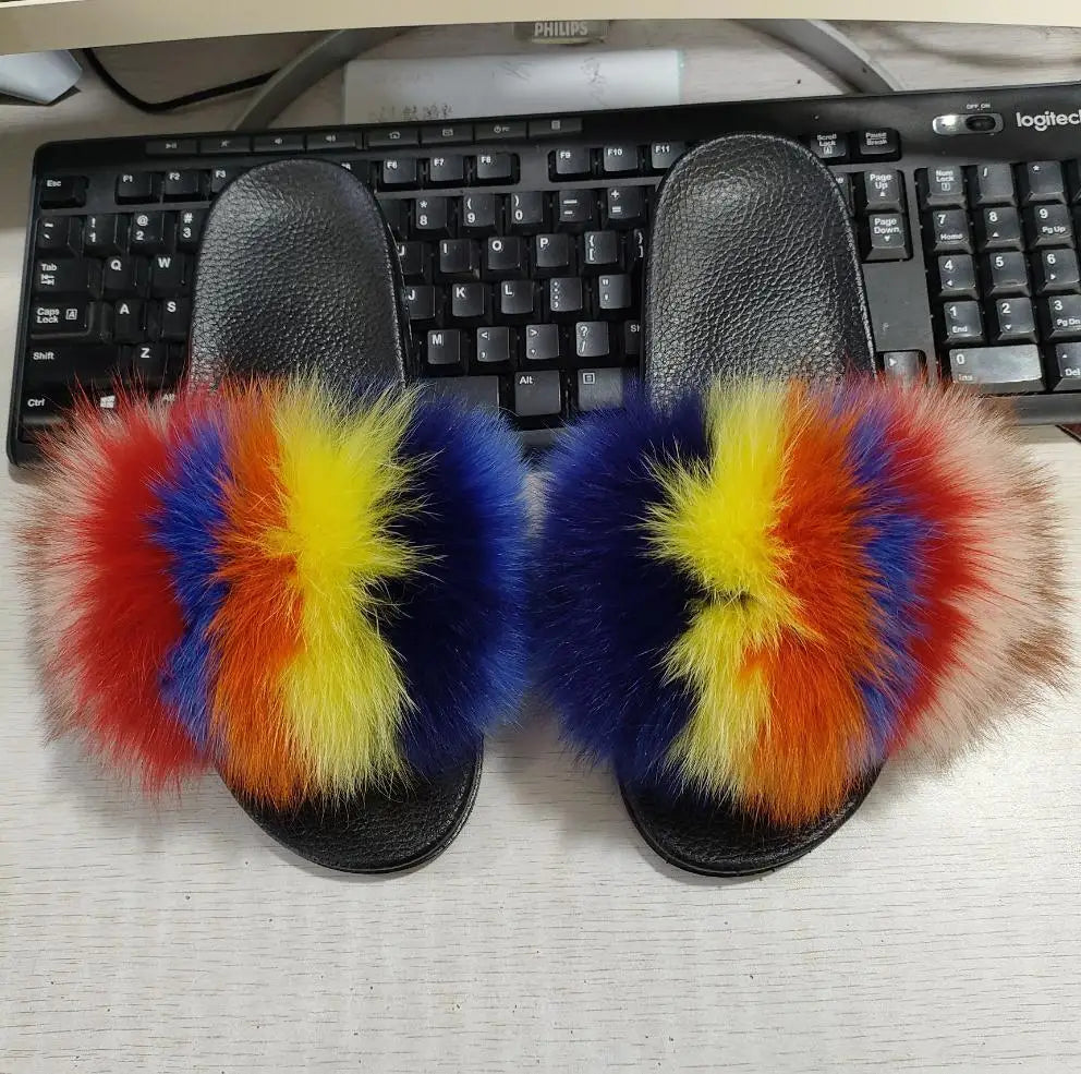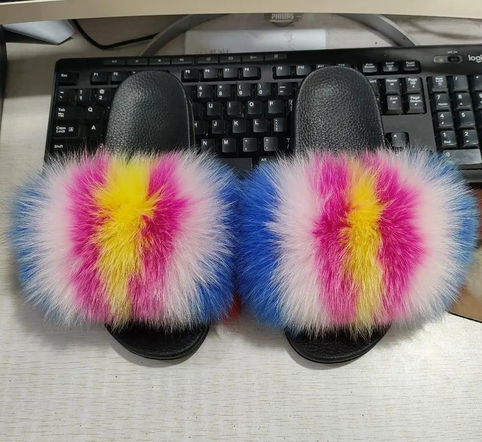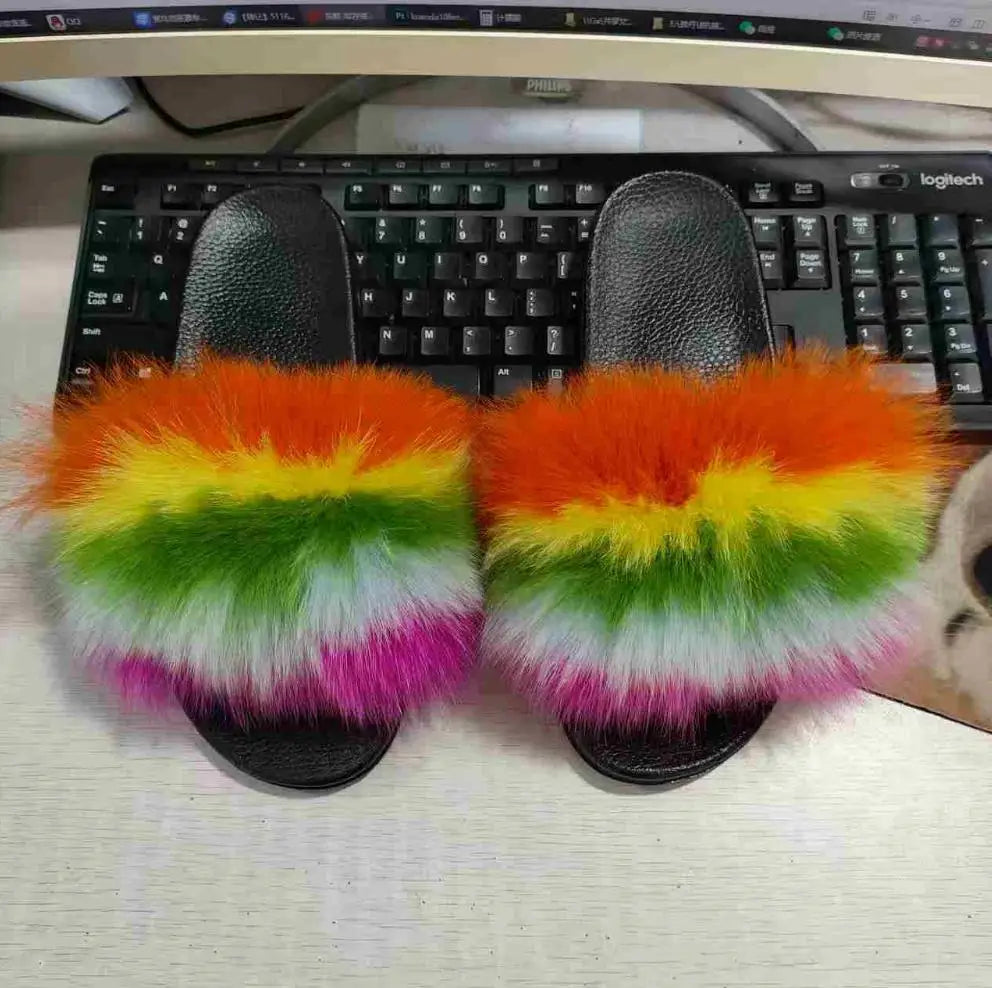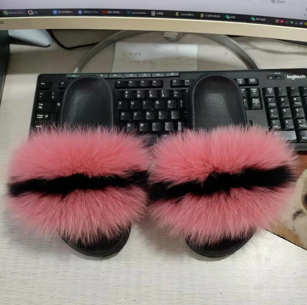 Real Fox Fur Slippers