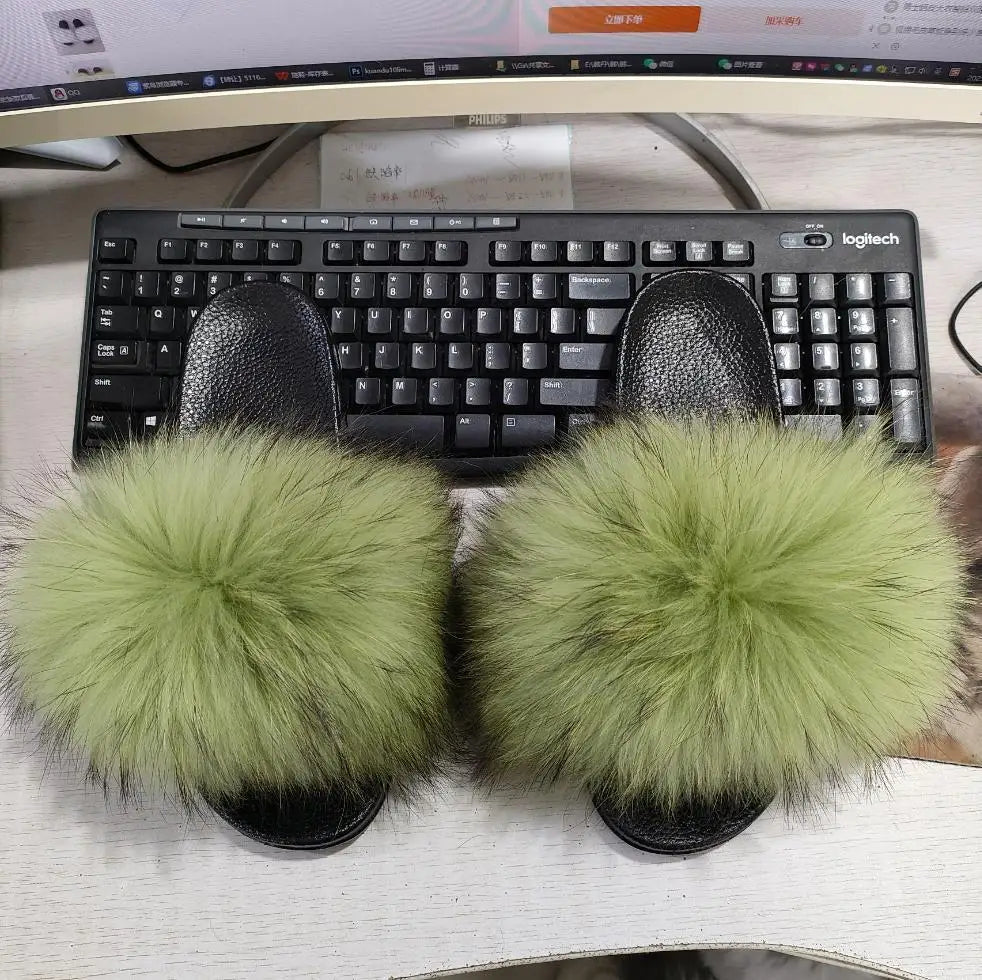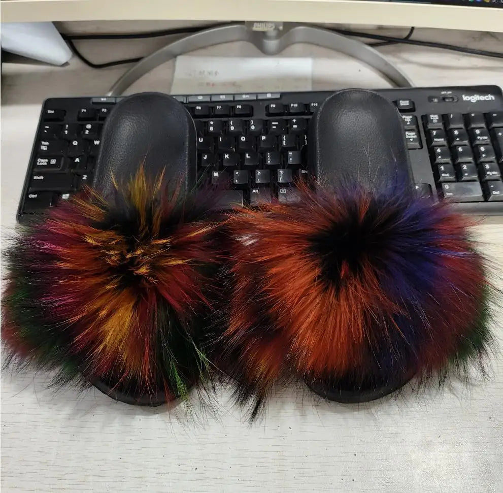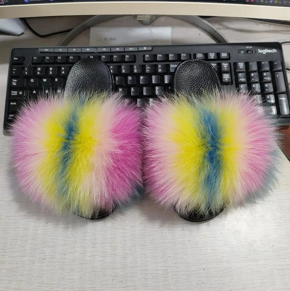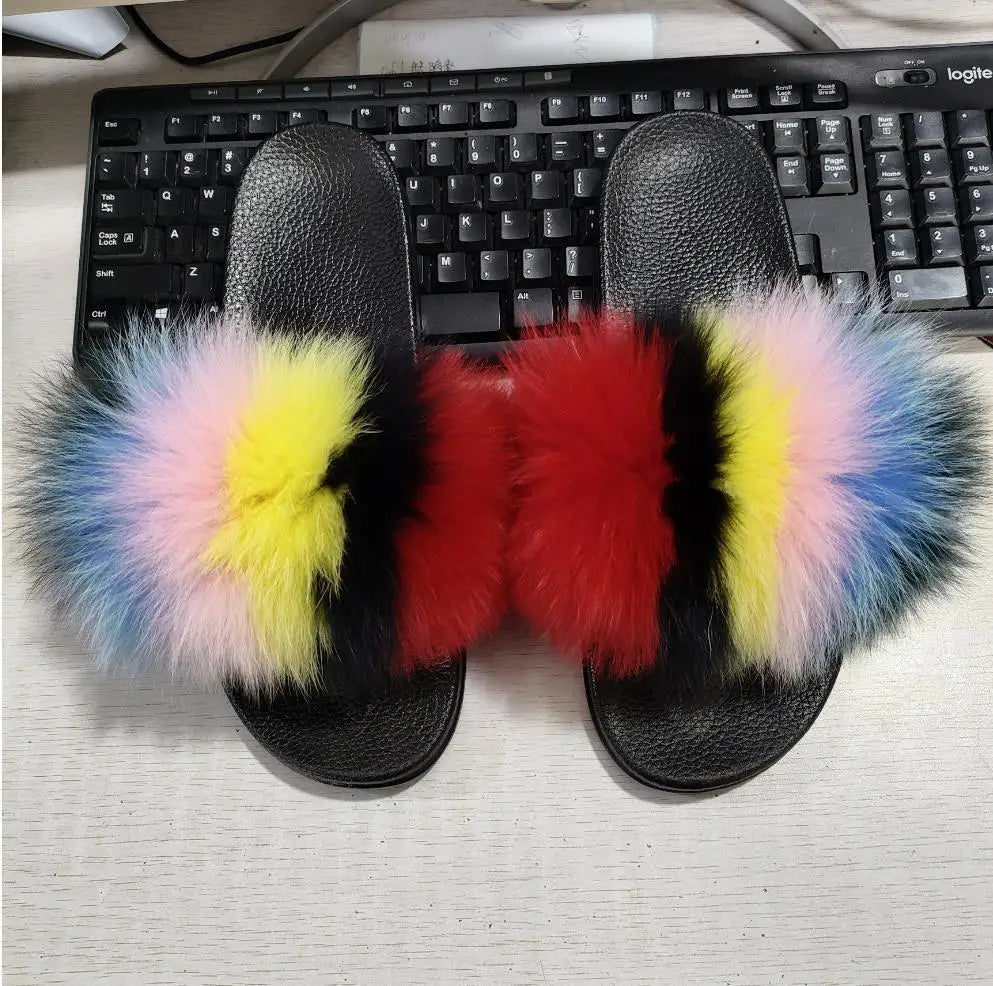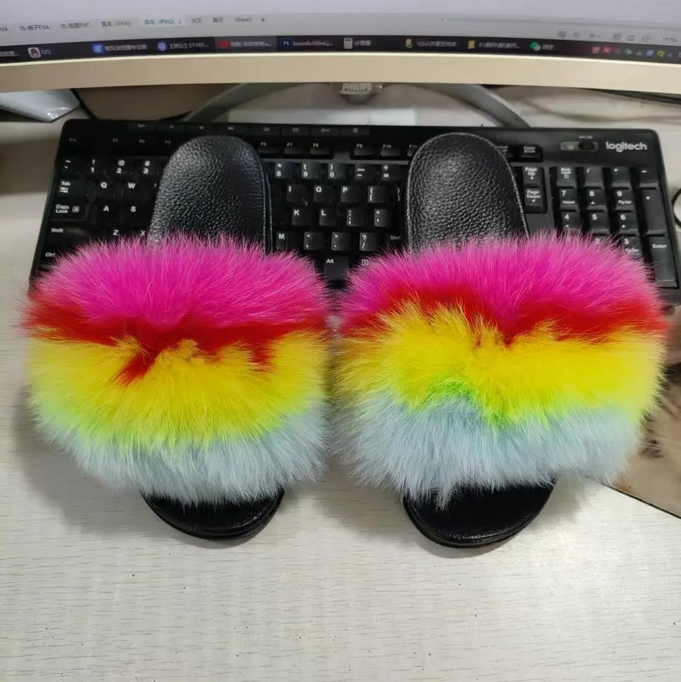 Real Fox Fur Slippers