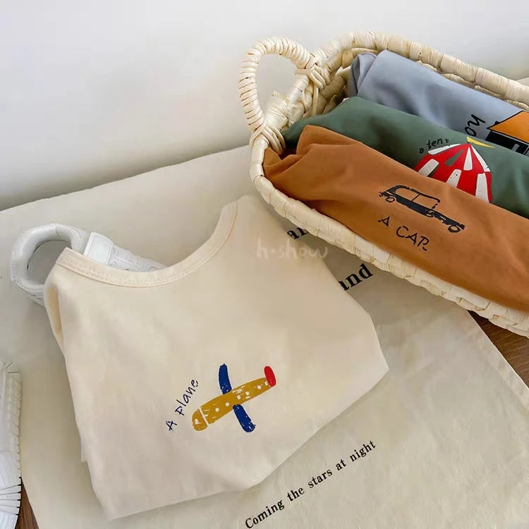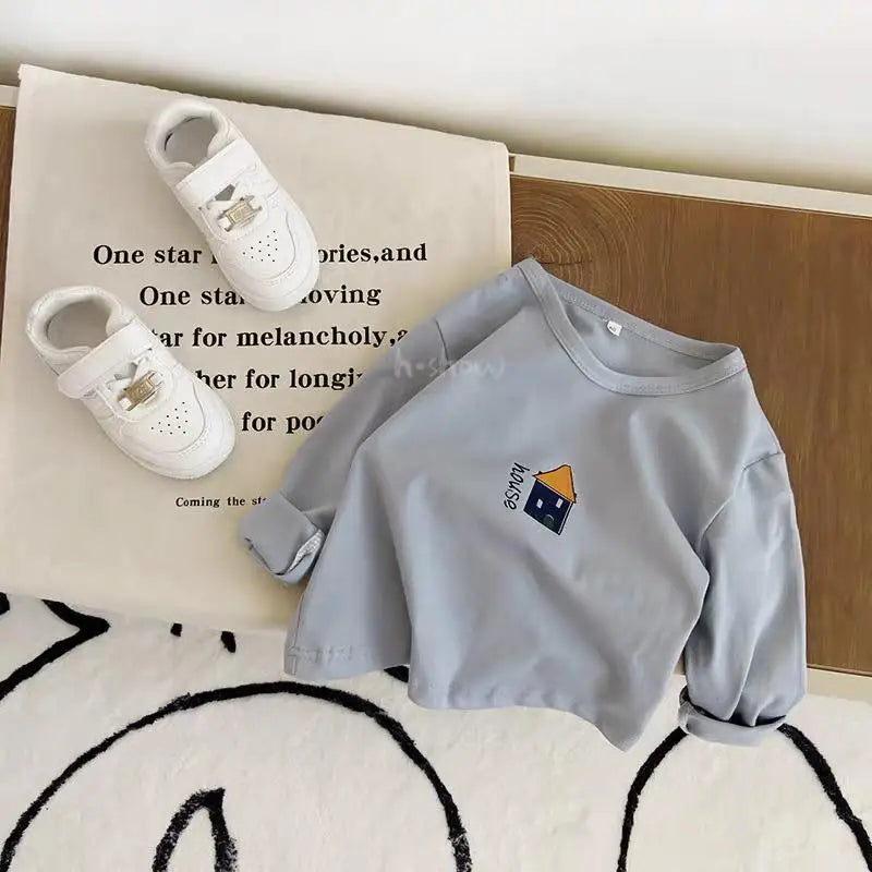 1-6 Age Children's Clothes Tops Tees Long Sleeved Popular Design Crewneck Pullover Blouse Boy Autumn Clothing Bottoming Shirts
