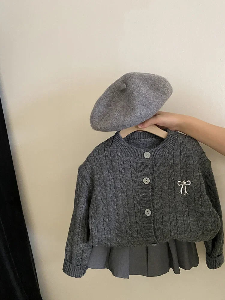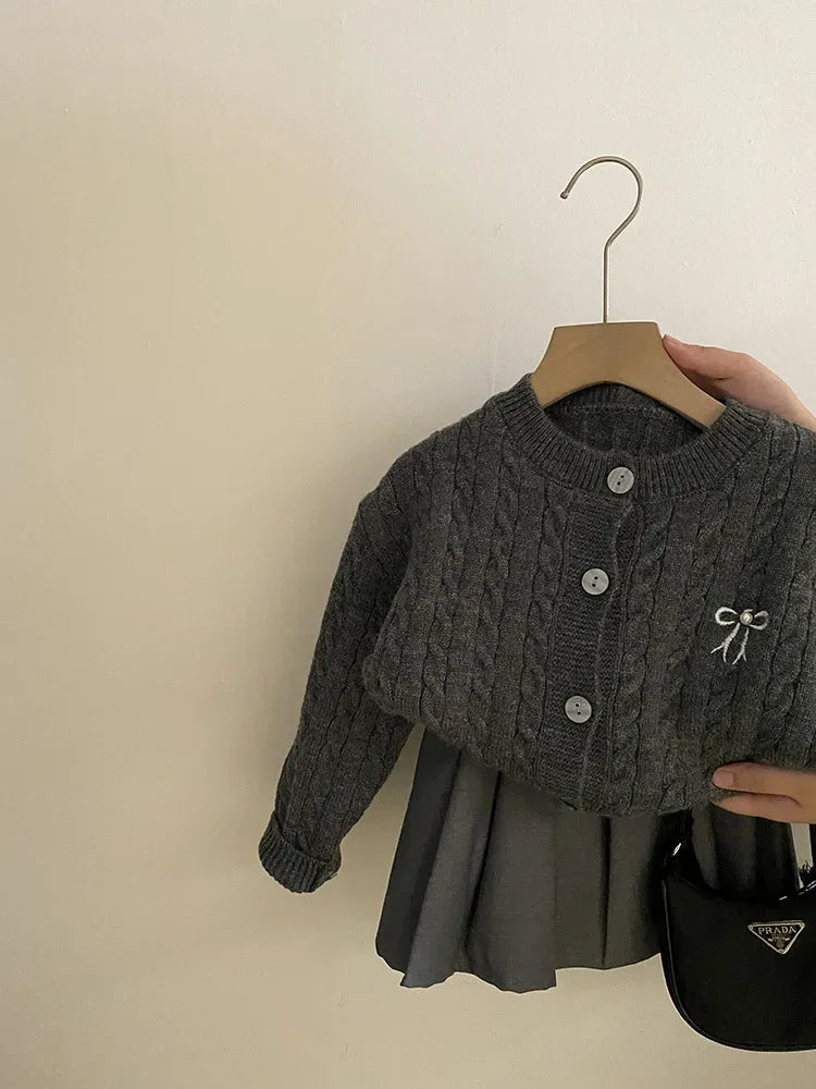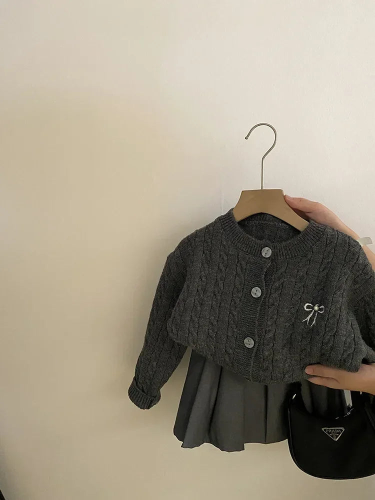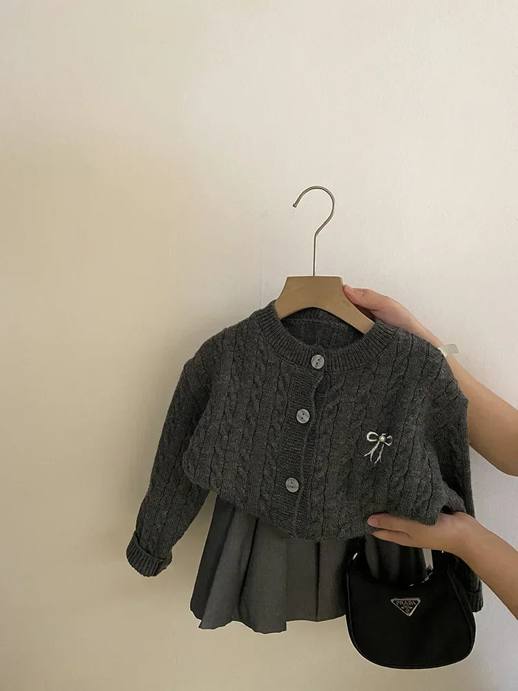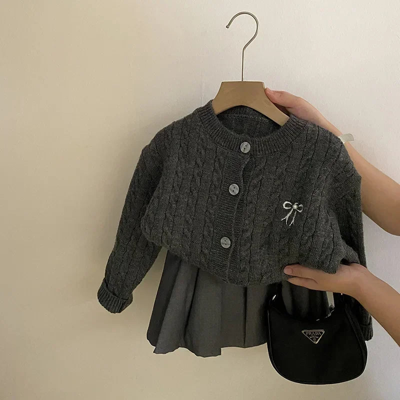 Children Clothes 2025 Spring Bow Twist Knit Cardigan Coat Sweater Pleated Skirt Princess Sets for Baby Girls Outfits Kintter Top
