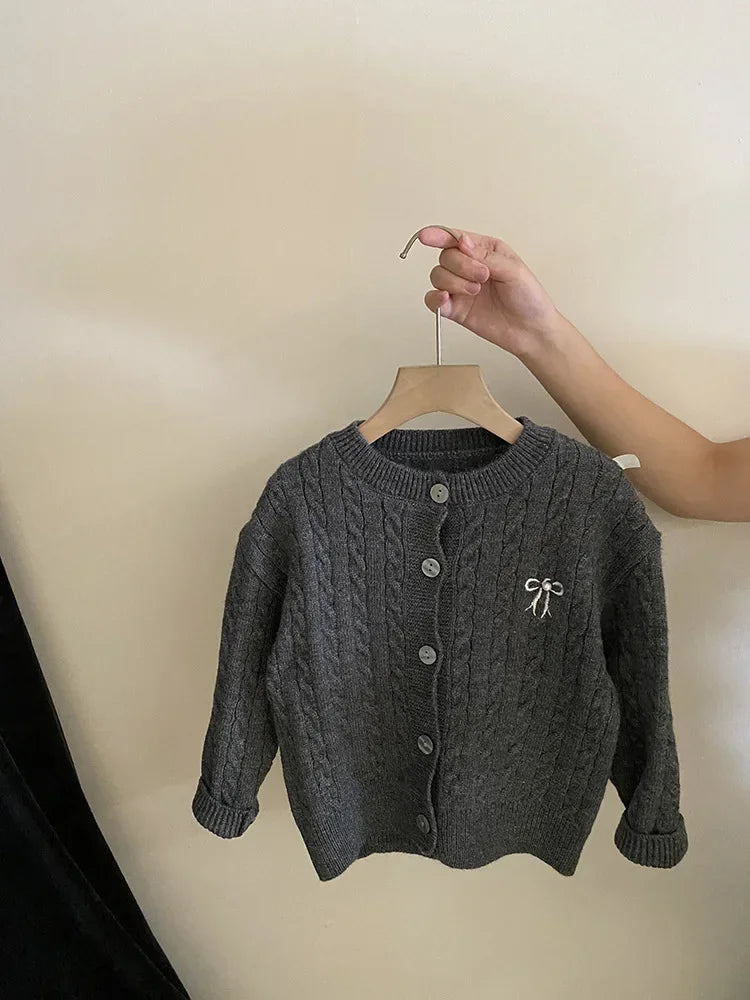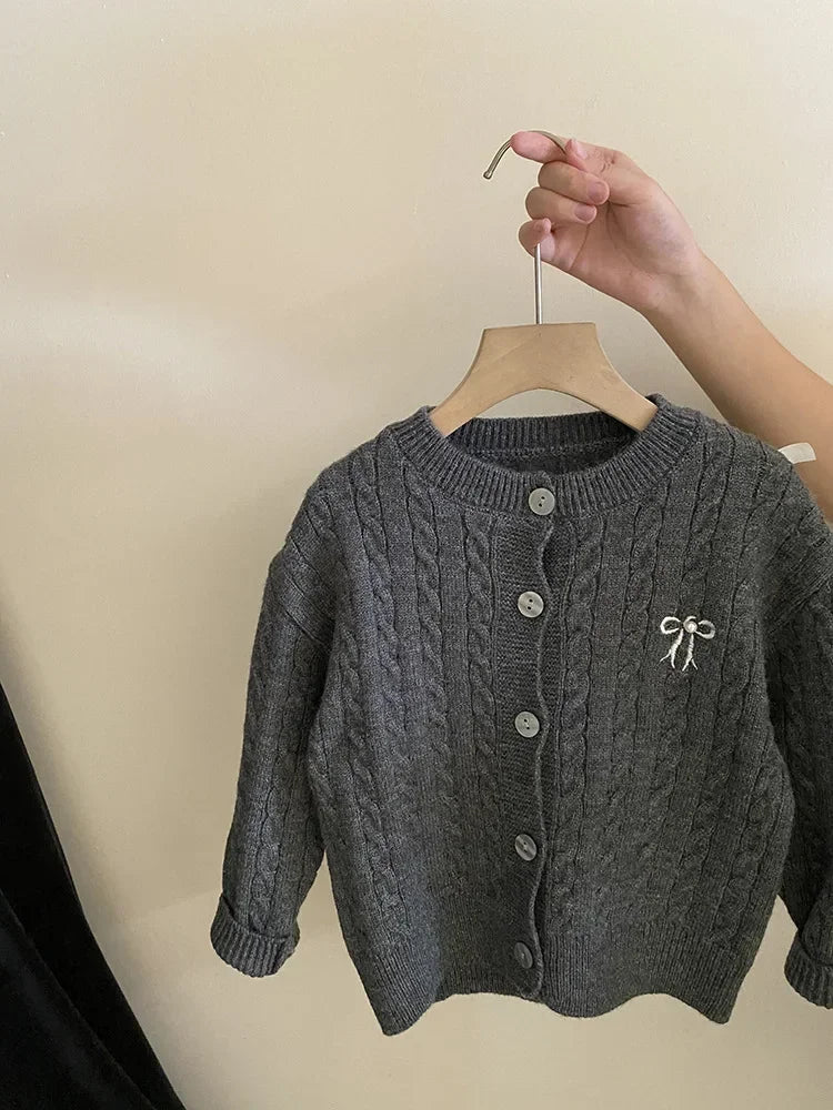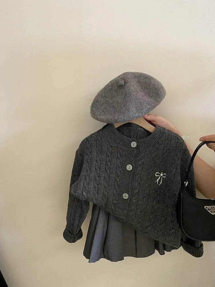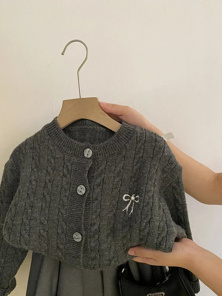 Children Clothes 2025 Spring Bow Twist Knit Cardigan Coat Sweater Pleated Skirt Princess Sets for Baby Girls Outfits Kintter Top