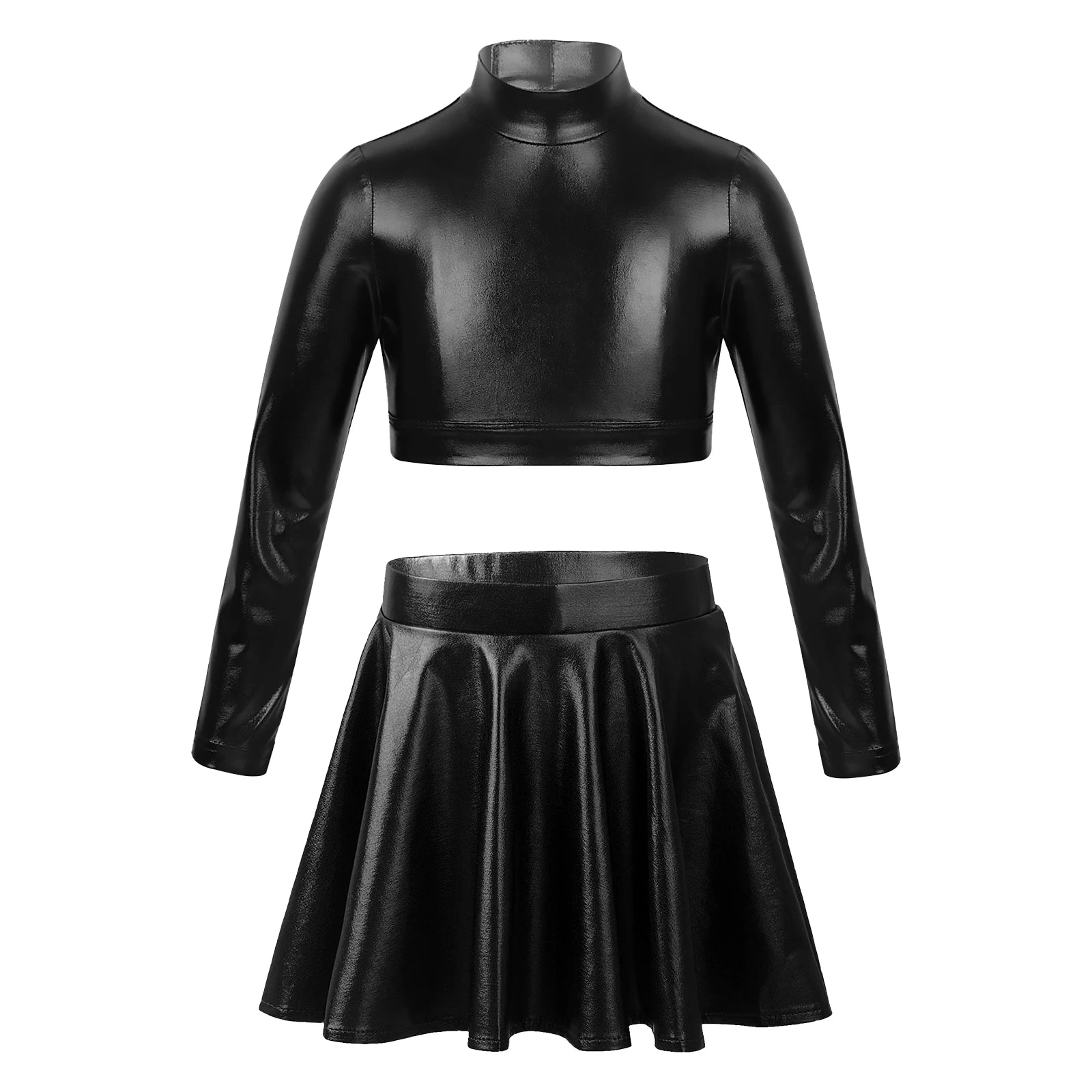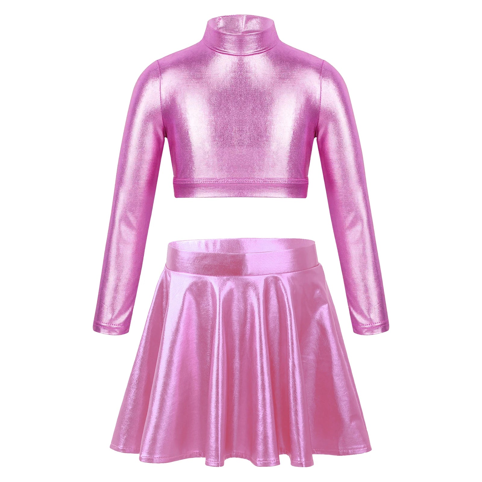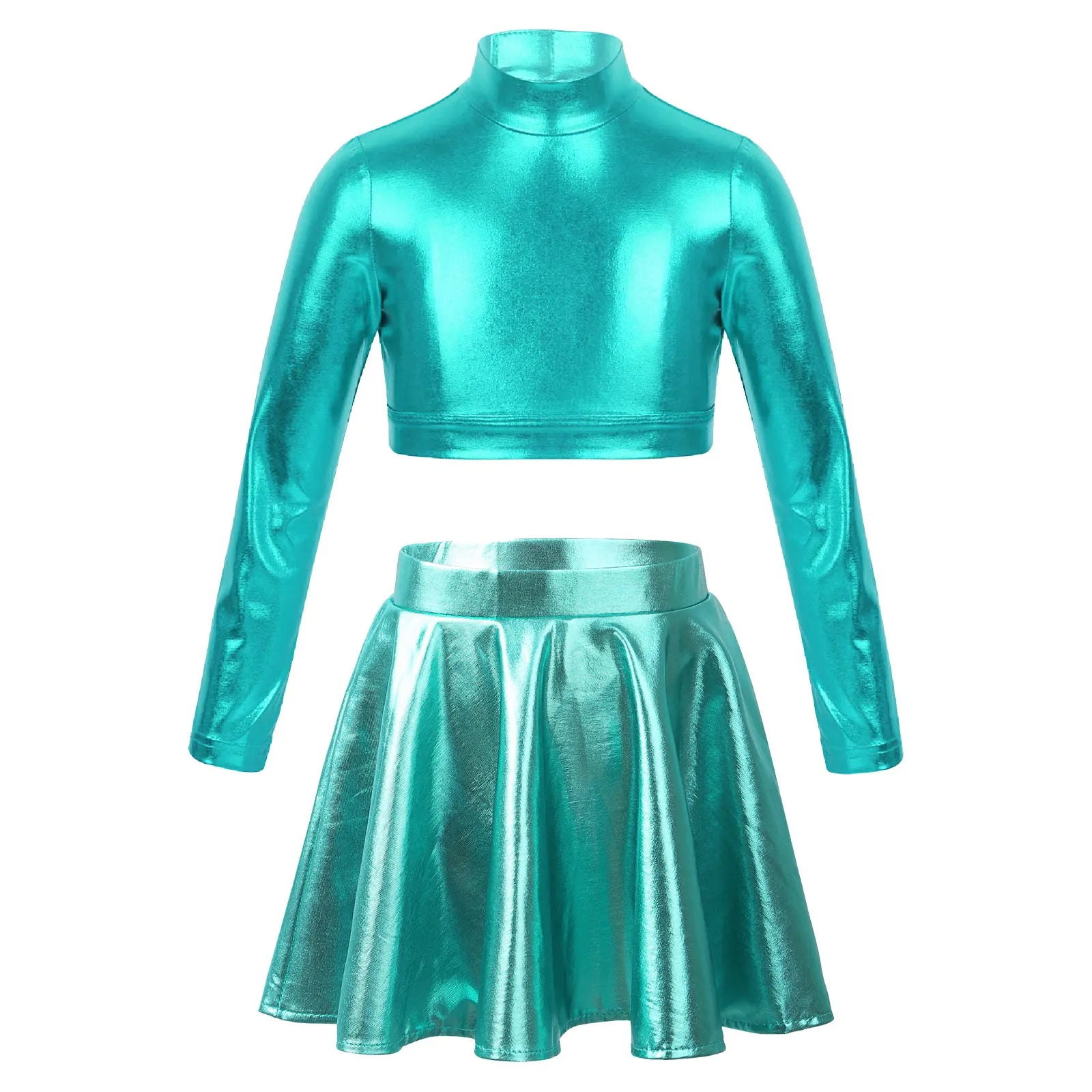 Children Clothing Girl Metallic Sleeveless Tops Flared Pleated A-Line Mini Short Skirt Kids Outfits 2pcs Clothes Set Dance Wear