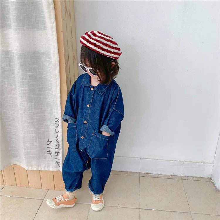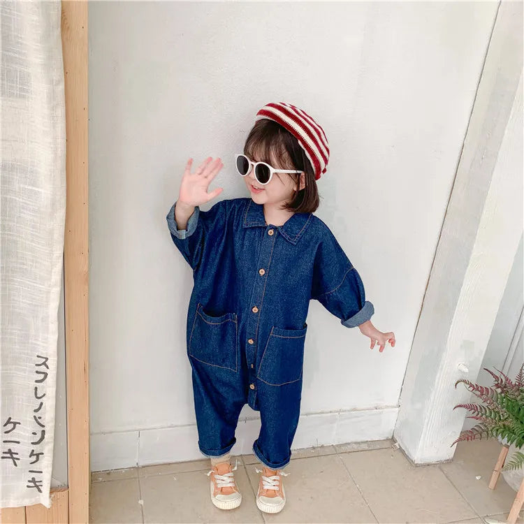 Children Clothing Jumpsuit 2022 Autumn New Boys Girls Casual Letter Tooling Denim Baby Kids Clothes Japanes & Korean Style 1-7 Y