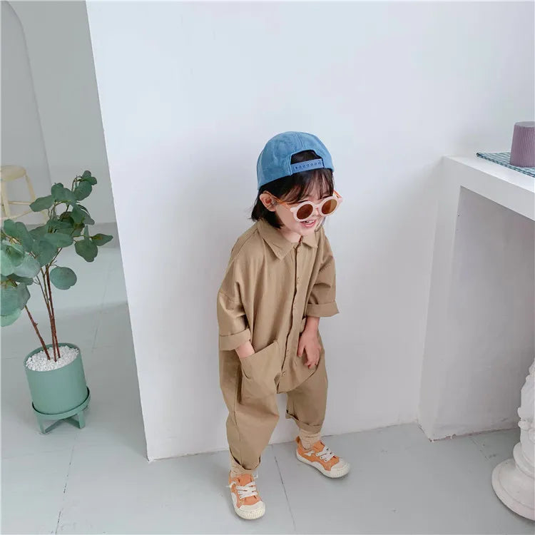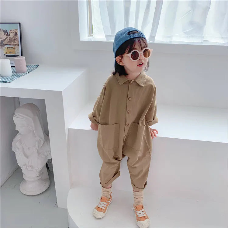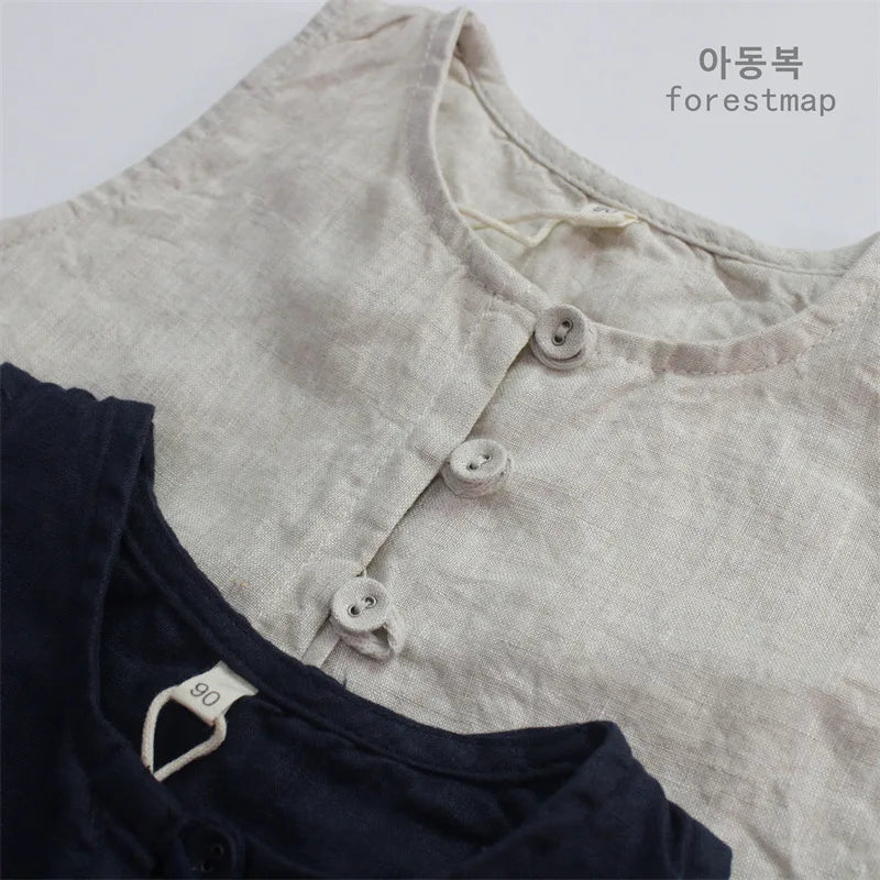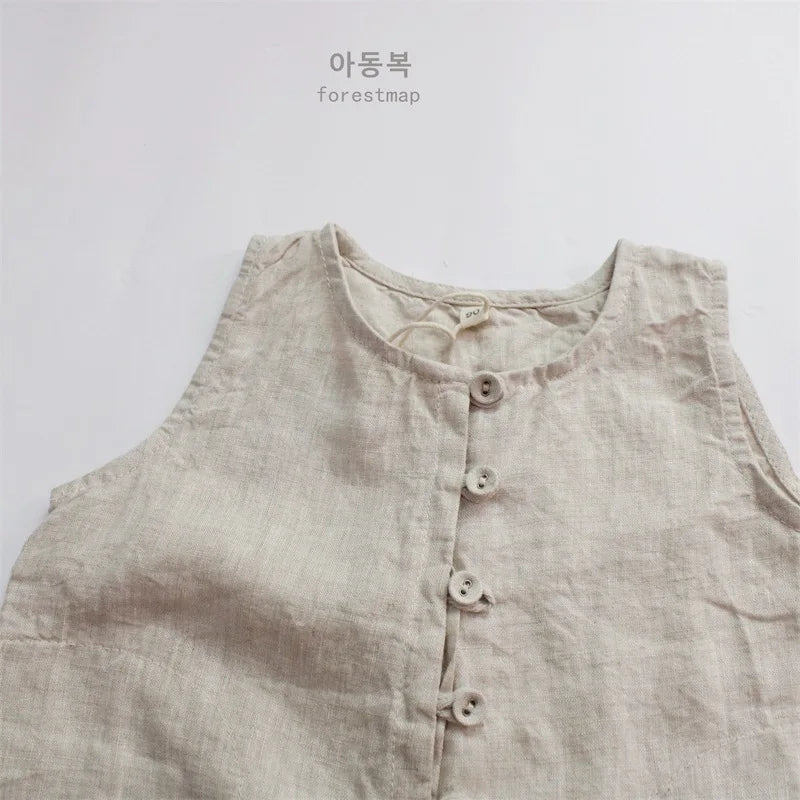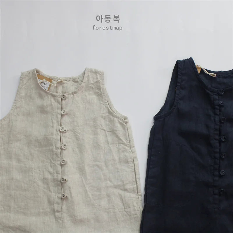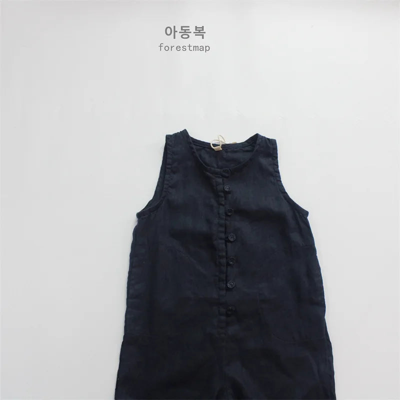 Children Clothing Kids Jumpsuit Linen Overalls Loose Sleeveless Rompers Solid Color Casual Simple Kids Clothes