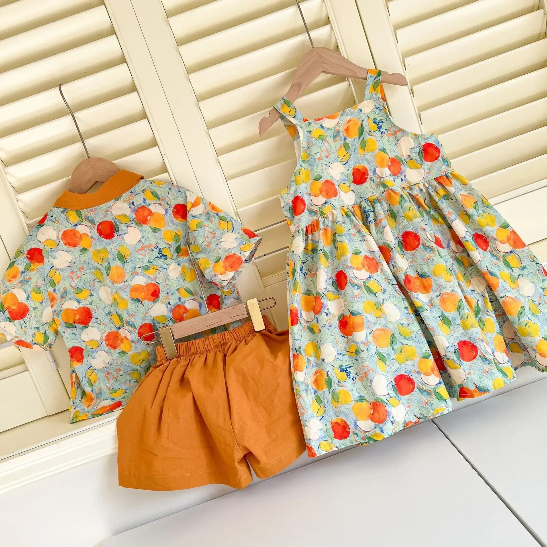 Children's Clothes 2025 Summer New Leisure Baby Girl Suspender Dress Or Boy's Suit Brother And Sister Clothes