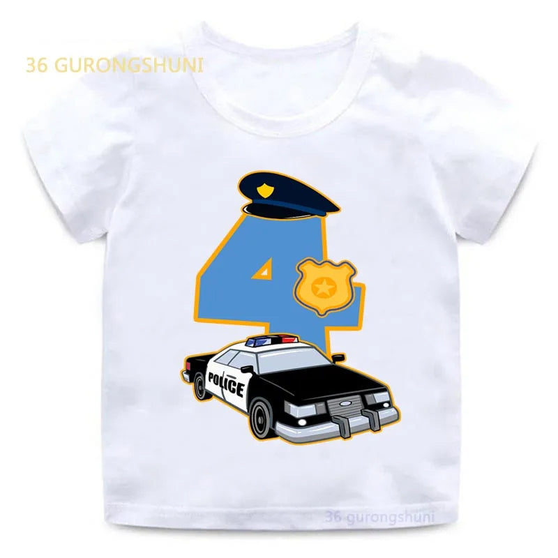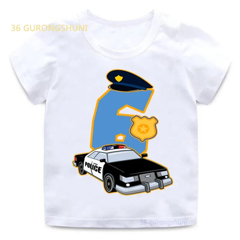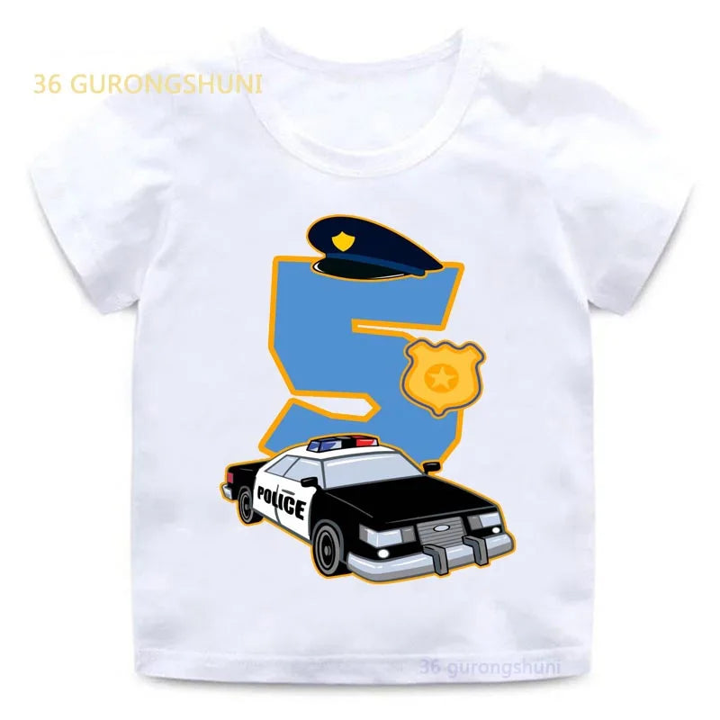 children clothing Cartoon t Shirt For Girls Tshirt Girl t-shirts 2 3 4 5 6th birthday police Kids Clothes Boys Graphic t Shirts