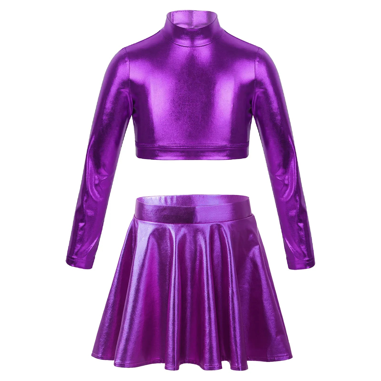 Children Clothing Girl Metallic Sleeveless Tops Flared Pleated A-Line Mini Short Skirt Kids Outfits 2pcs Clothes Set Dance Wear