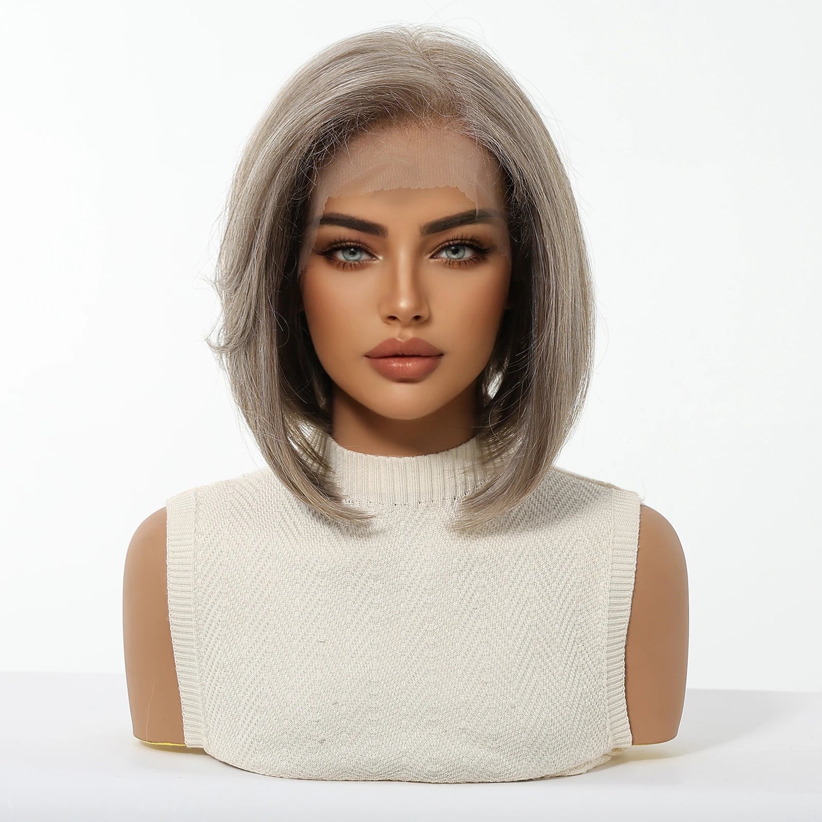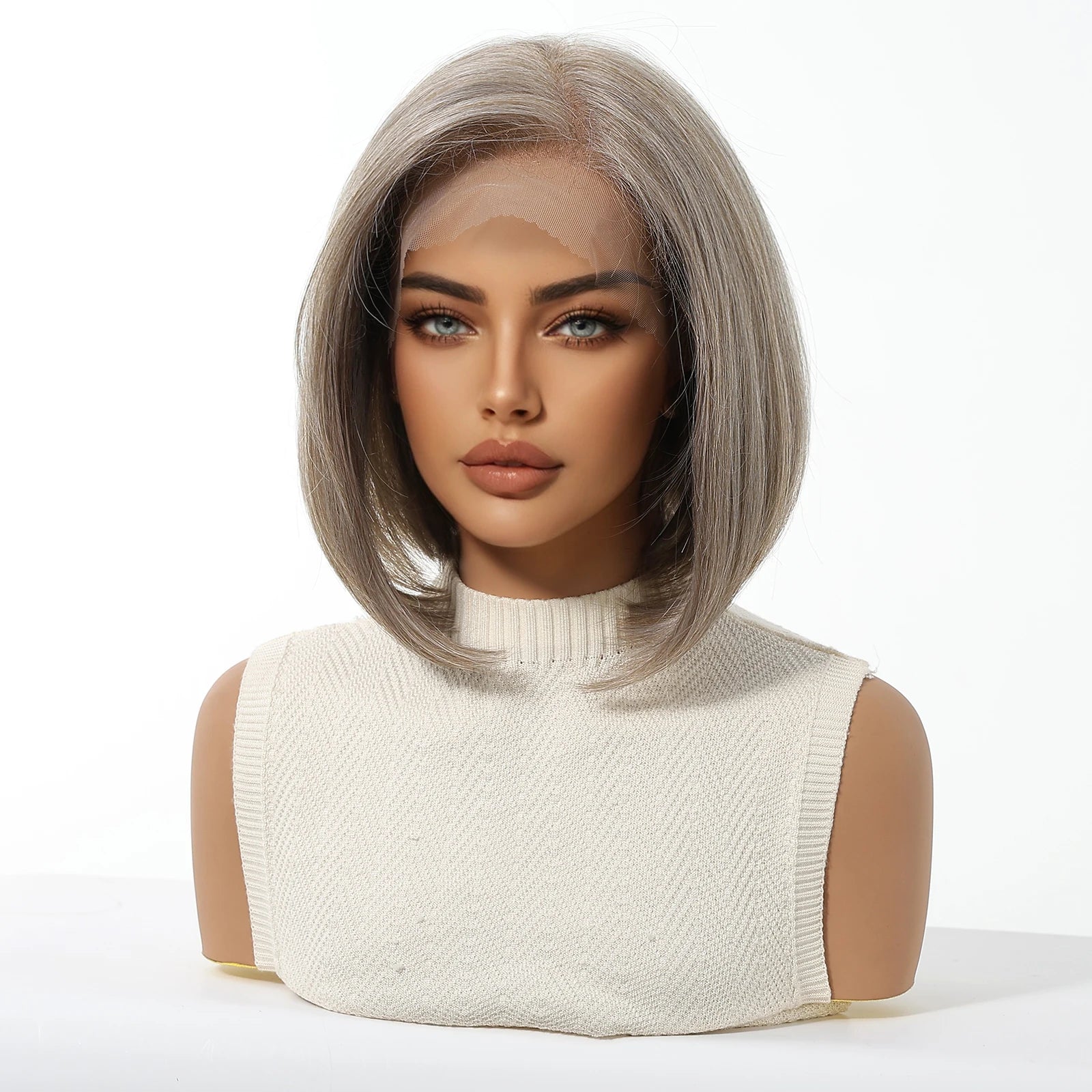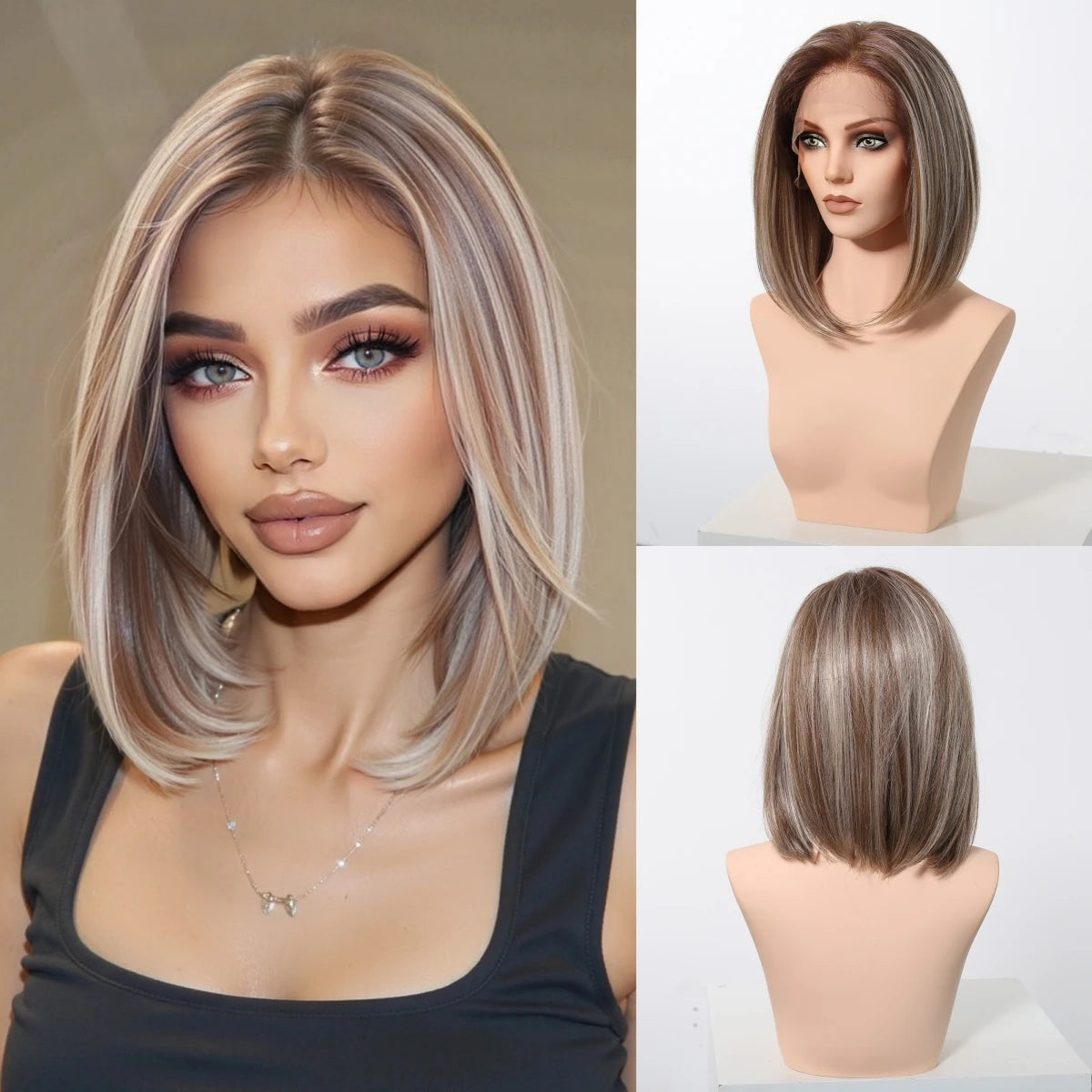 Elevate your look with this 13x6 HD lace front wig—blonde and mixed brown synthetic hair, short and straight, heat-resistant, perfect for daily wear and party glam!