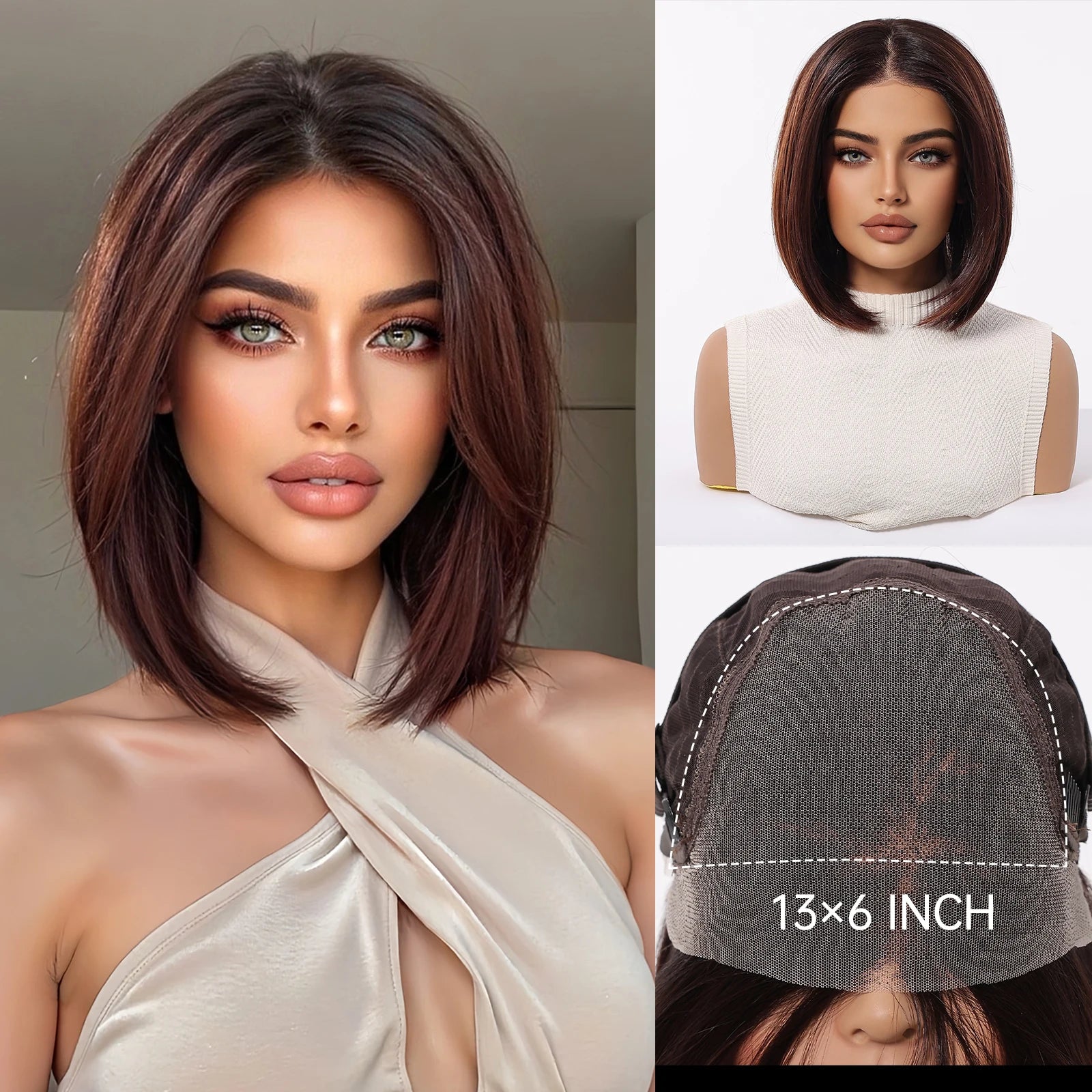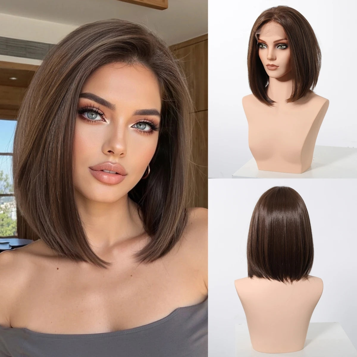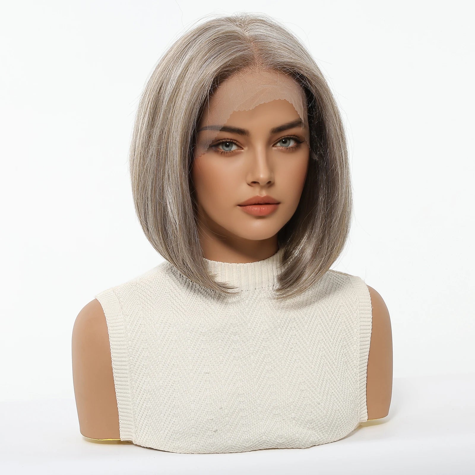 Elevate your look with this 13x6 HD lace front wig—blonde and mixed brown synthetic hair, short and straight, heat-resistant, perfect for daily wear and party glam!