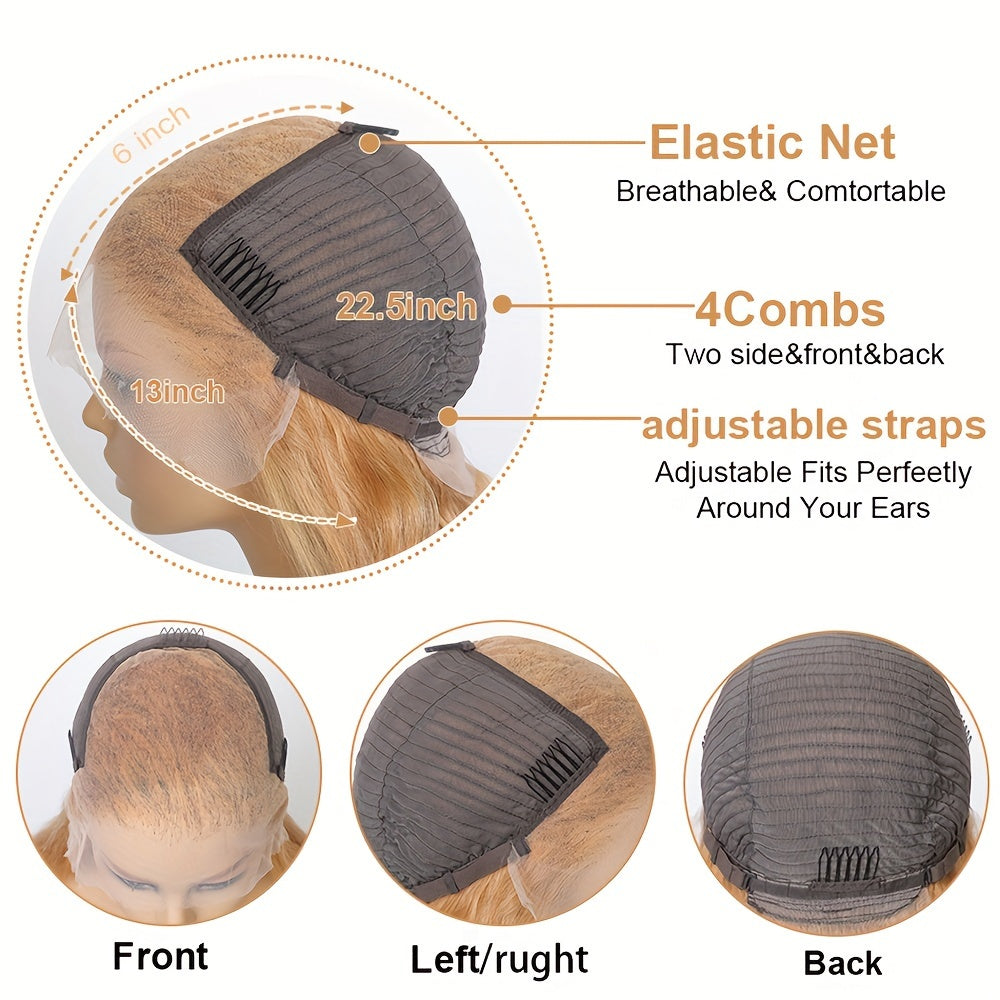 13x6 Honey Blonde Wig Human Hair 180% Density Peruvian Transparent Lace Frontal Wigs Human Hair Pre Plucked with Baby Hair Deep Wave Wig 27# Colored Curly Wig with Wig Cap And Ponytail Holder