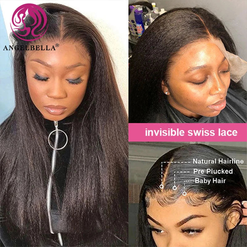 AngelBella Brazilian Kinky Straight Lace Front Human Hair Wig, Wigs for Black Women Best-Selling Brazilian Hair Hd Lace Wigs