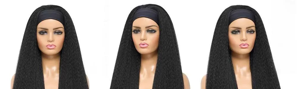Fashion Export Afro Wig Long Hair Bandana Headband One Black Long Straight Hair Headband Headbandwigs