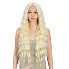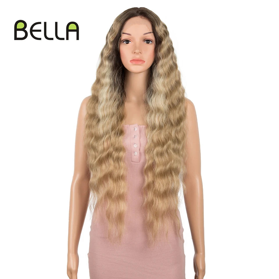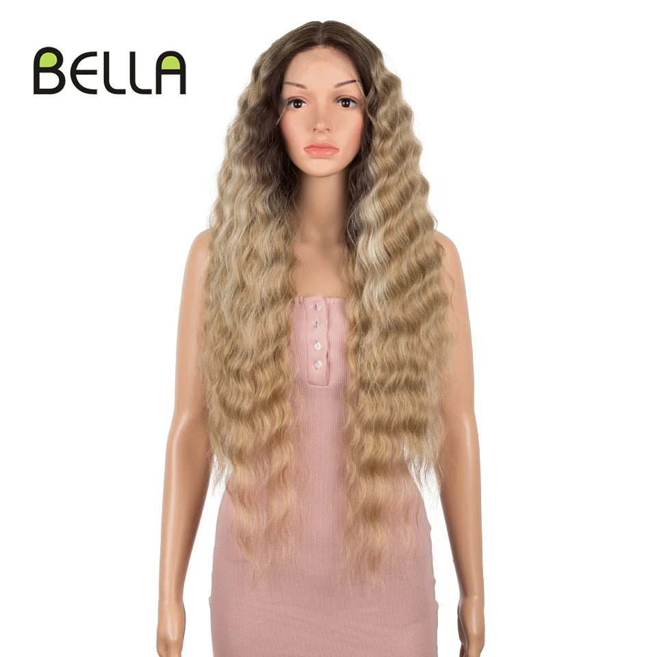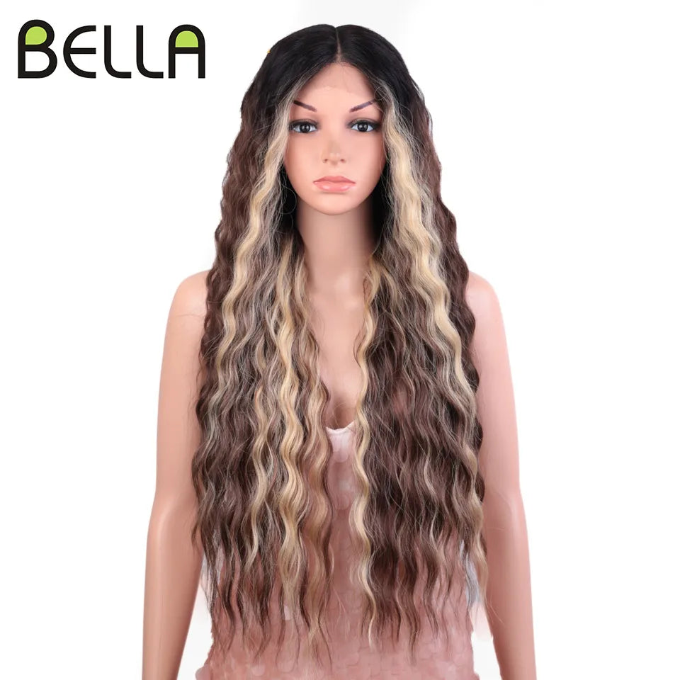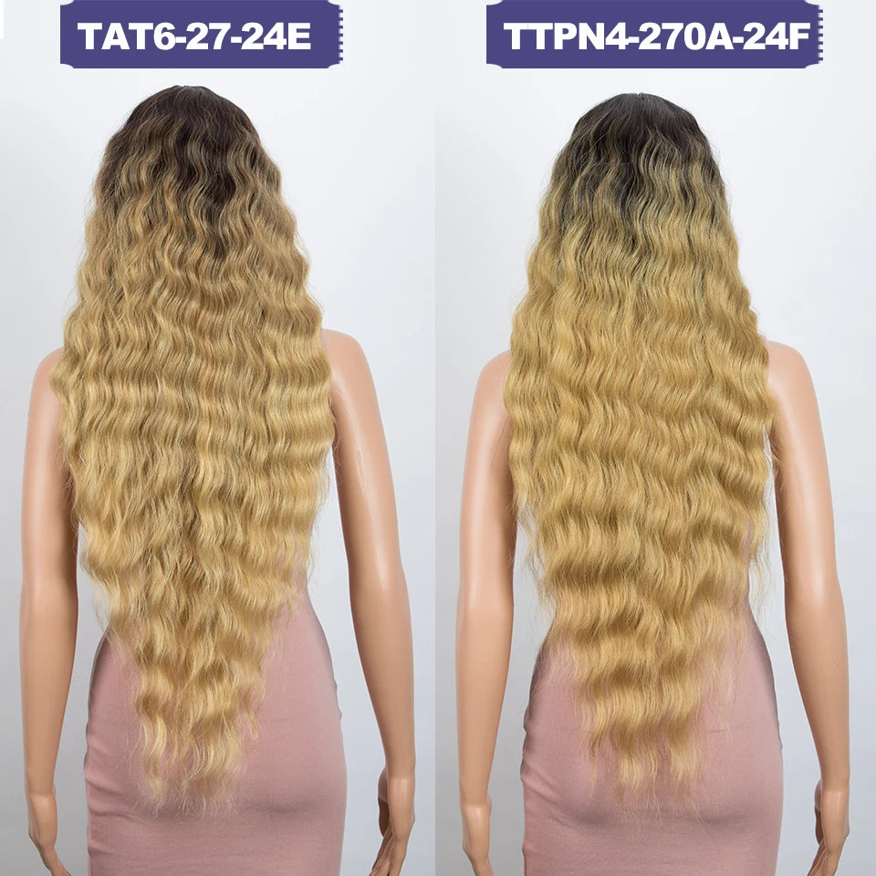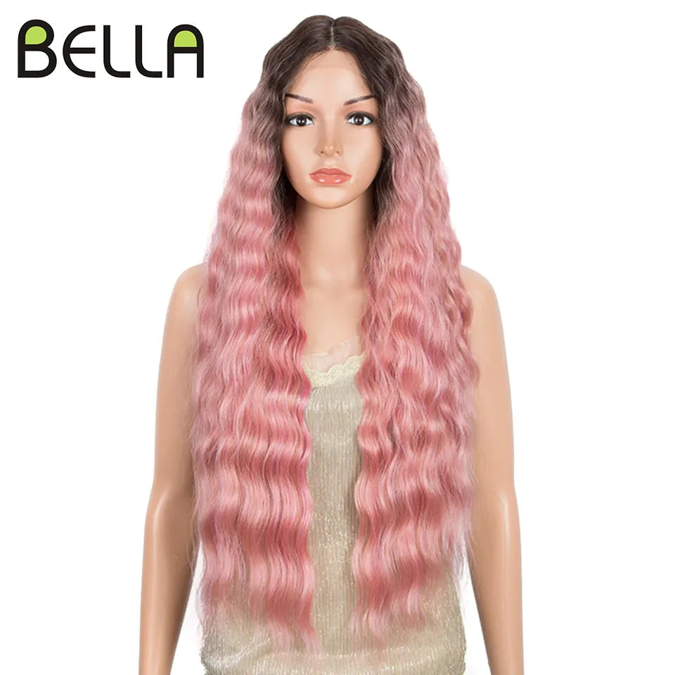 Make a bold statement with this 30-inch synthetic lace front wig featuring deep wave curly blonde hair with pink accents—perfect for cosplay and standout style!