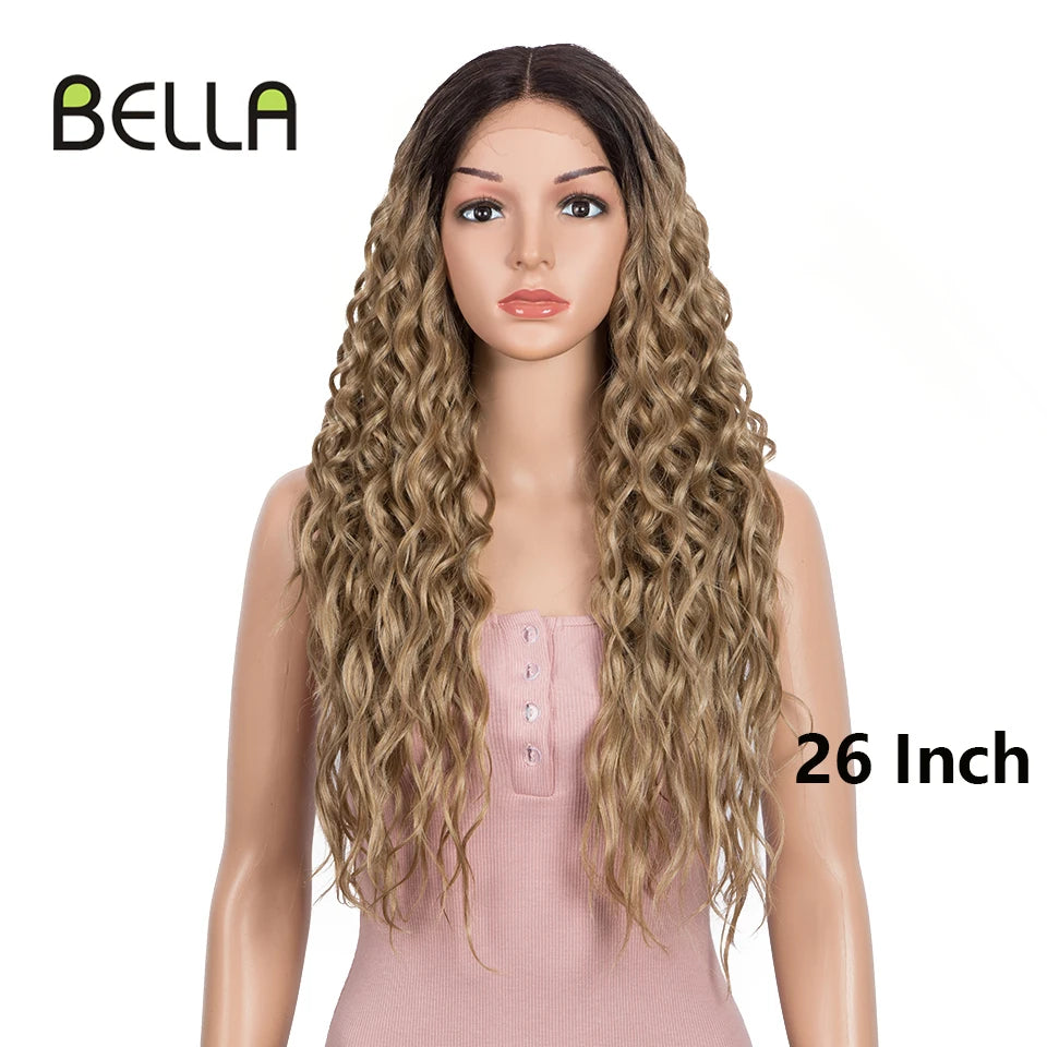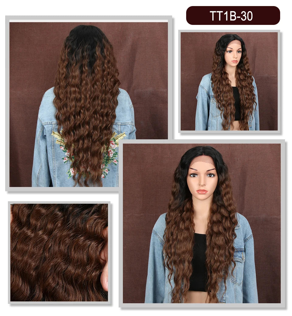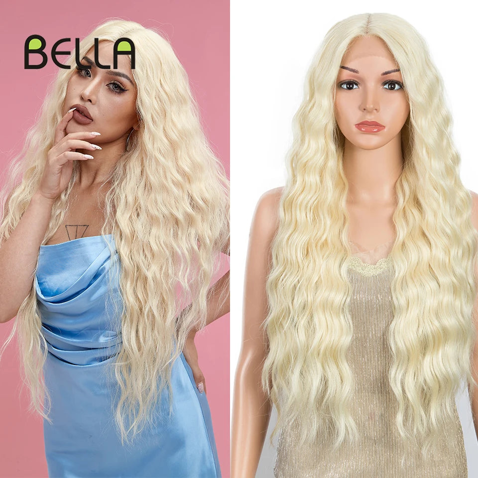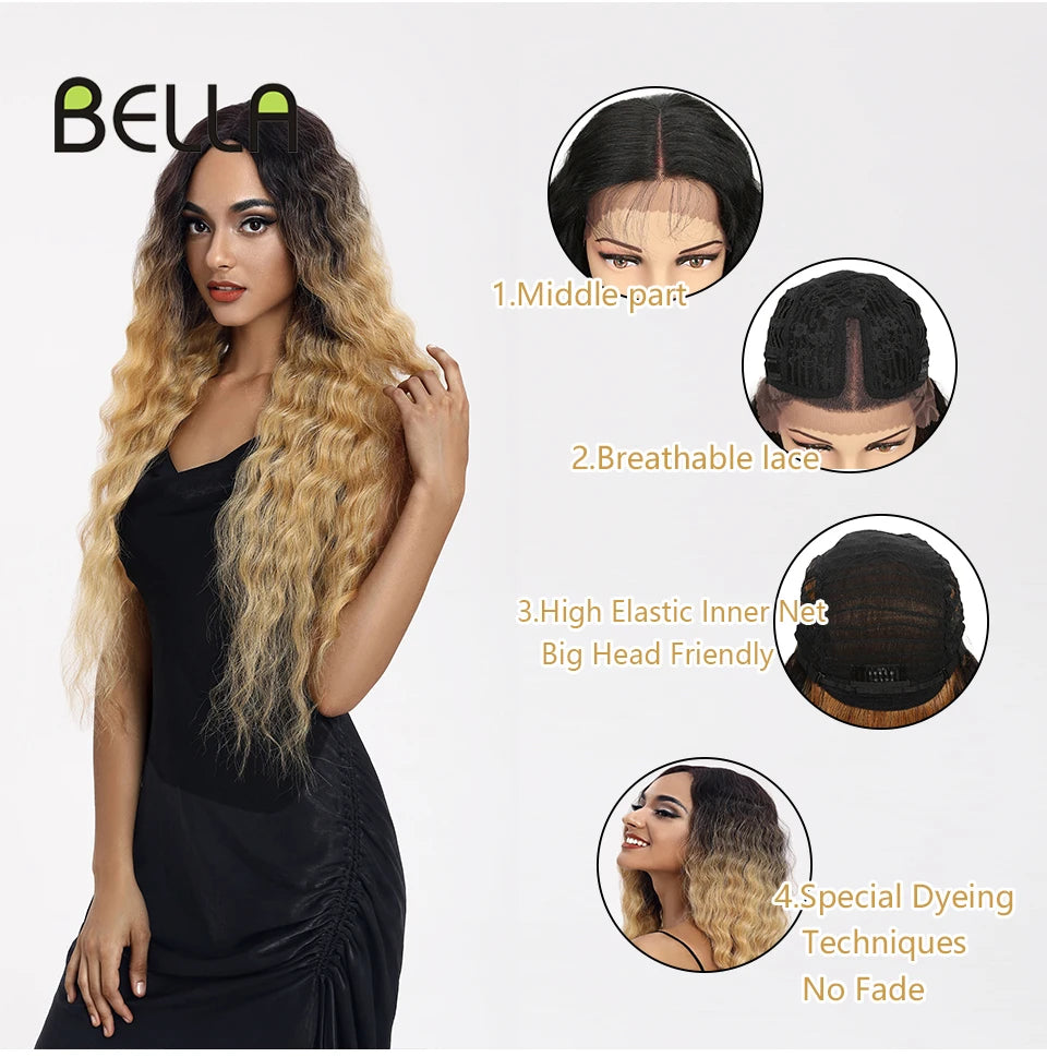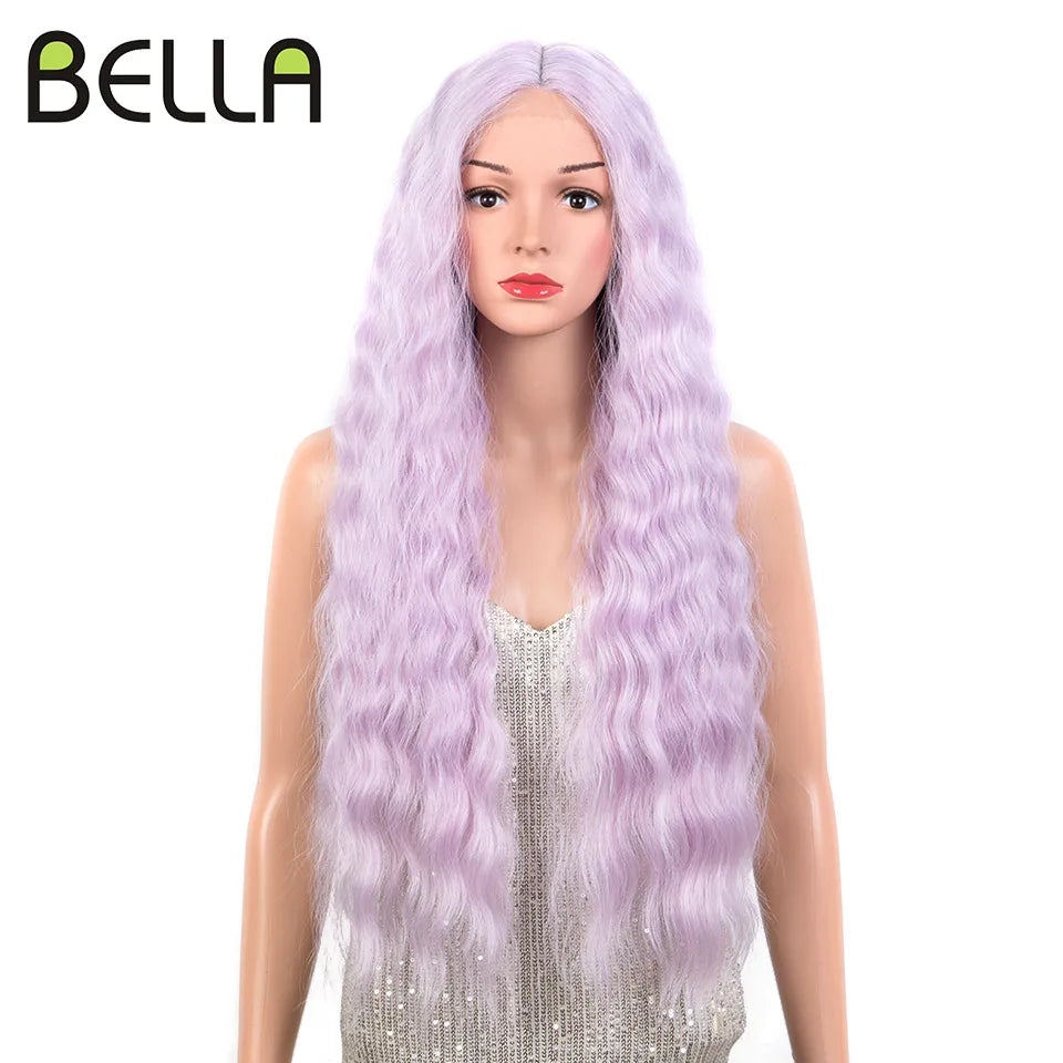 Make a bold statement with this 30-inch synthetic lace front wig featuring deep wave curly blonde hair with pink accents—perfect for cosplay and standout style!