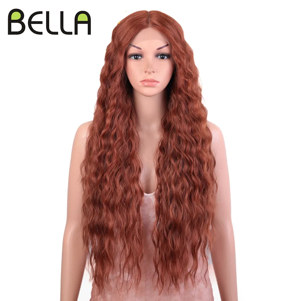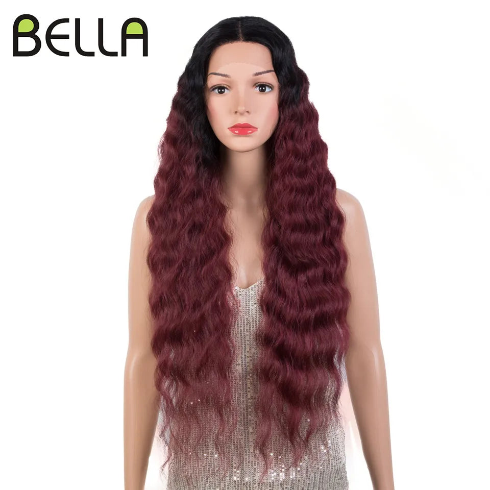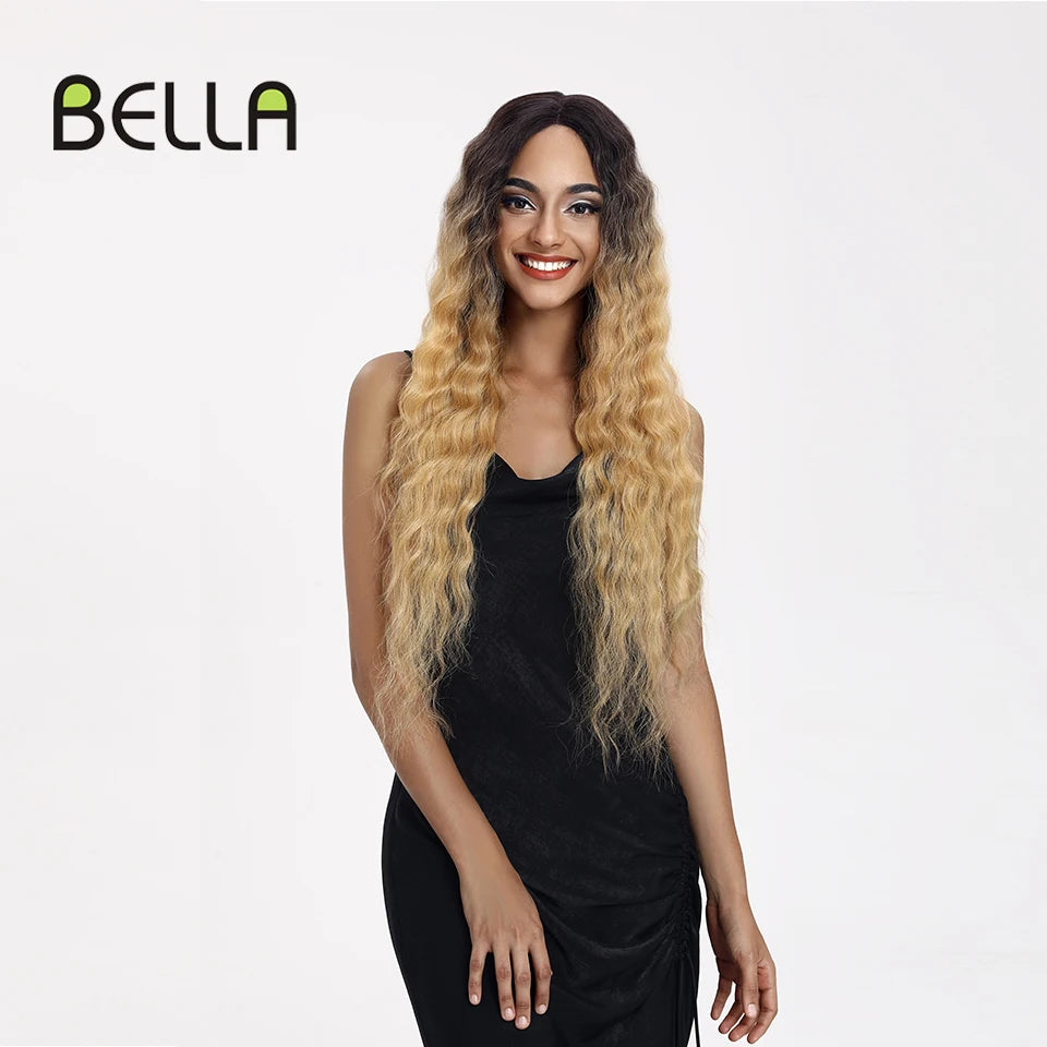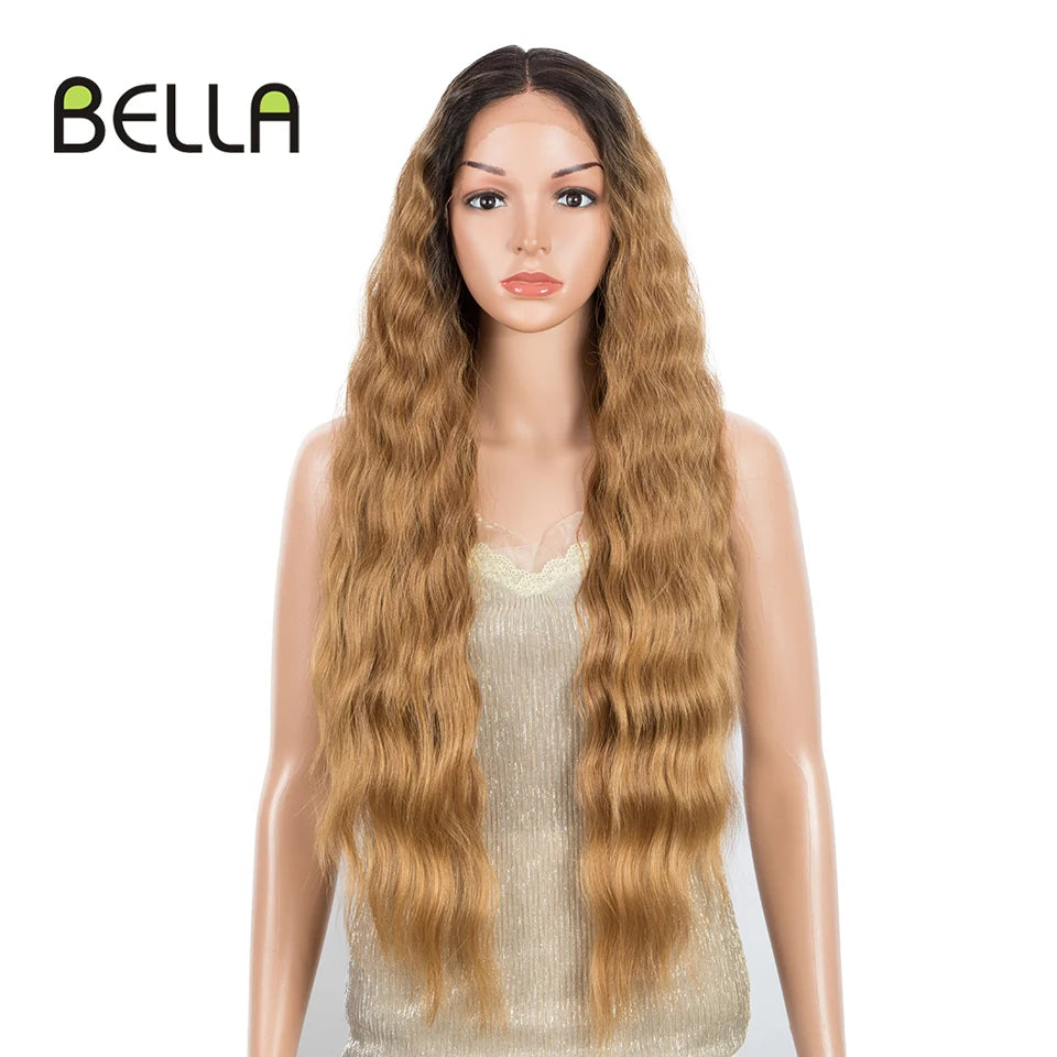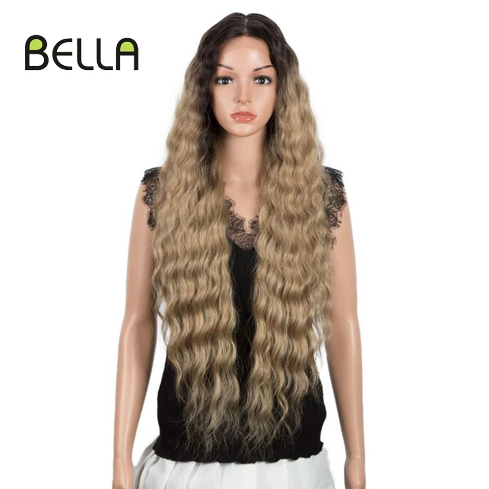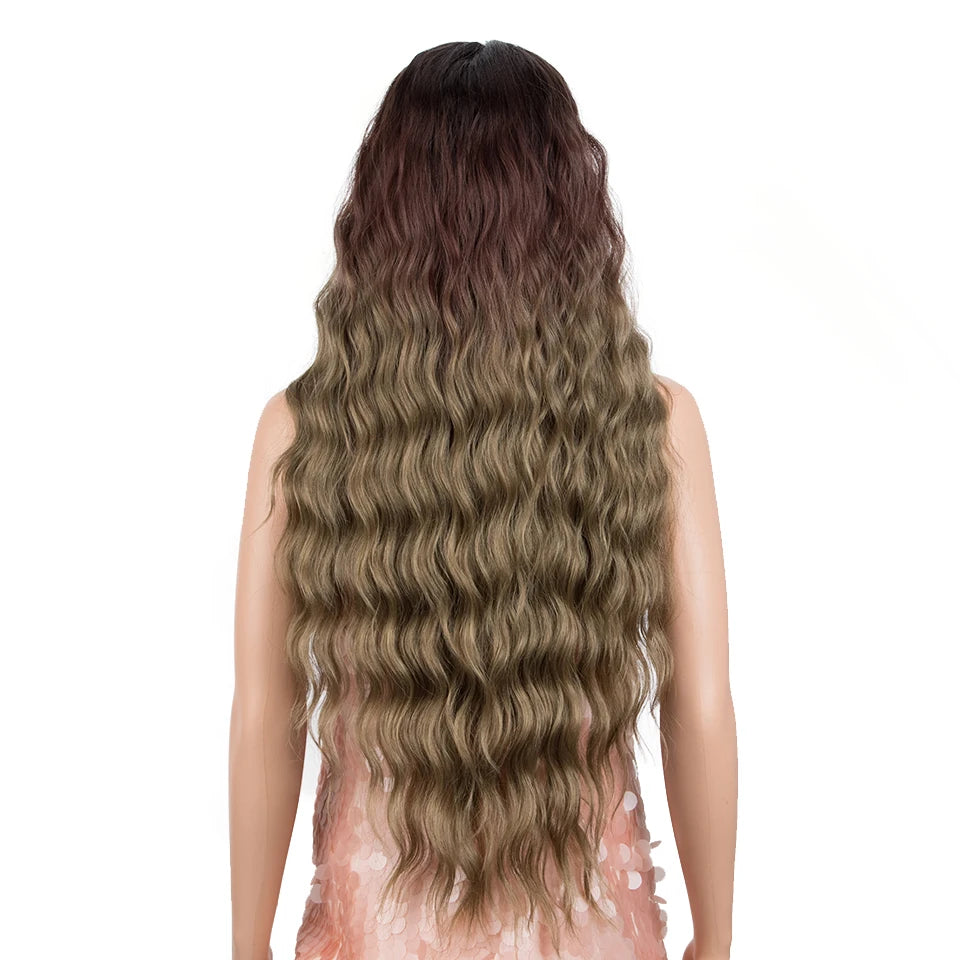 Make a bold statement with this 30-inch synthetic lace front wig featuring deep wave curly blonde hair with pink accents—perfect for cosplay and standout style!