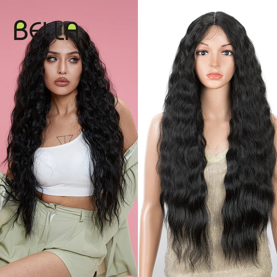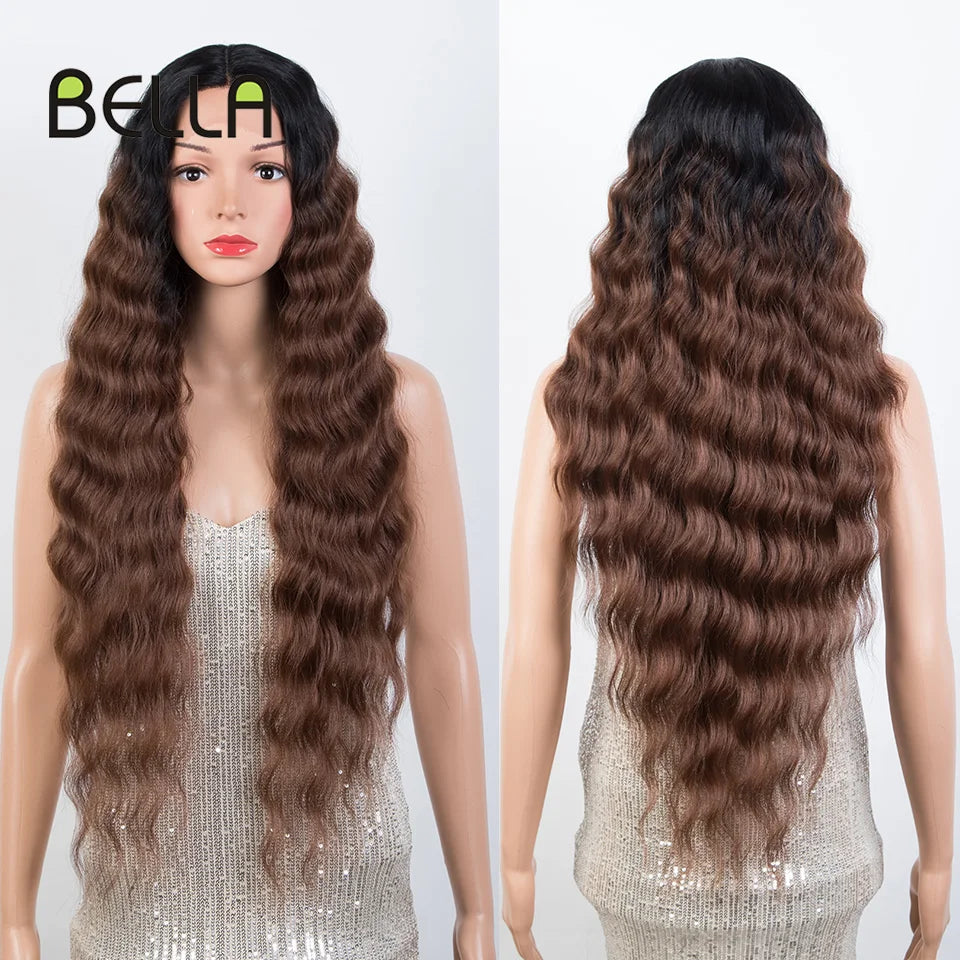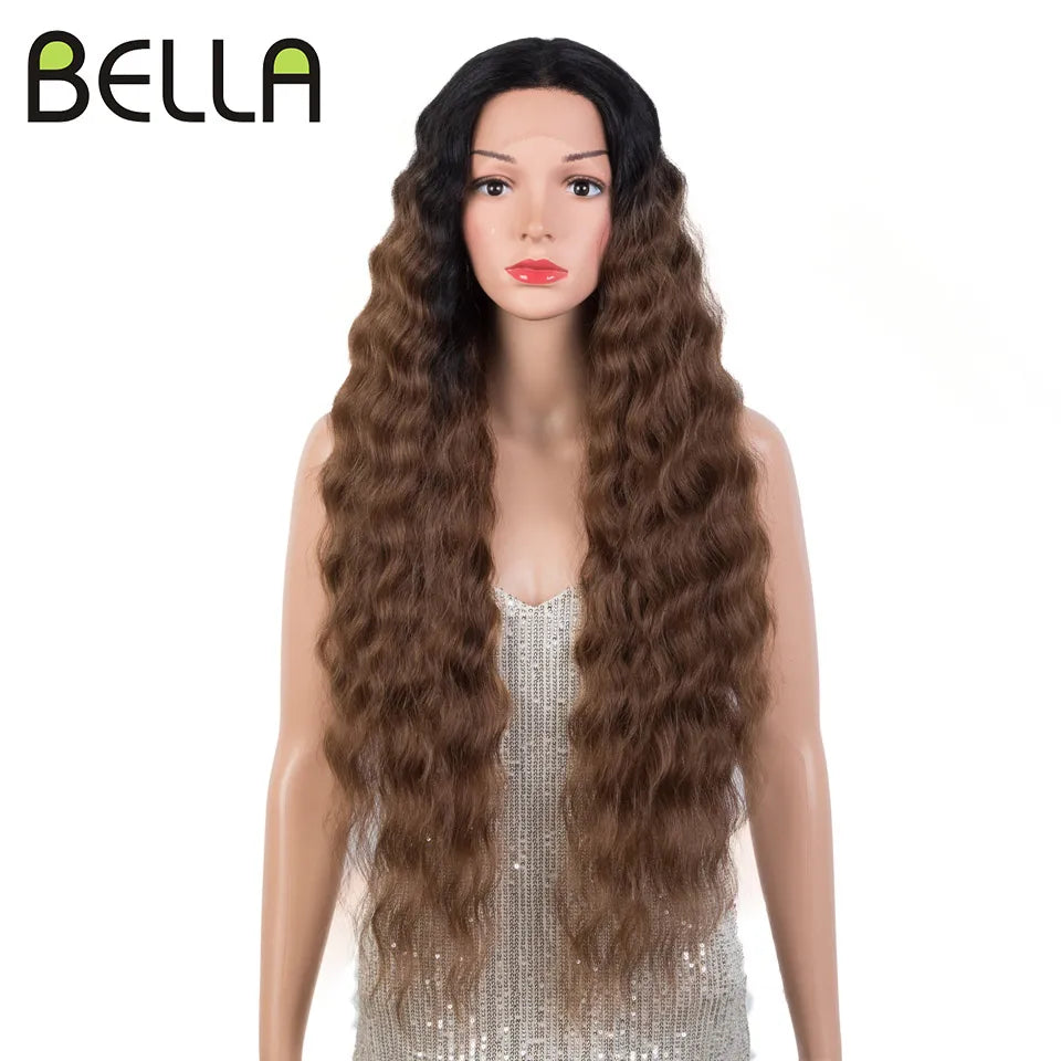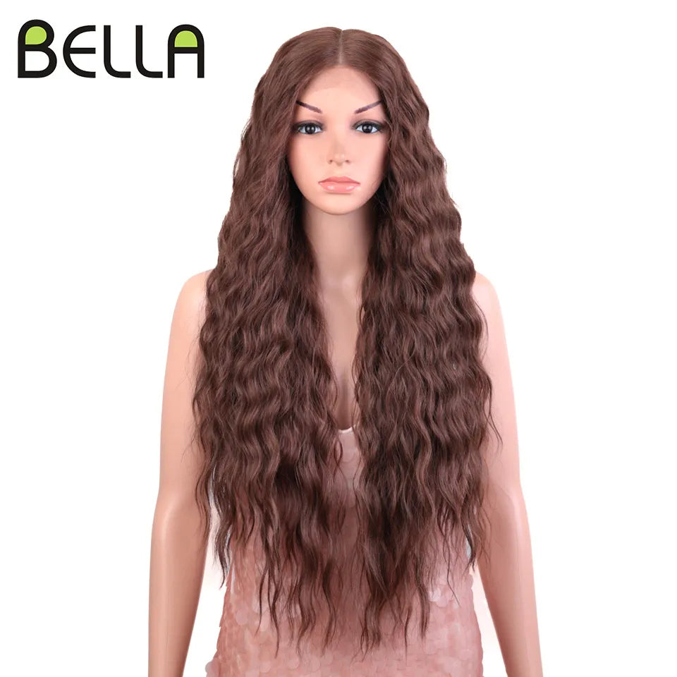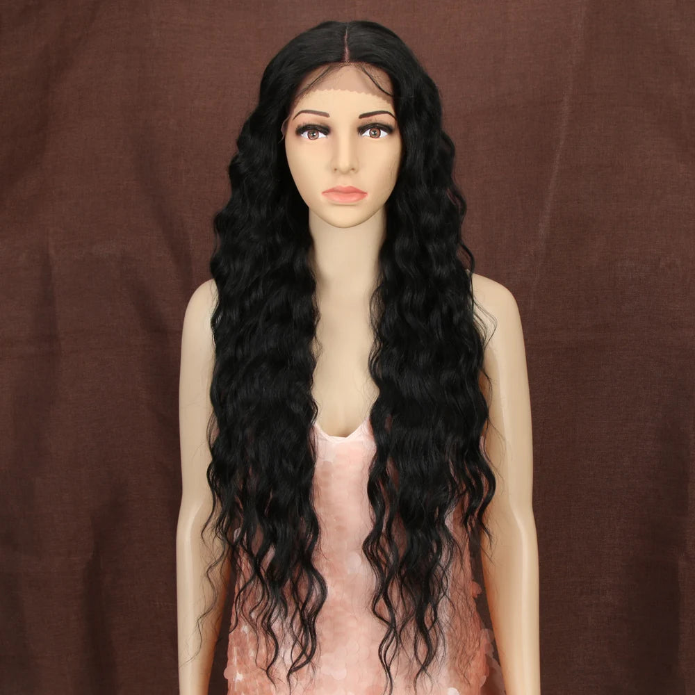 Make a bold statement with this 30-inch synthetic lace front wig featuring deep wave curly blonde hair with pink accents—perfect for cosplay and standout style!