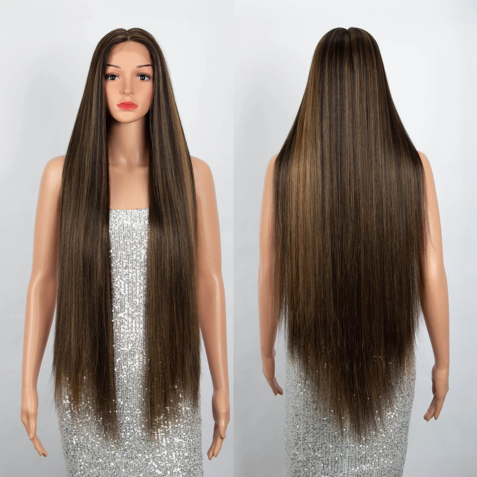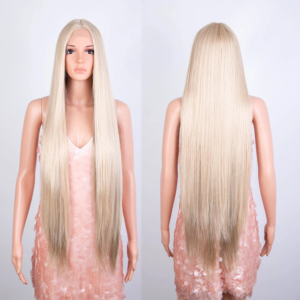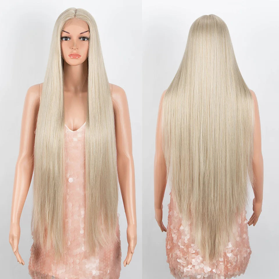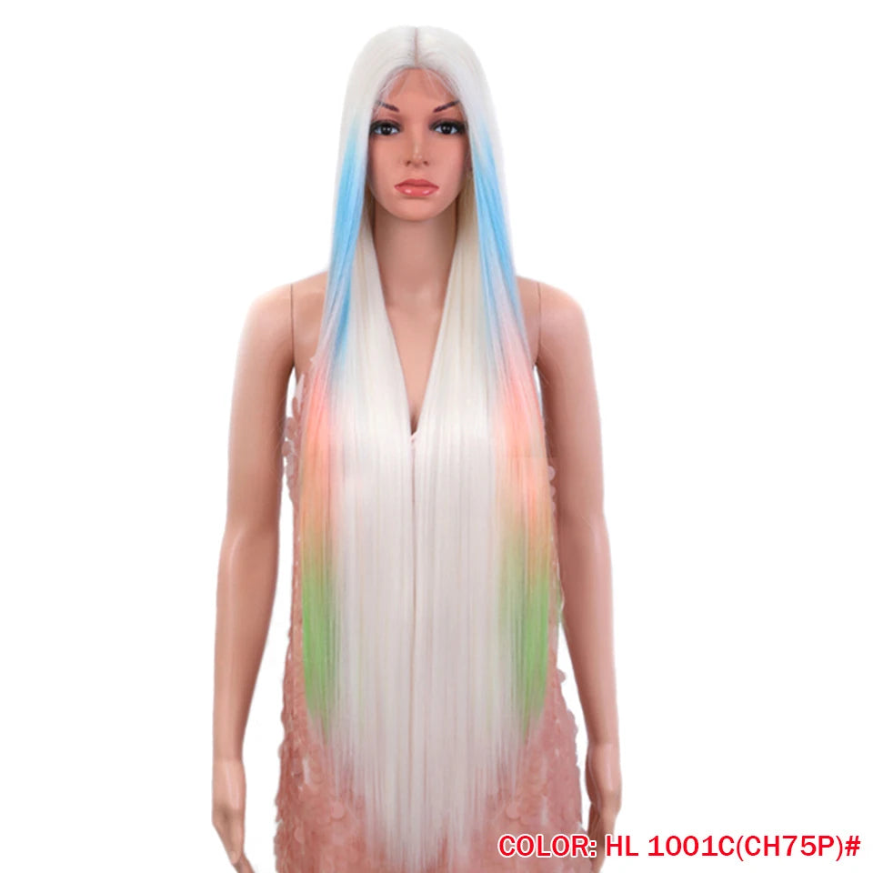Make a bold statement with this super long 38" straight lace front wig—featuring a stunning Lolita pink and blonde blend, perfect for cosplay and standout style!