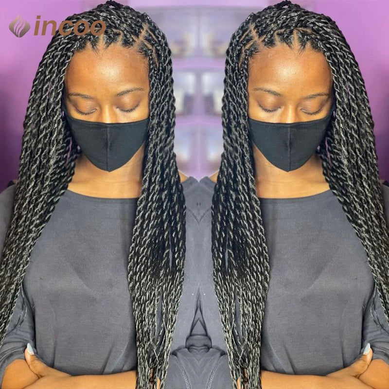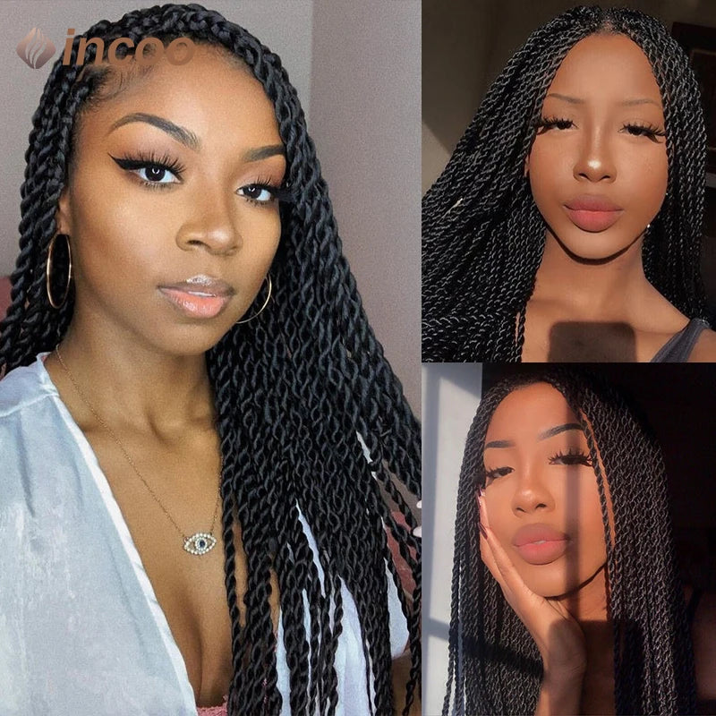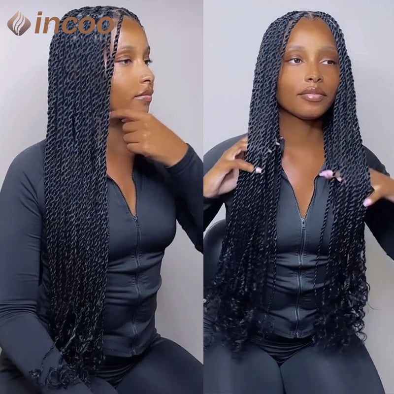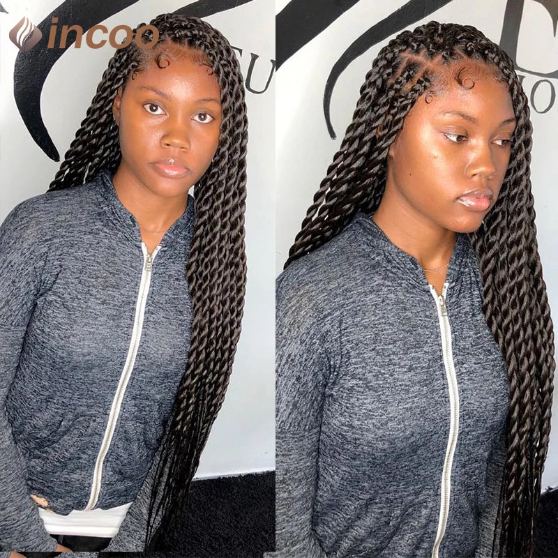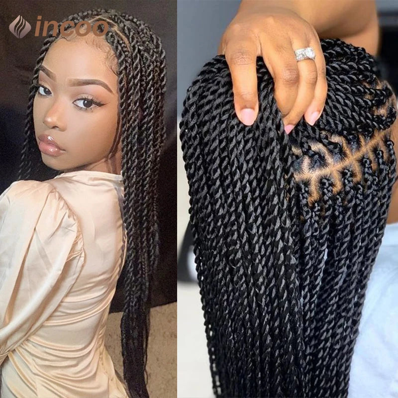 Full Lace Frontal Wigs Twist Braids Box Braids Lace Faux Locs Wig Goddess Braids