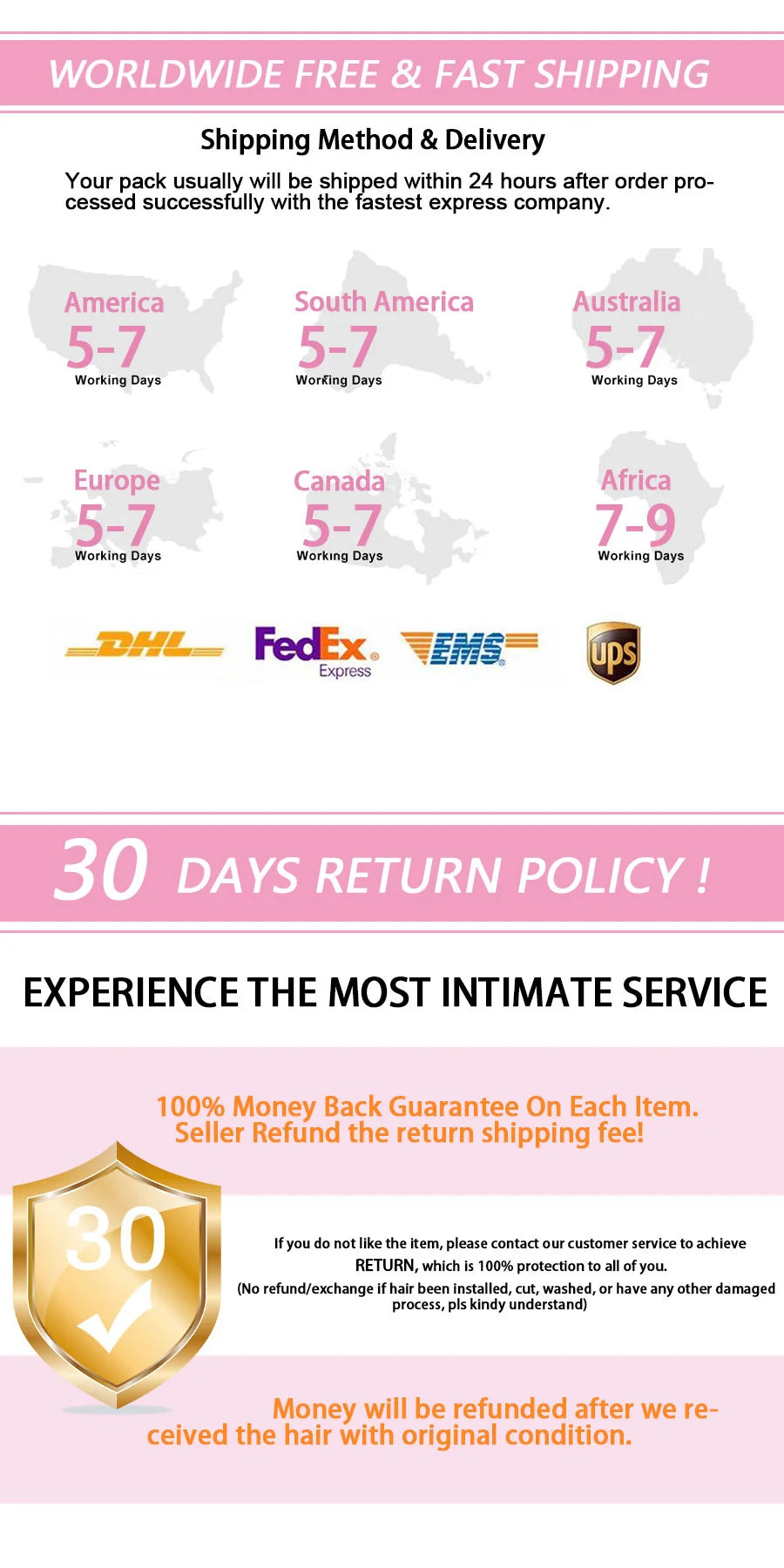 Guarantee: 30 Days no Reason Return Wig