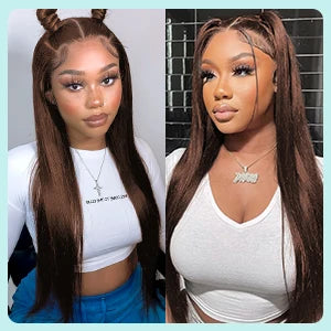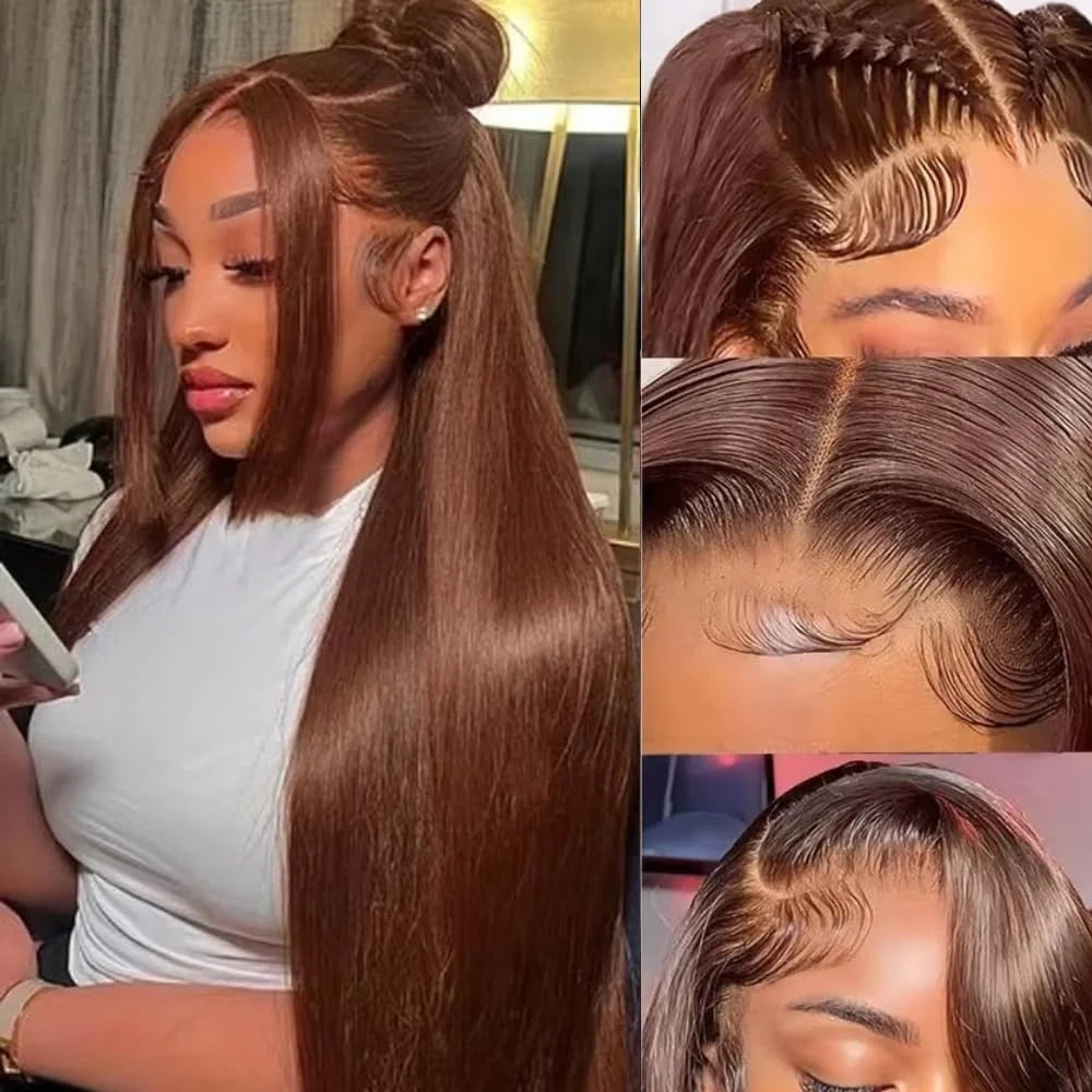 Hot Sale Chocolate Brown Human Hair Lace Frontal Wigs 13x6 Full Lace Long Straight Lace Front Wigs #4 Brown Glueless Wig