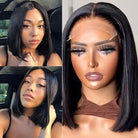 Get a flawless, natural look with this lace front bob wig—short, straight hair with a pre-plucked hairline for easy, glueless wear!