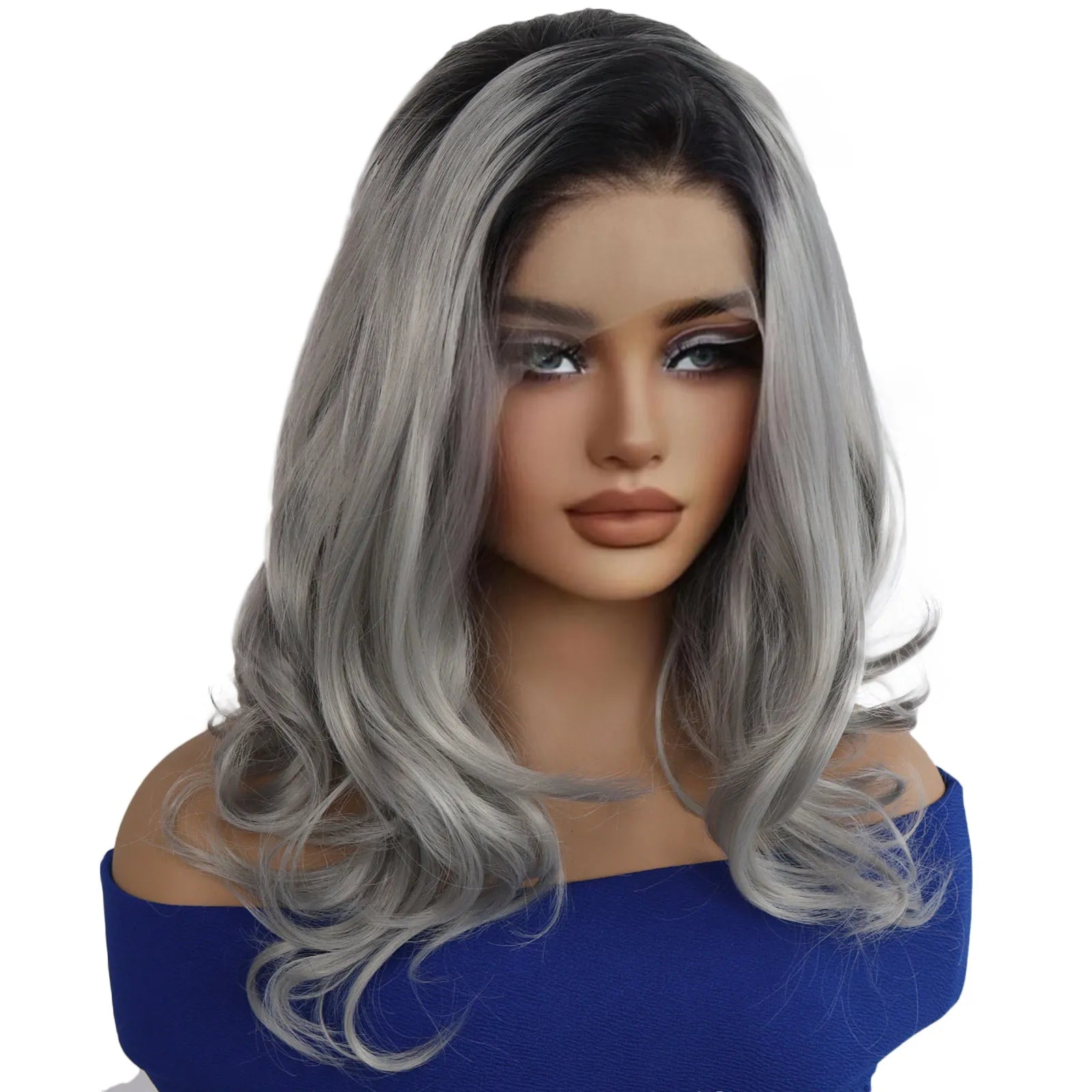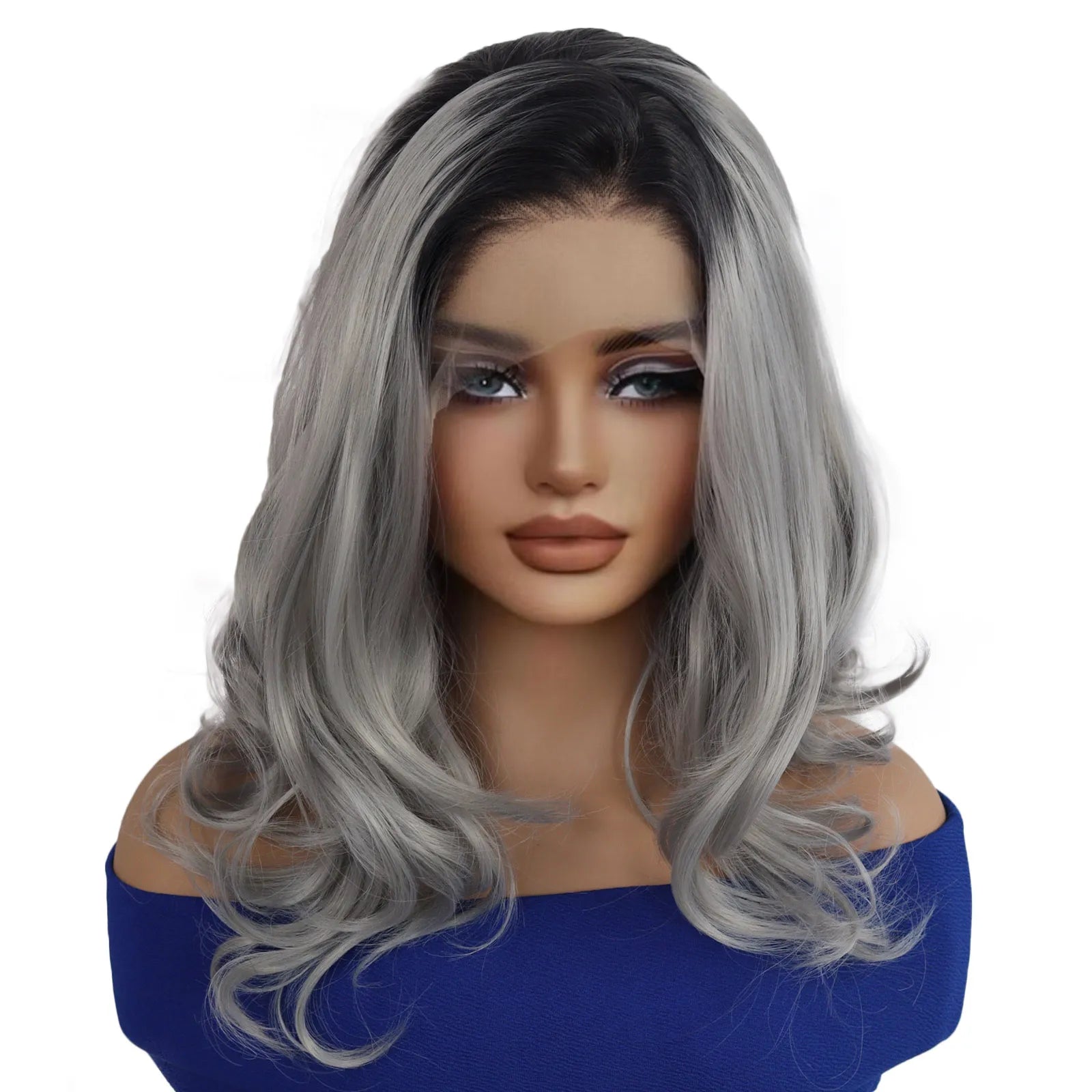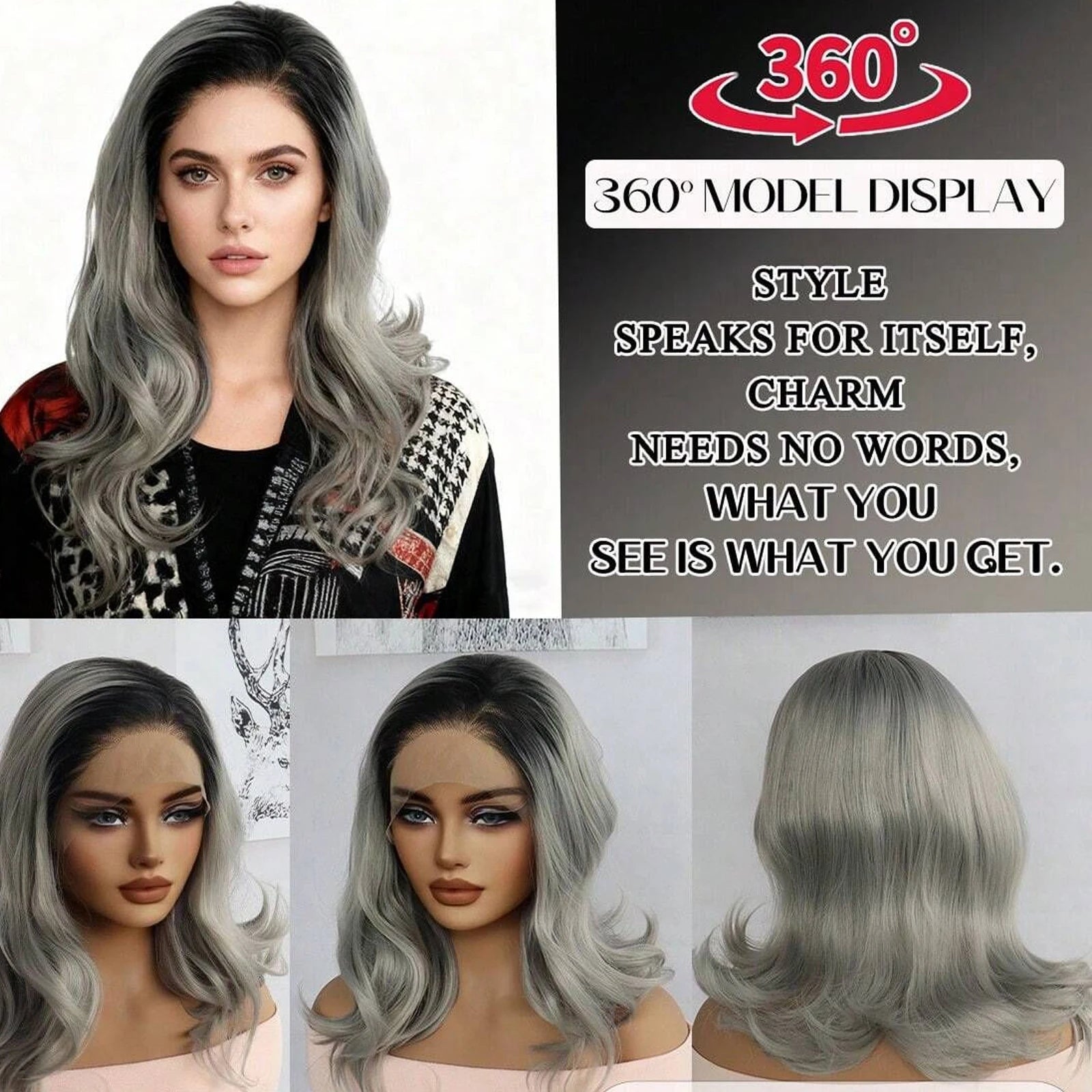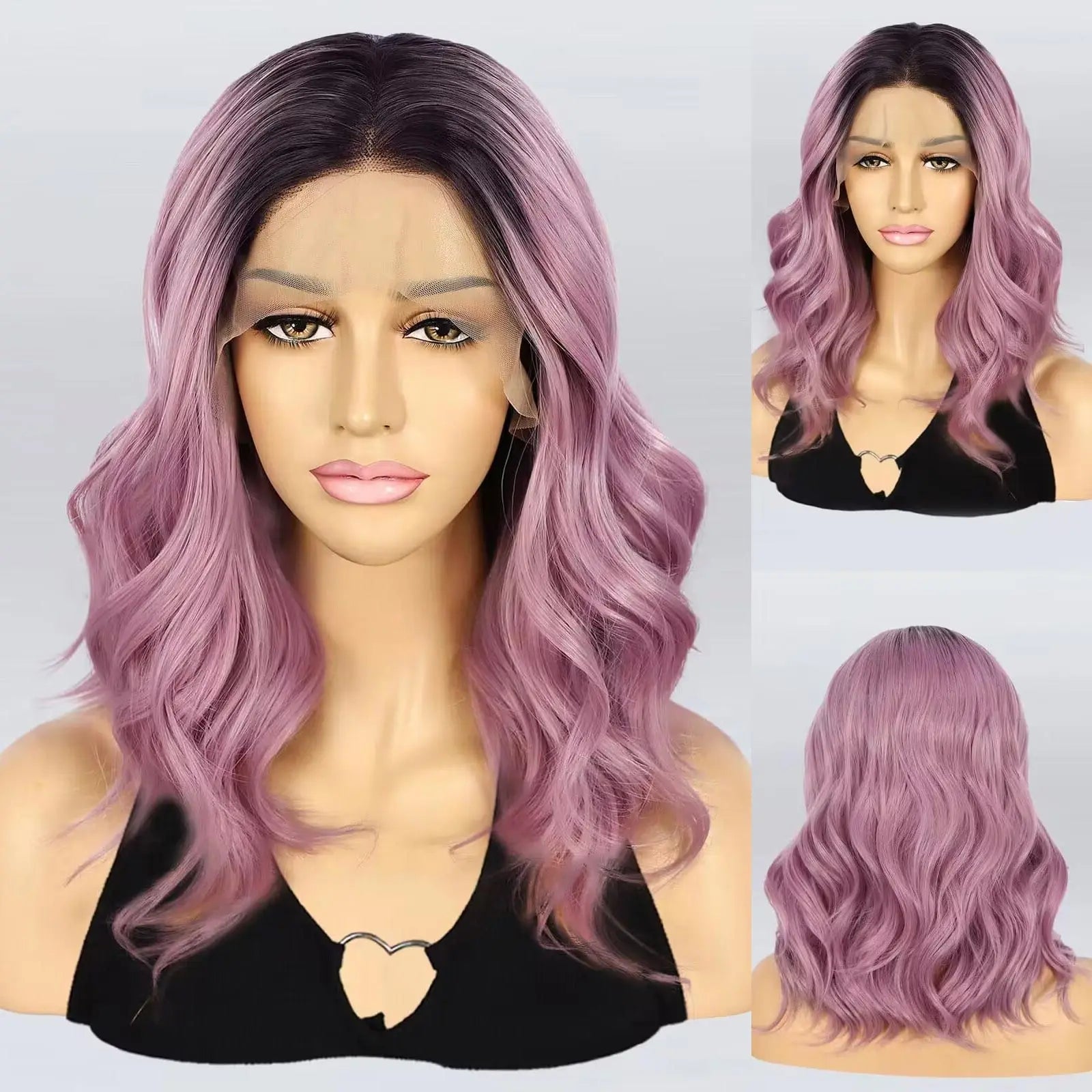 Rock a bold style with this long wavy synthetic lace front wig, available in trendy dusty grey or pink—perfect for a stunning, effortlessly chic look!