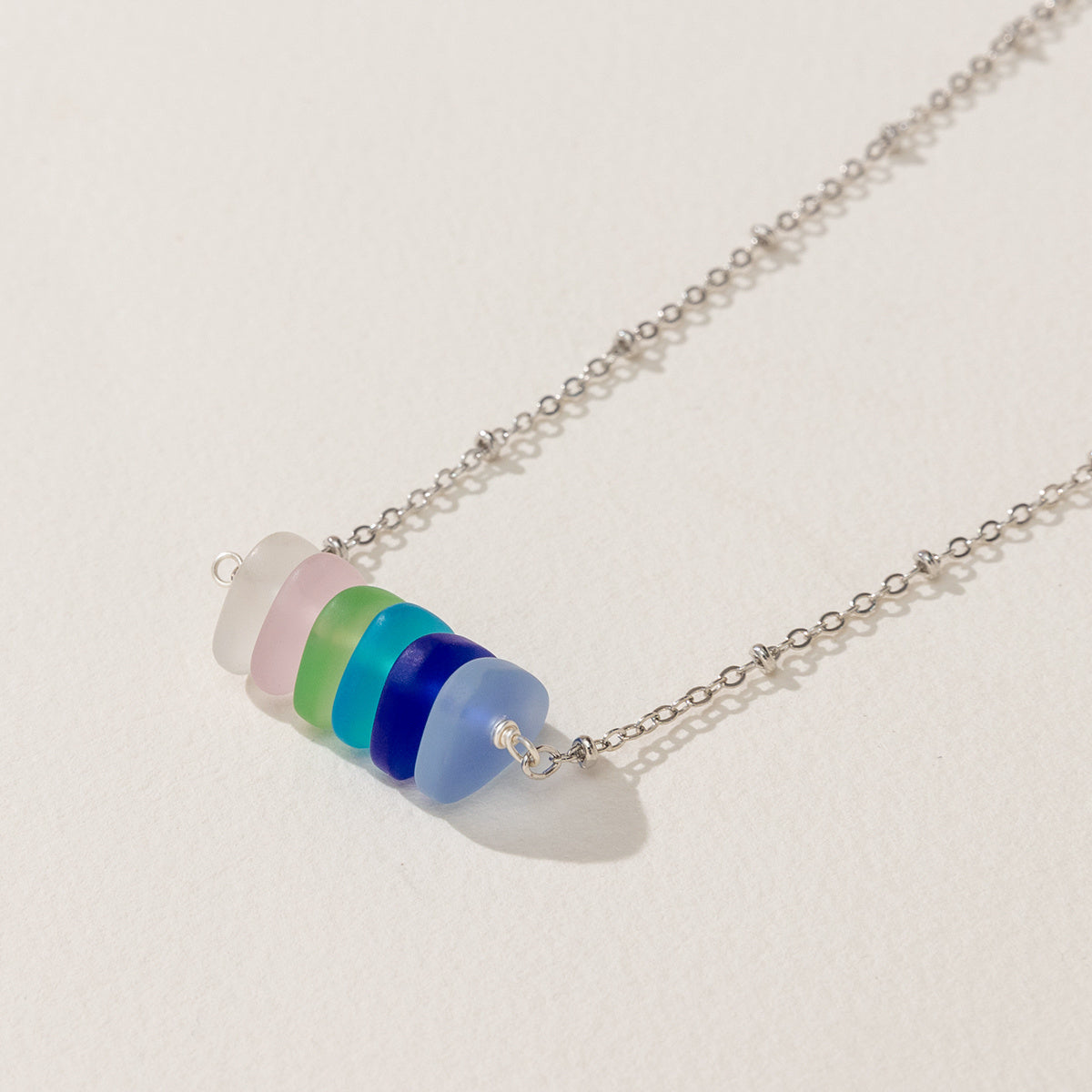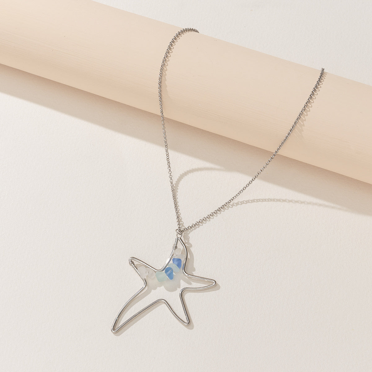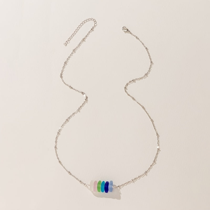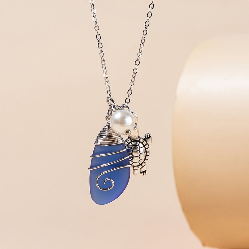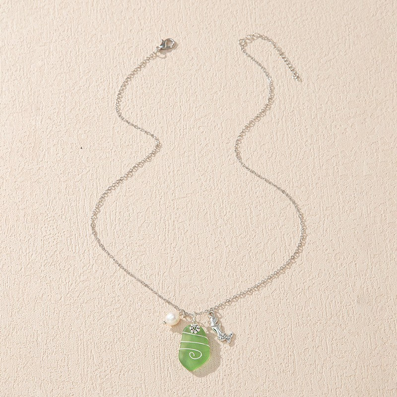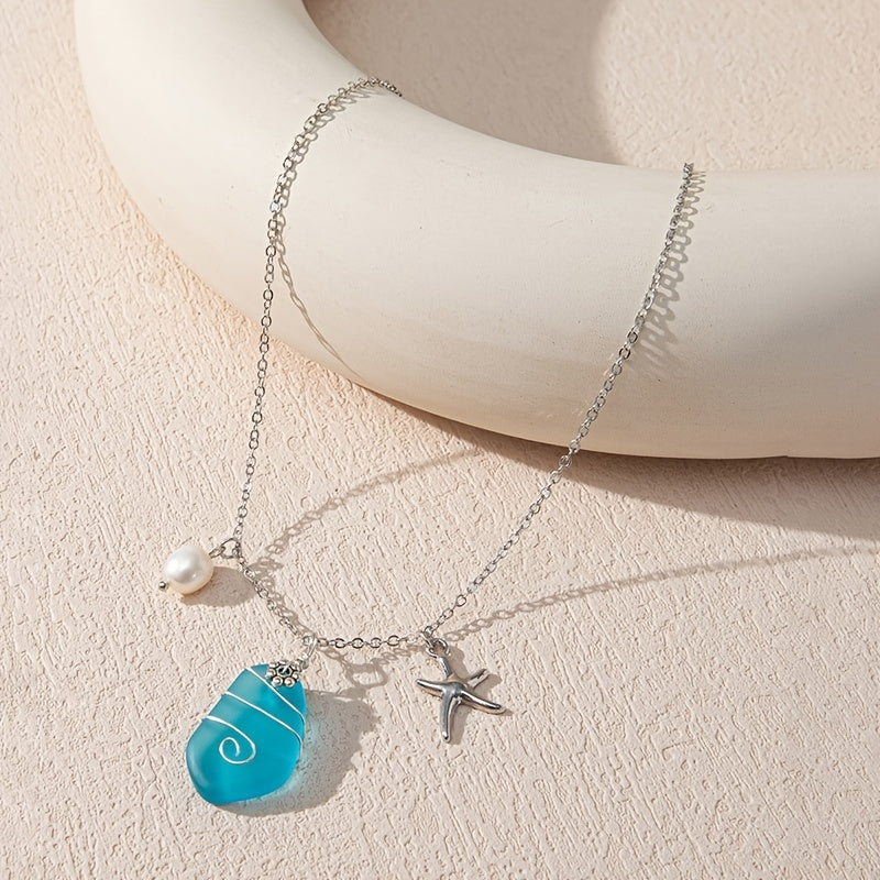 Sea Glass Pendant Necklace Marine Elements Shape Pendant Adjustable Neck Jewelry Summer Beach Style Clothings Accessories
