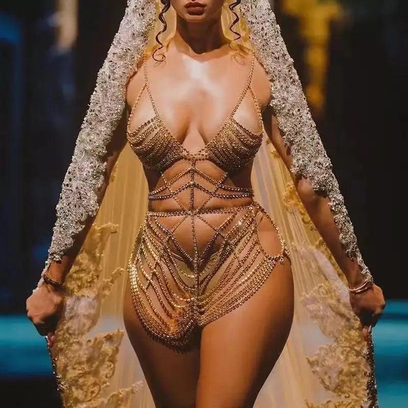 Sexy Fashion Body jewelry For Woman Shiny Dress With Rhinestones Underwear Personalized Bodysuit Party Clothing Accessories Gift
