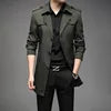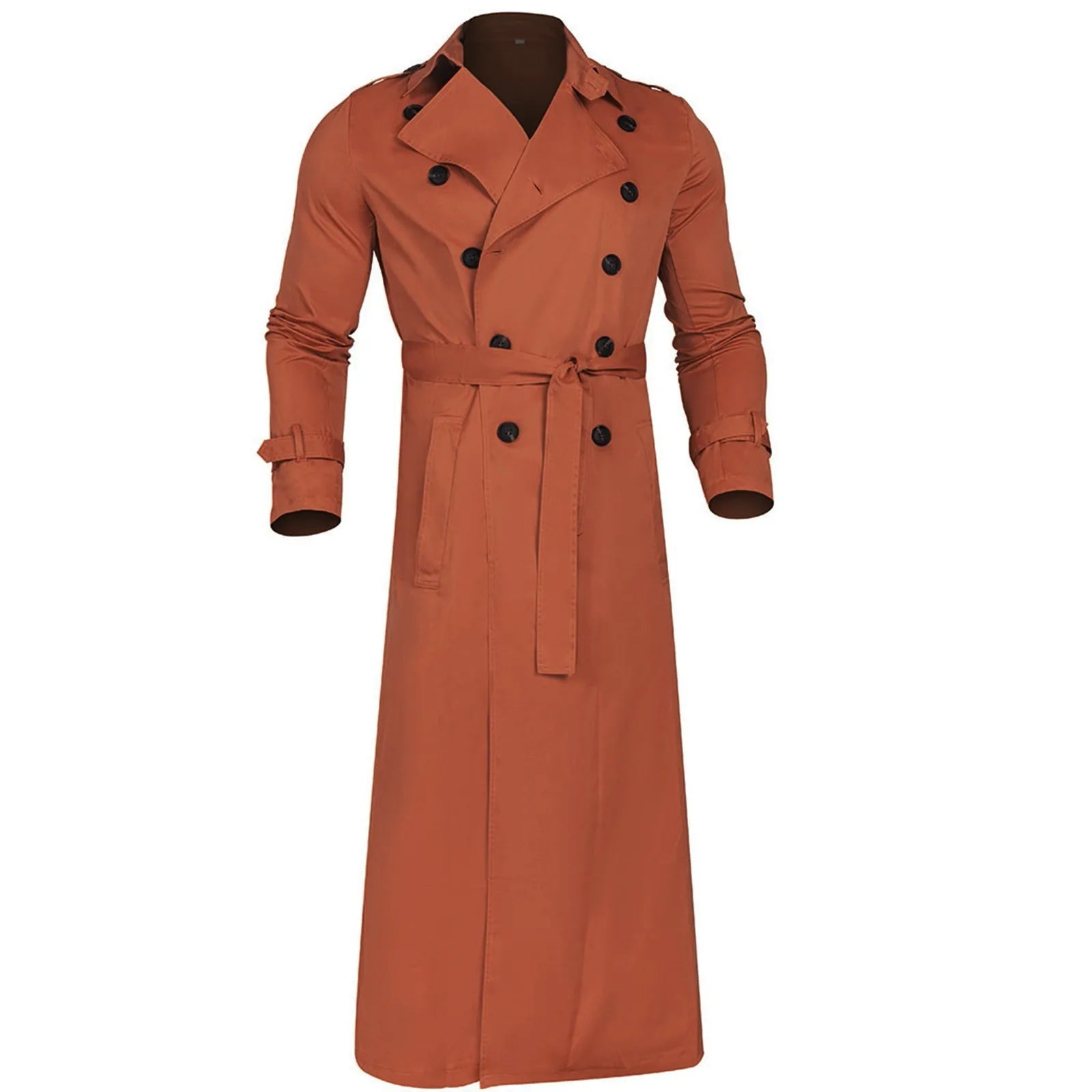 Men'S Windbreaker Spring Autumn Long-Slevee Extra Long Trench Coat Classic Trend Double Breasted Solid Color Temperament Trench