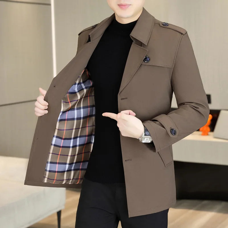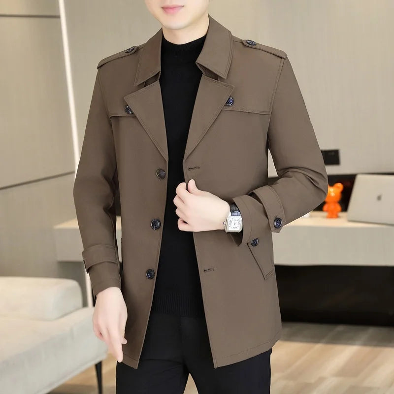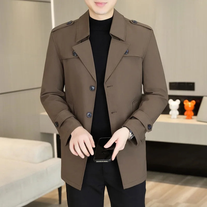 Modern Minimalist Men's Trench Coat | Korean Style Mid-Length Autumn Jacket for Men | Lightweight Waterproof Outerwear