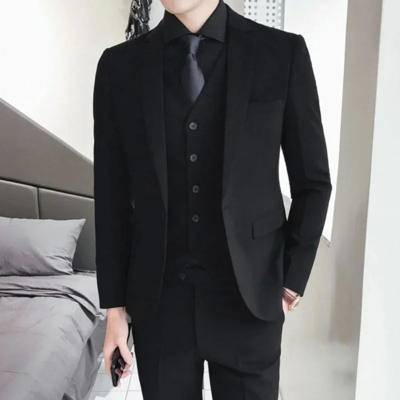 Suit (Blazer+ Vest + Trousers) Men's Fashionable Gentleman Business British Style Solid-color Banquet Host Casual Wedding Suit