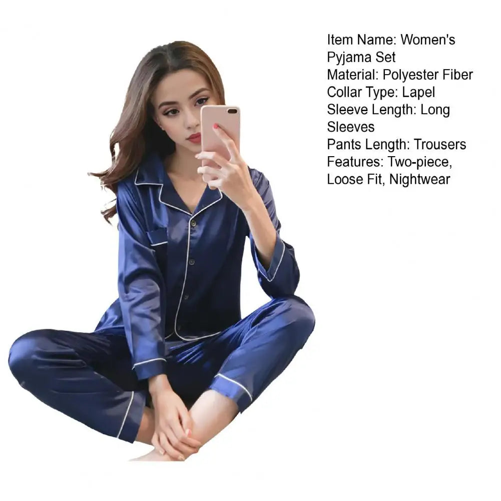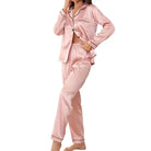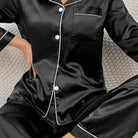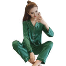 Unwind in style with this elegant women's silk pyjama set featuring long sleeves. Perfect for lounging and relaxation, this luxurious set combines comfort and sophistication for a cozy night's sleep.