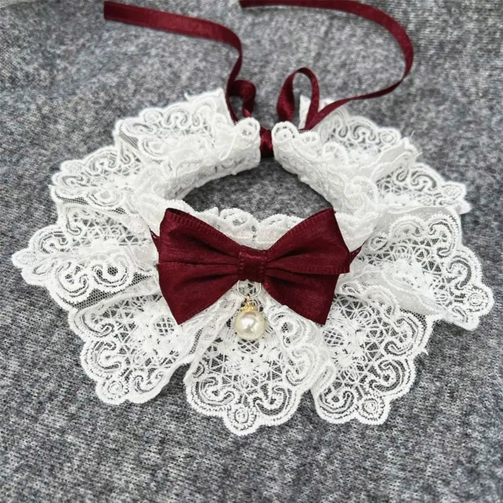 Lace Bowknot Pearl Collar Cat Dog Neckerchief