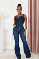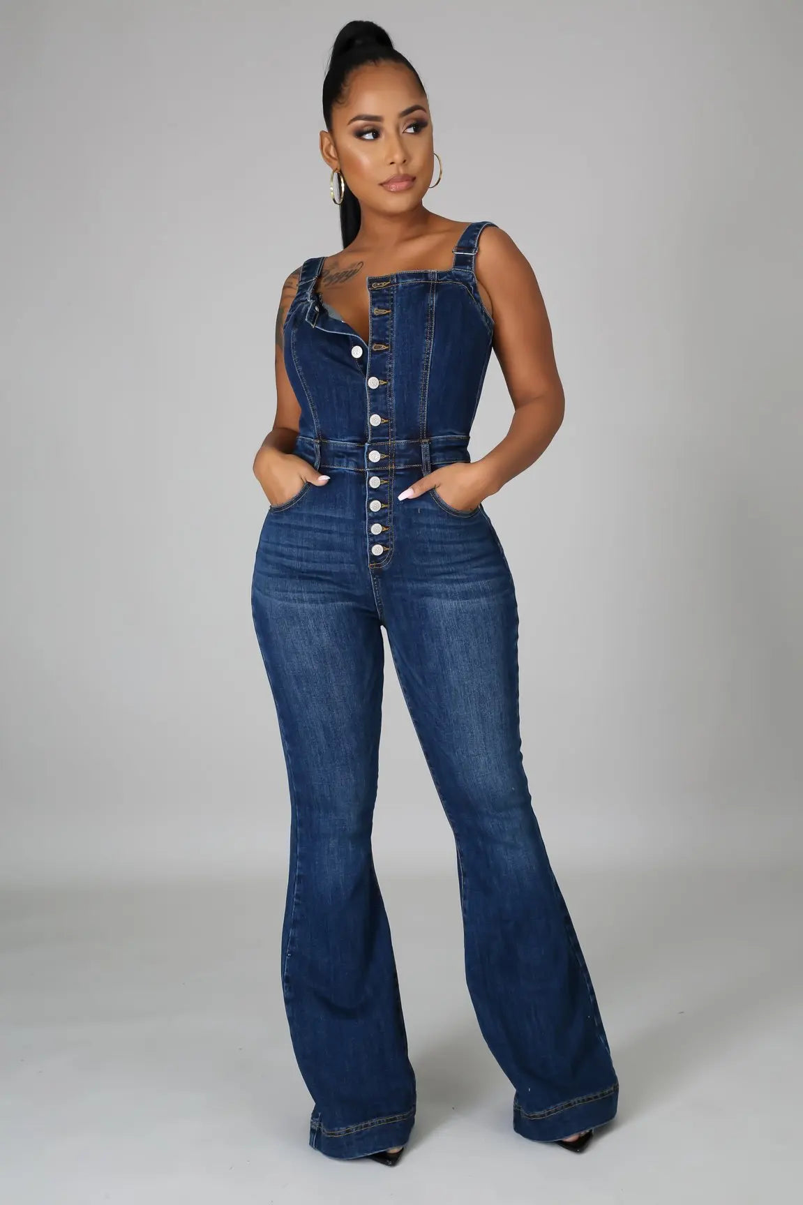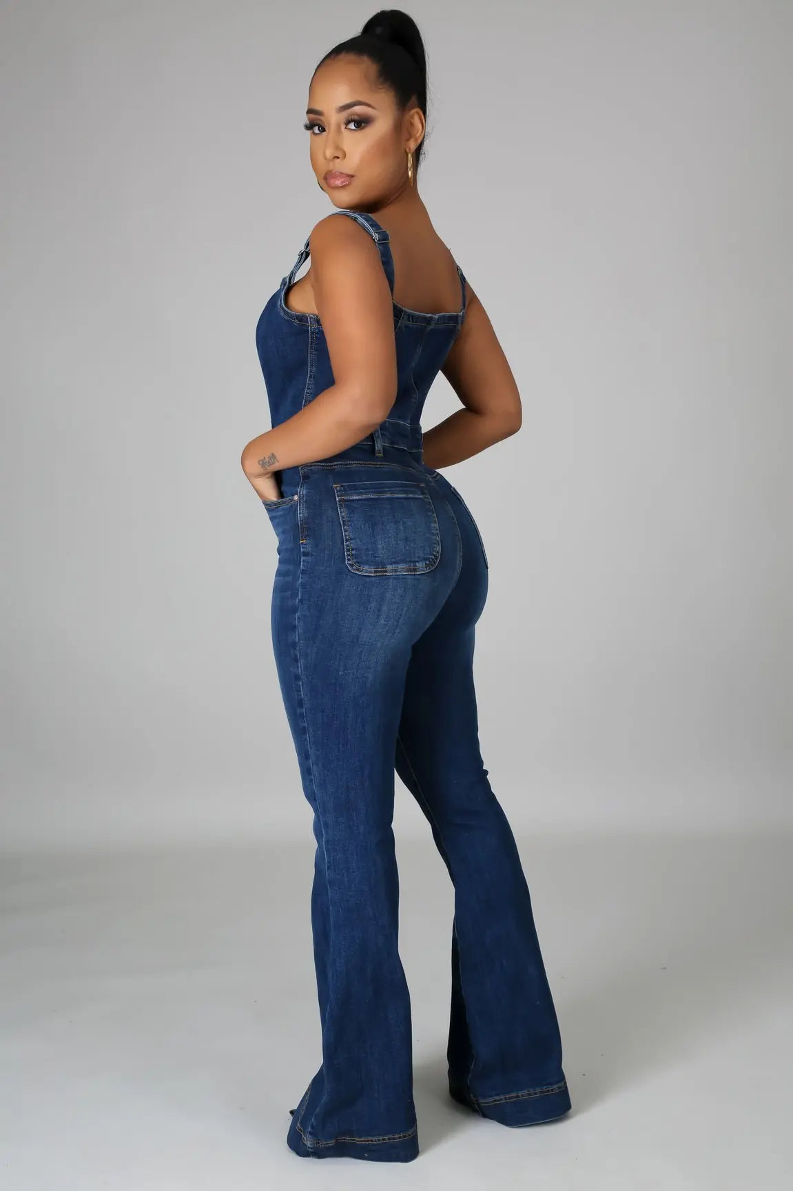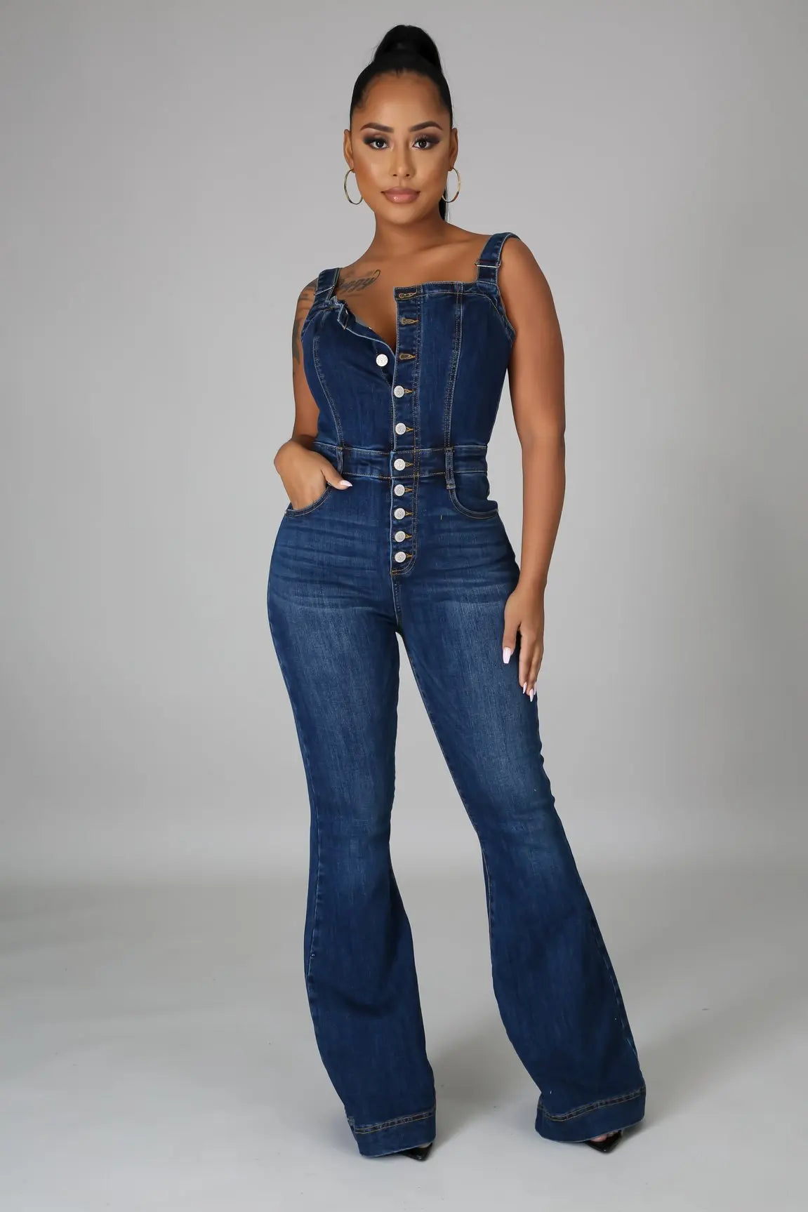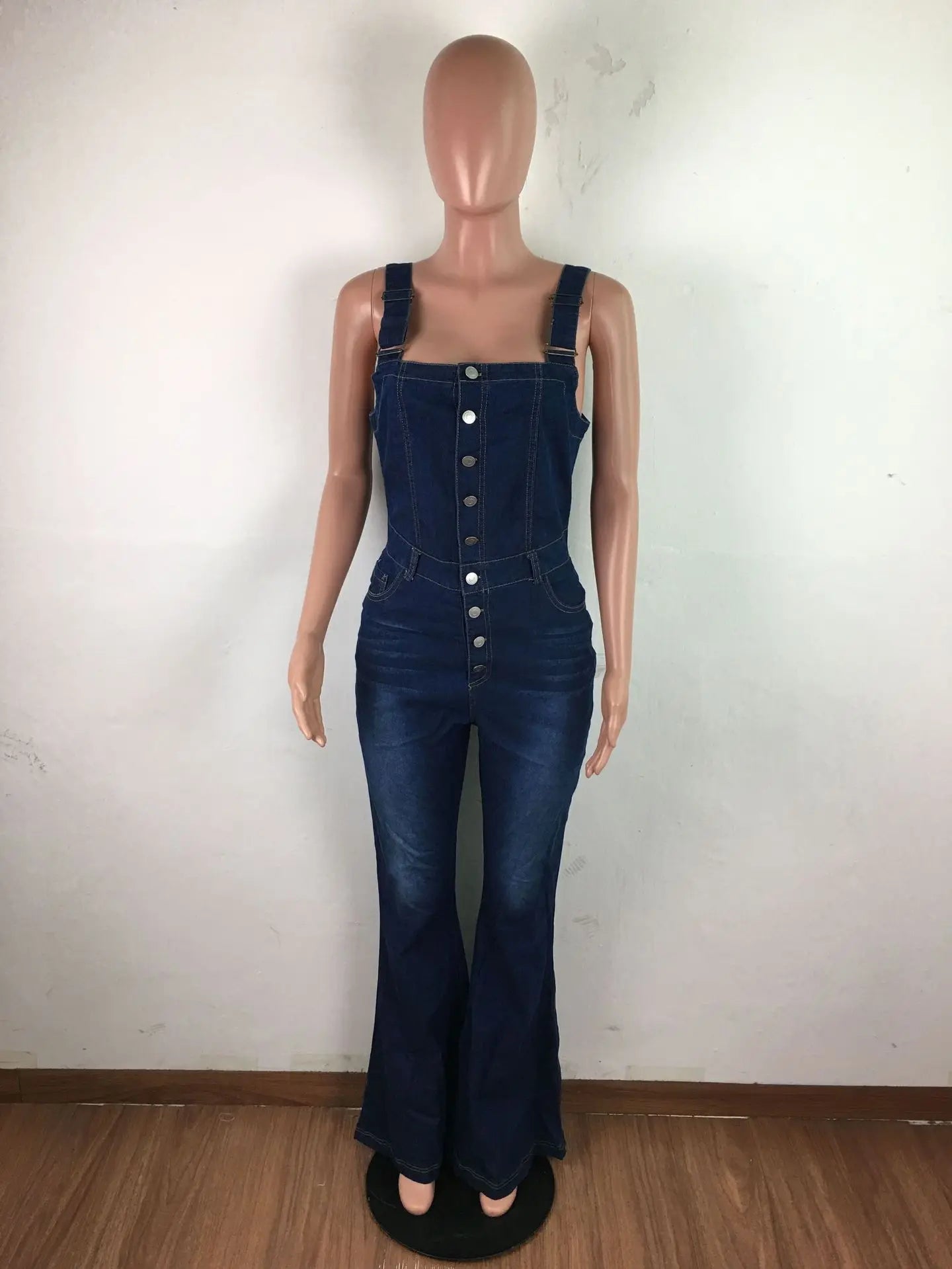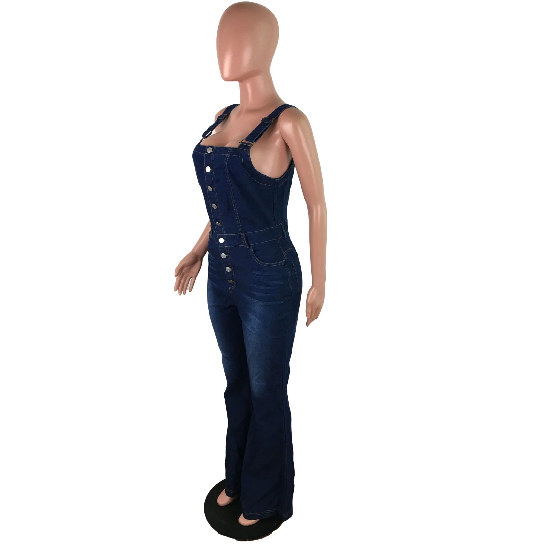Casual Women's Denim Romper Spring Summer Sleeveless Halter Square Collar Comfortable Solid Color Ladies Romper Pants
