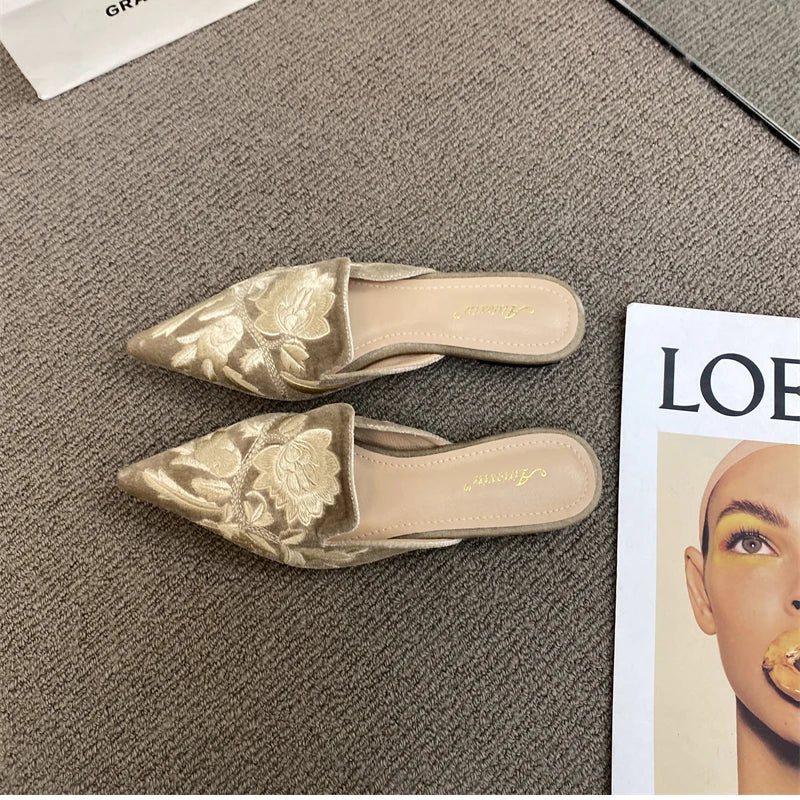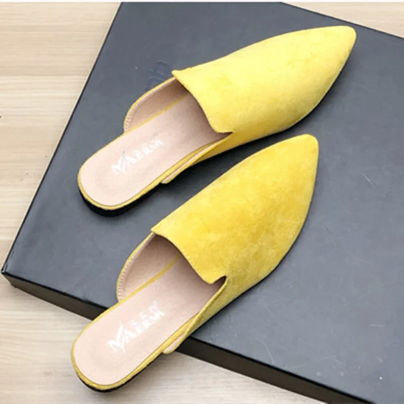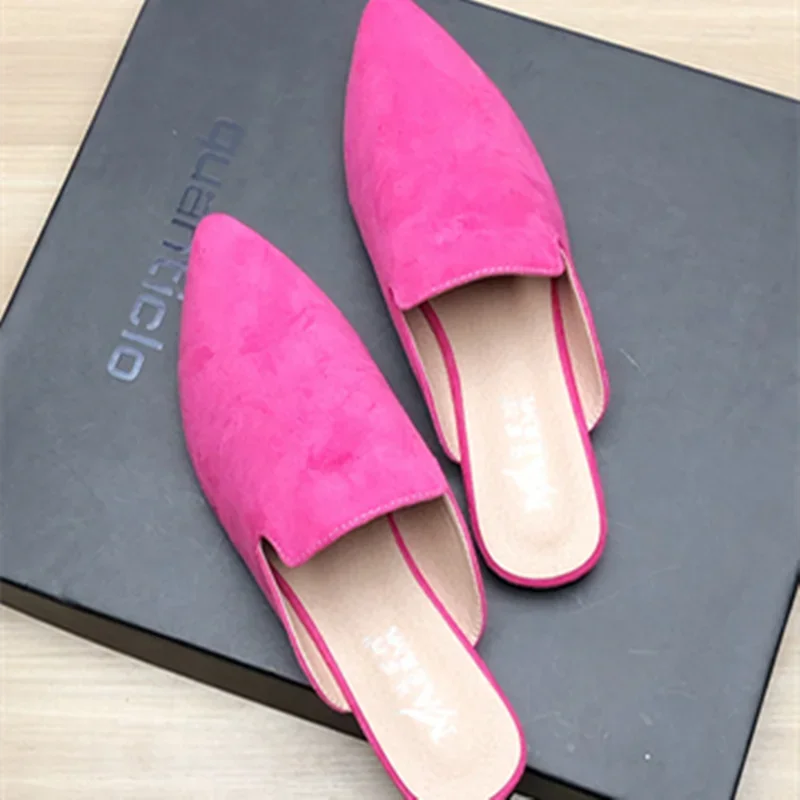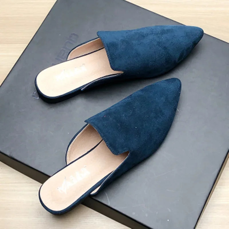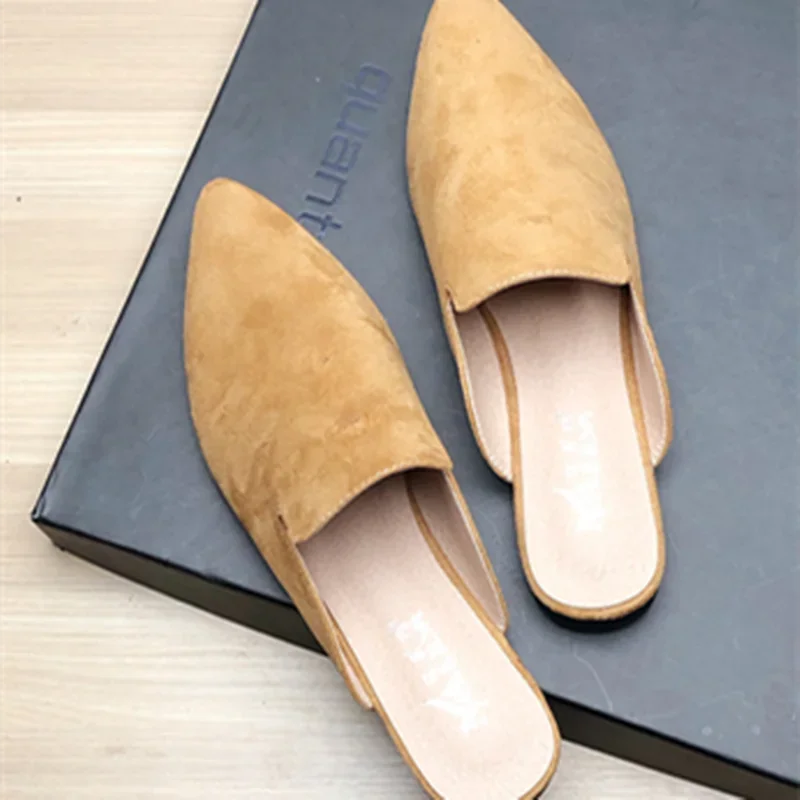 Female Simple Sewing Plain Shoes Outdoor Pointy Toe Slides Camel Blue Soft Sole Wide Fitting 48-33 2022 New Arrivals De Mujer
