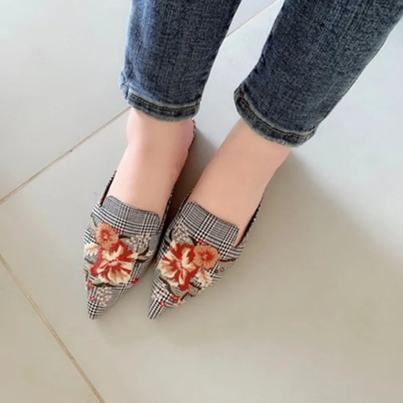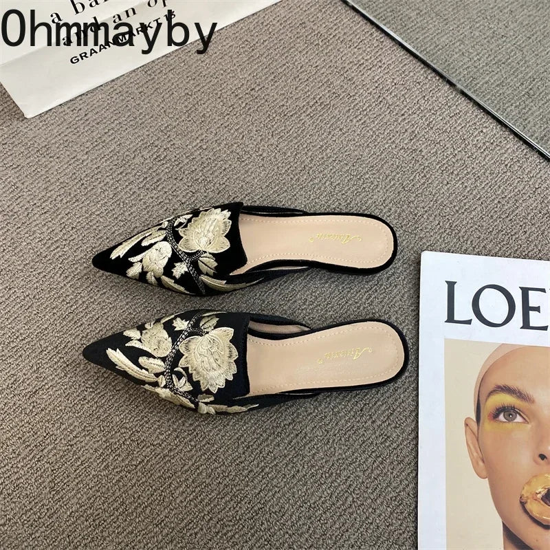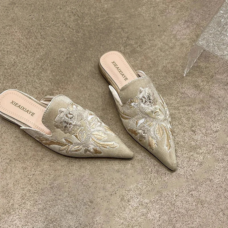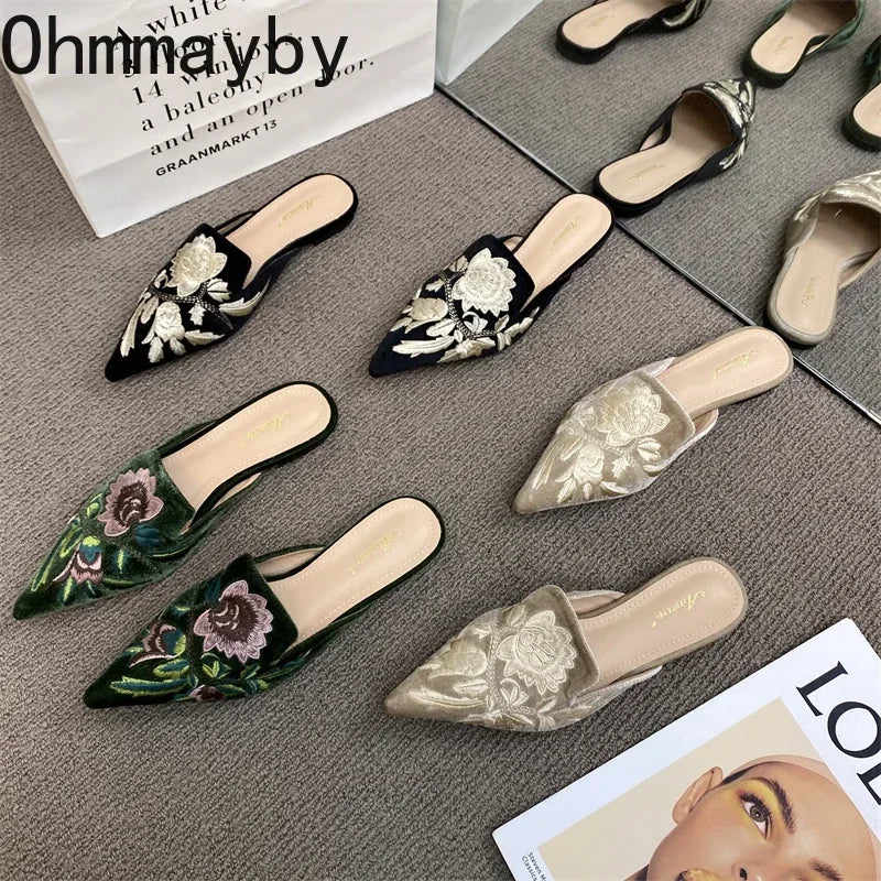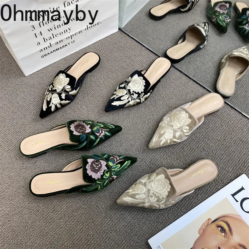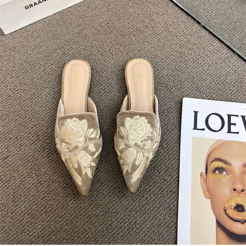 Female Simple Sewing Plain Shoes Outdoor Pointy Toe Slides Camel Blue Soft Sole Wide Fitting 48-33 2022 New Arrivals De Mujer