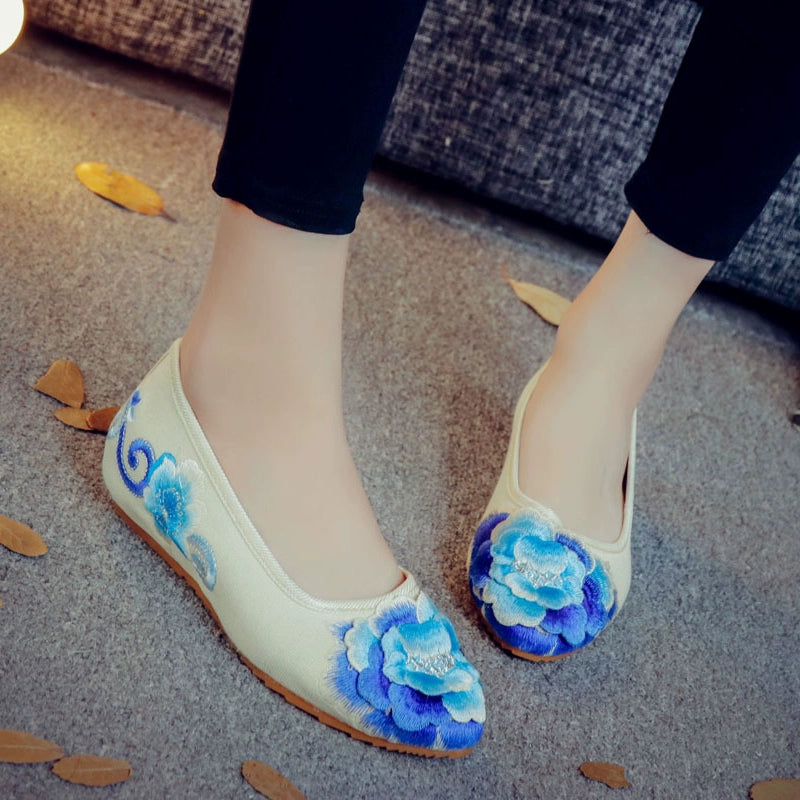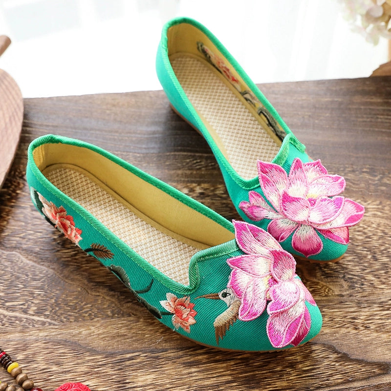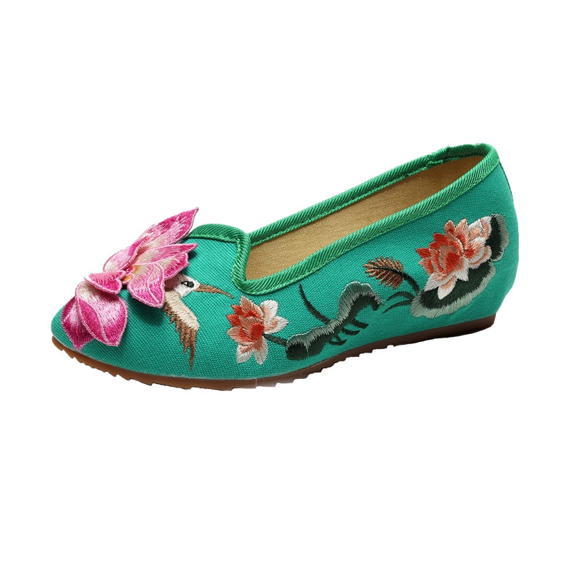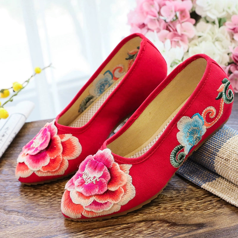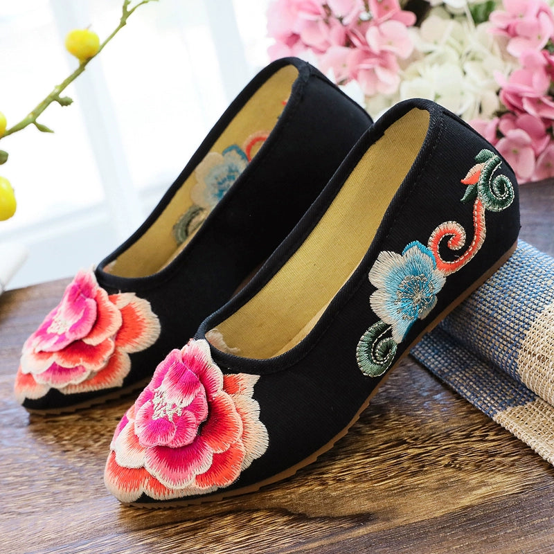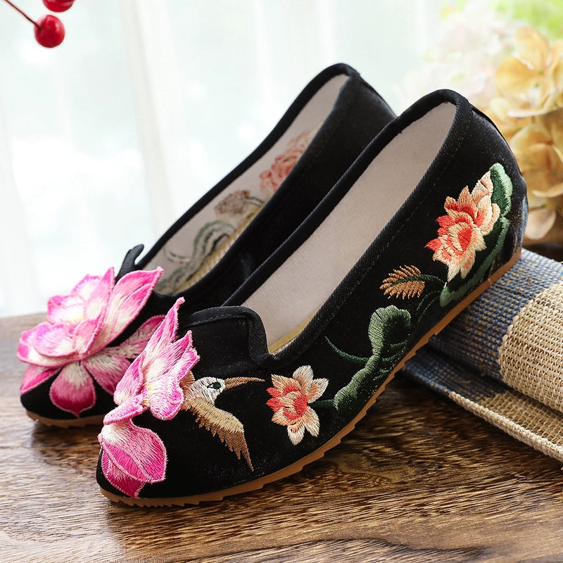 One Pedal Stereo Retro Inner Height Increase Embroidered Cotton Shoes