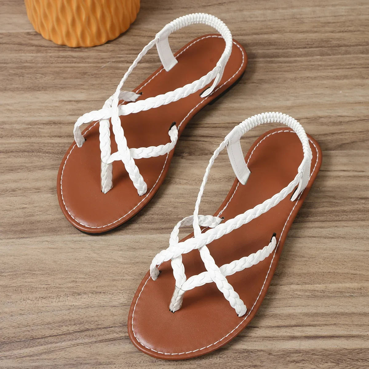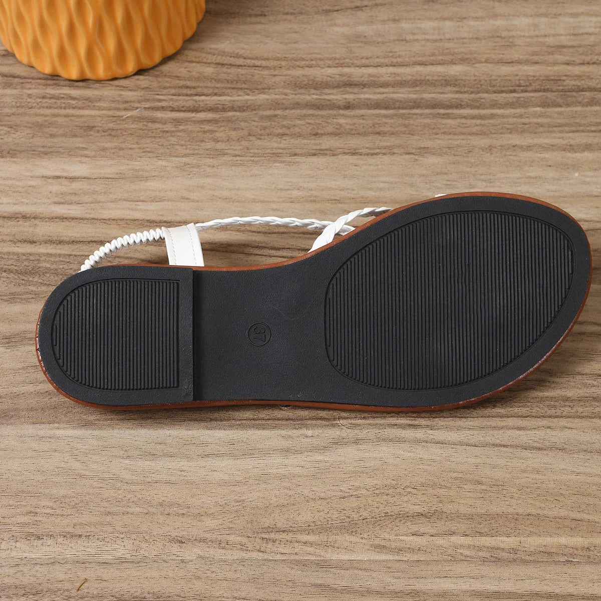 Women's Solid Color Casual Sandals, Lightweight Flat Braided Elastic Shoes, Summer Holiday Beach Shoes