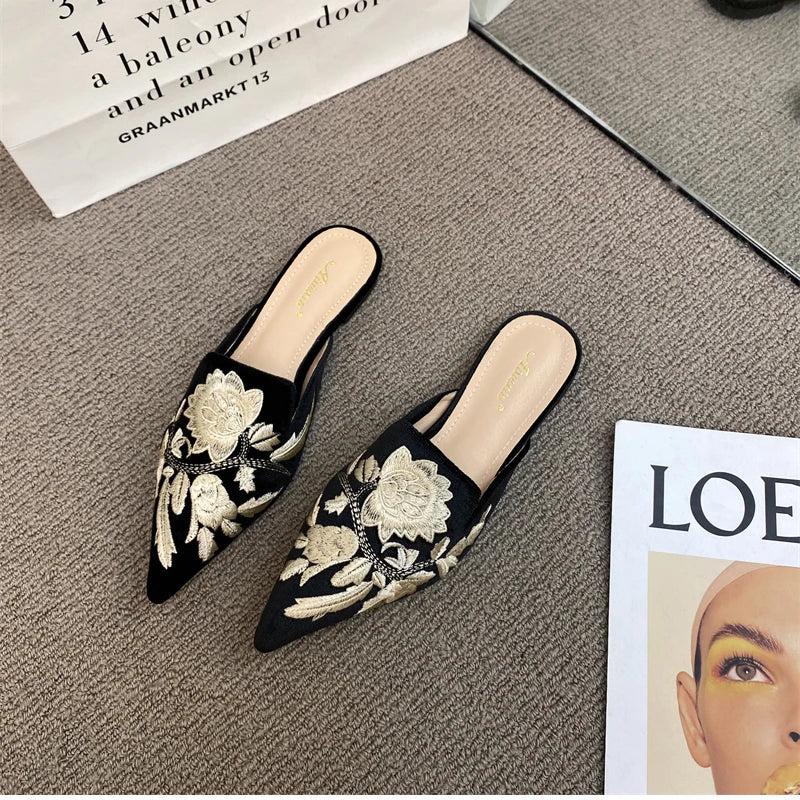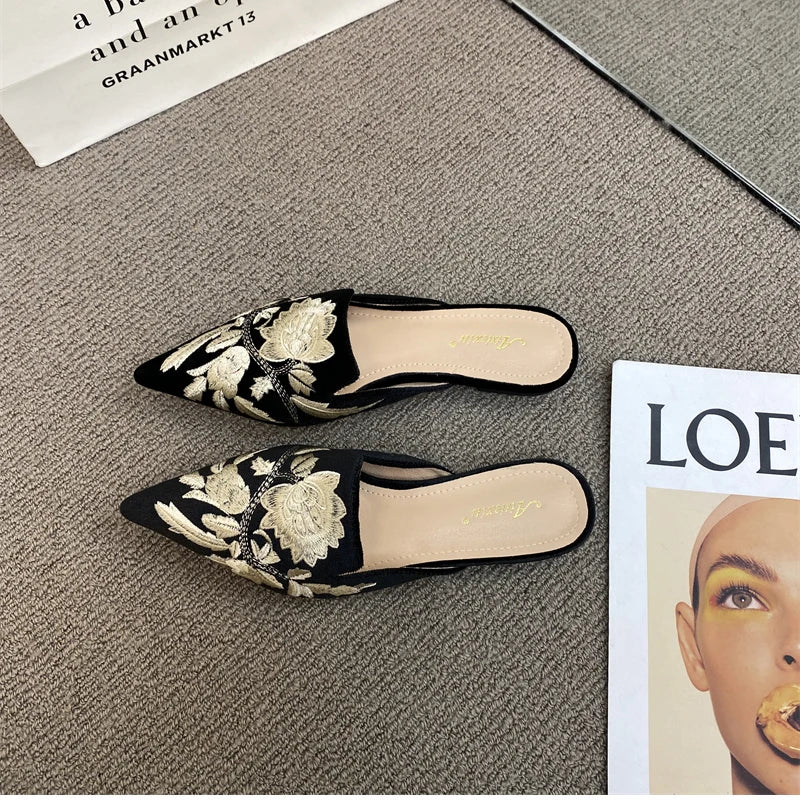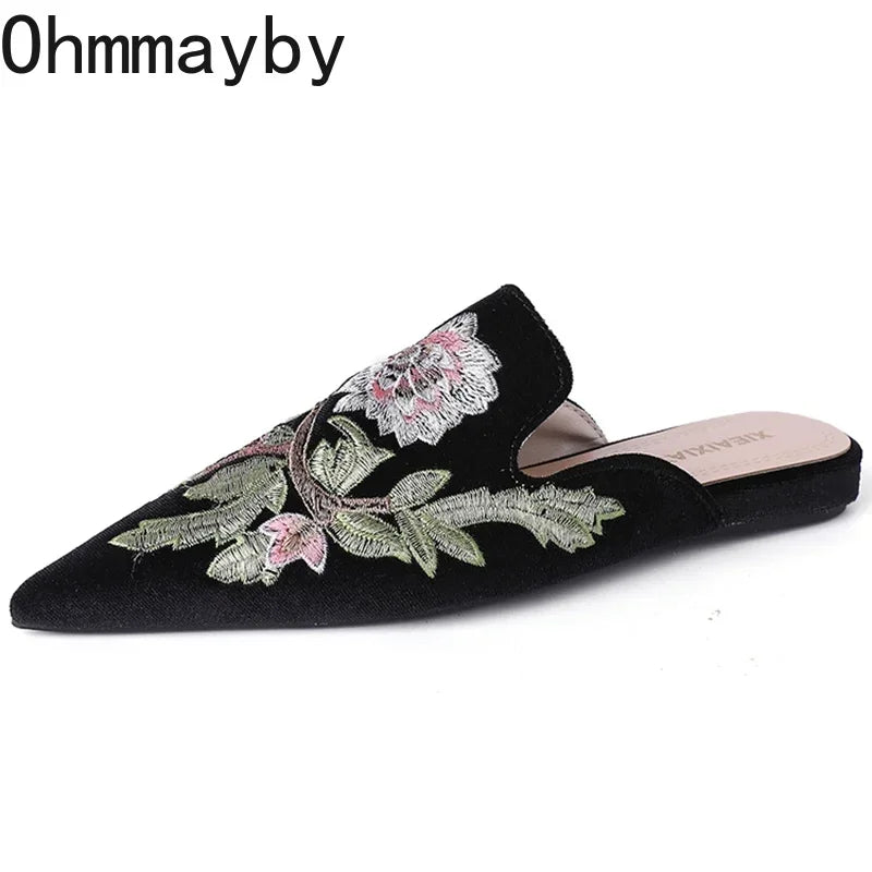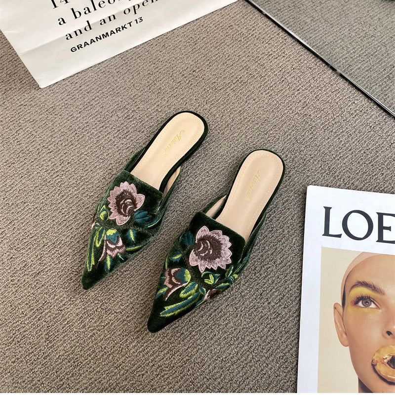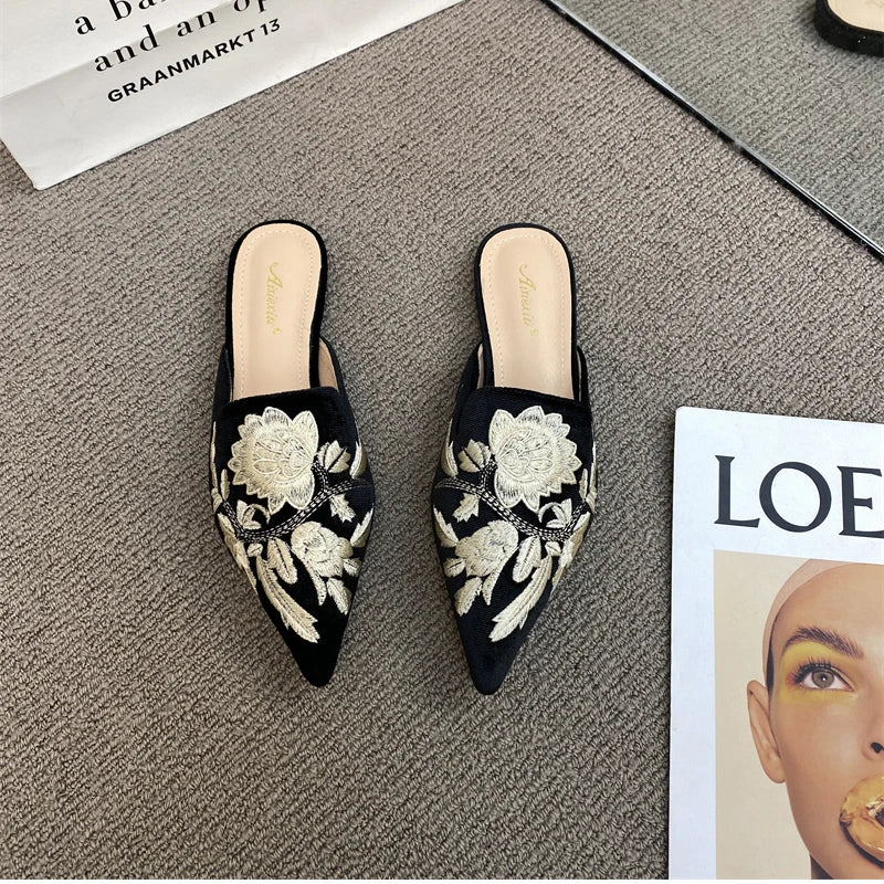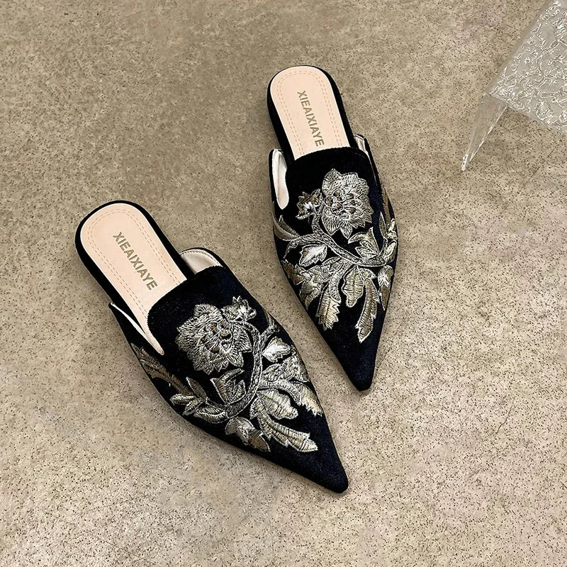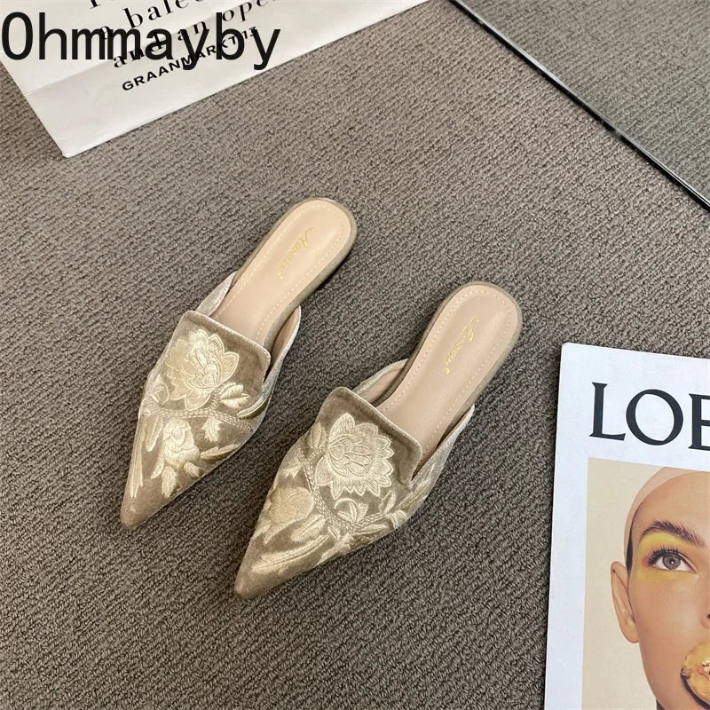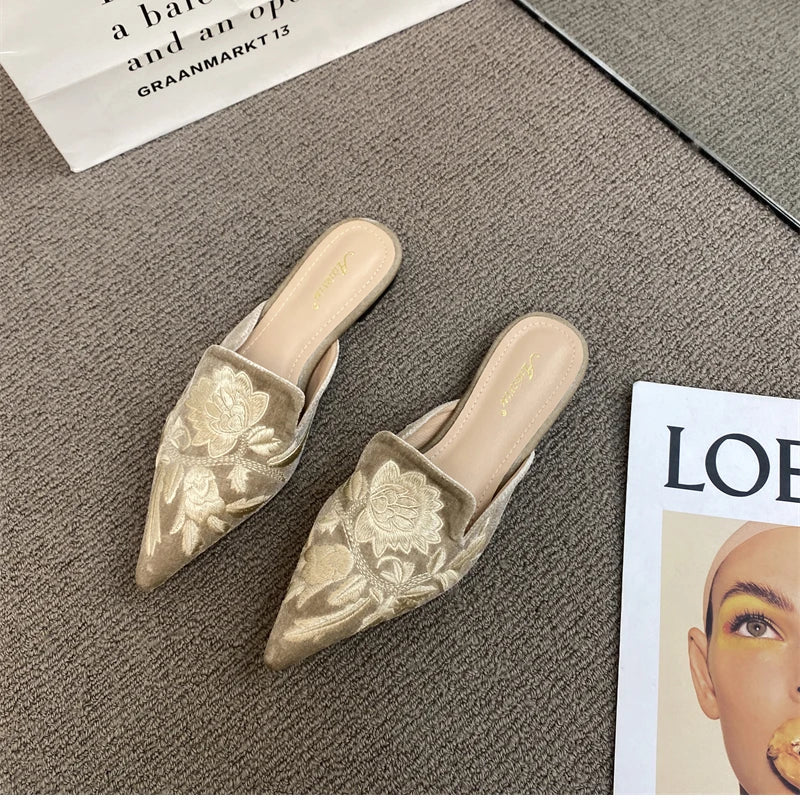 Women Luxury Fashion Elegant Pointed Toe Slides