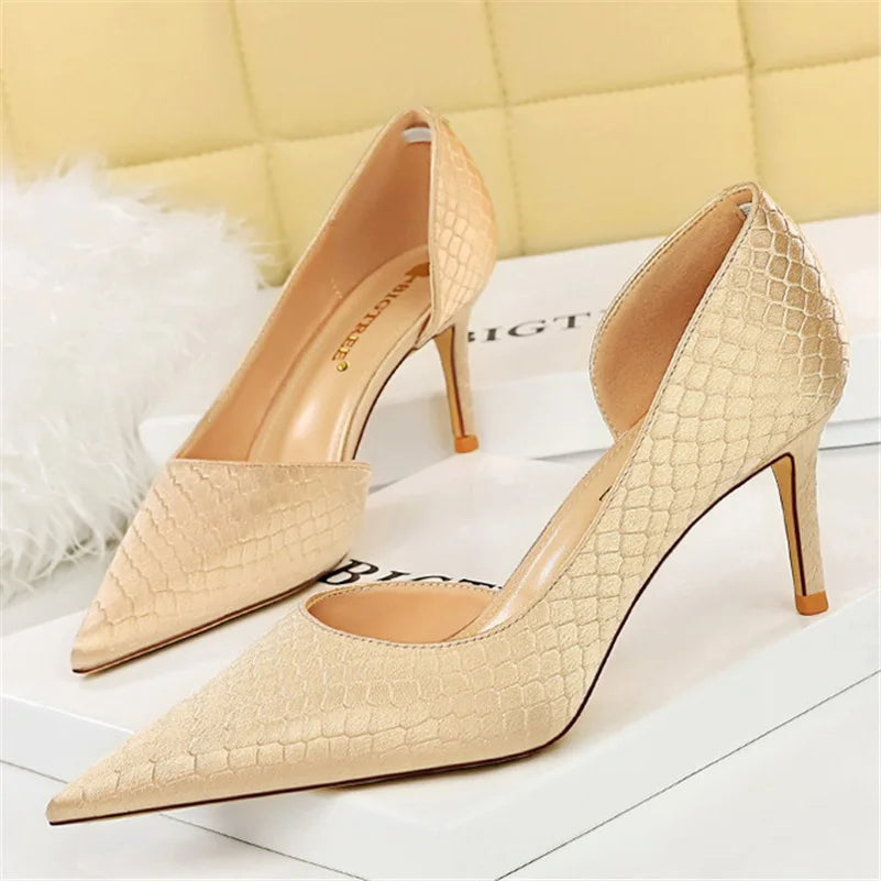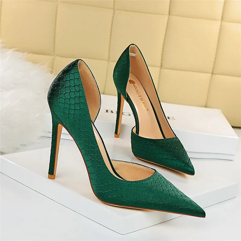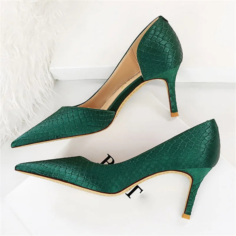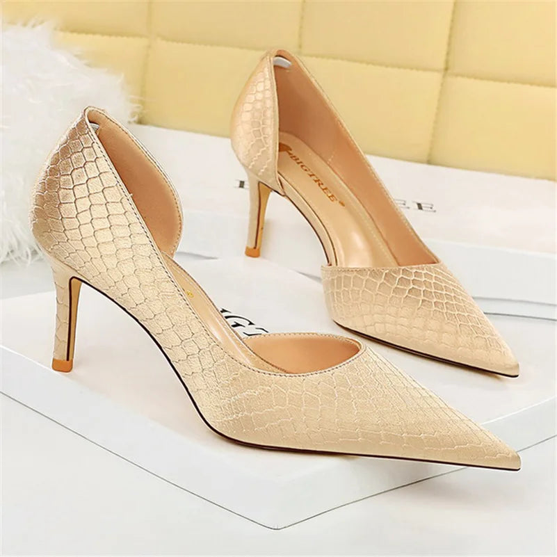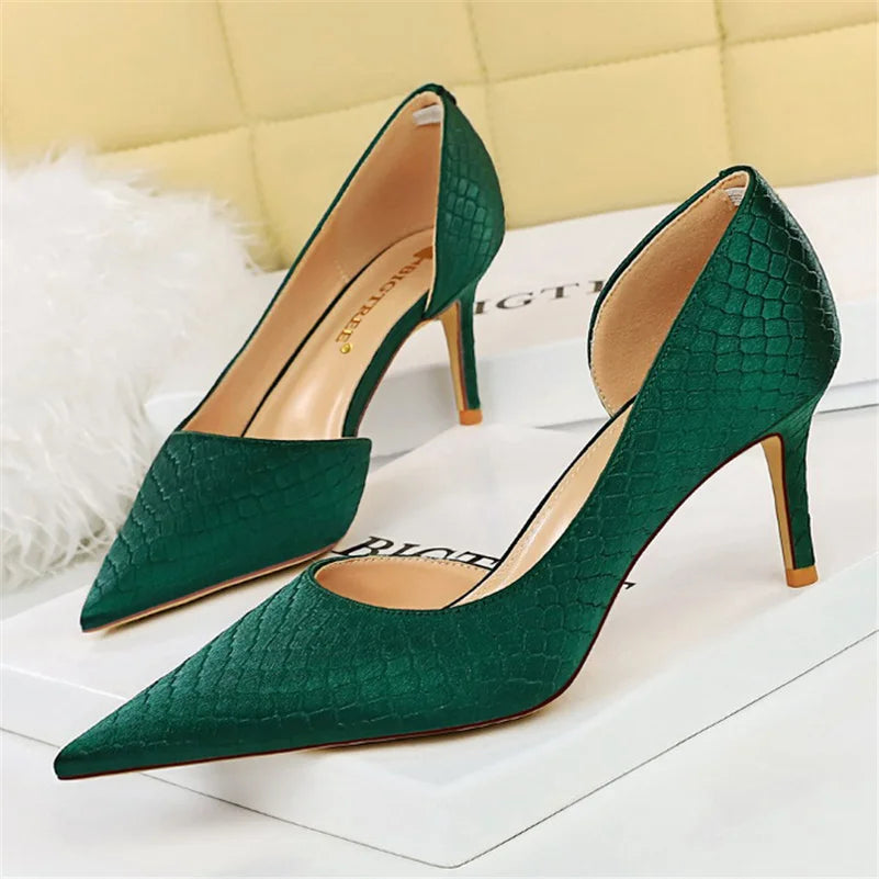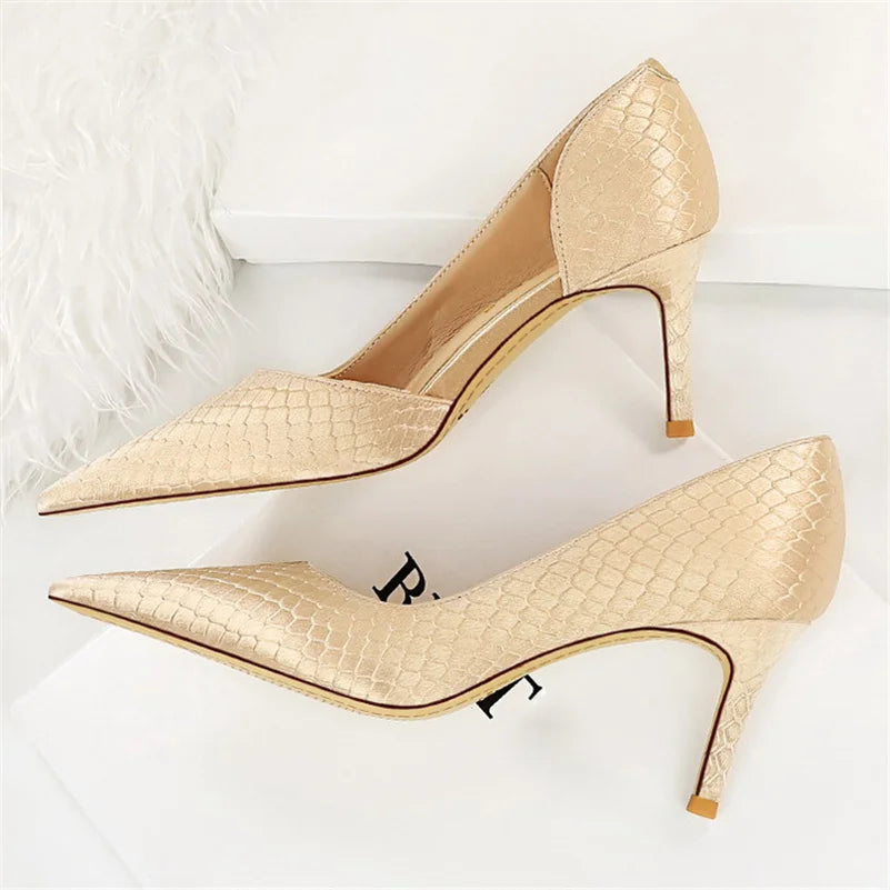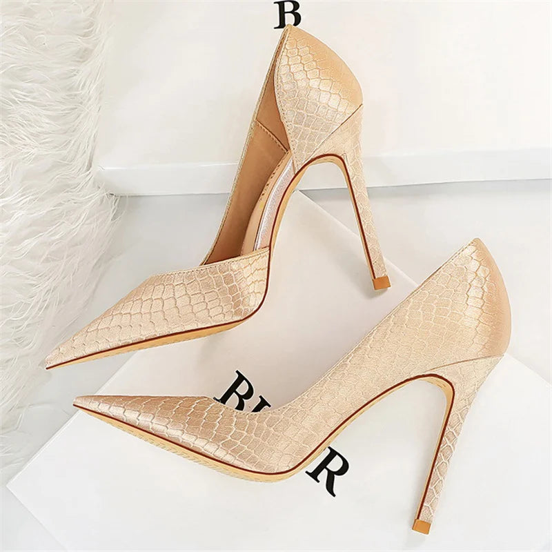 Women Pumps Red, Gol,d Pointy Toe Dress High Heel Shoes.