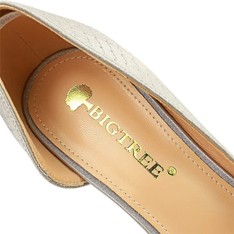 Women Flats Fashion Shoes Spring New Round Shallow Loafers Buckle Soft Sole Non-slip Sneakers Women Mouth Butterfly Knot Metal