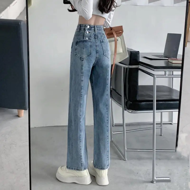 Women Denim Pants 2025 Spring Autumn Straight Jeans Vintage Fashion Female Solid High Waist Jeans Casual Trousers Wide Leg Pants