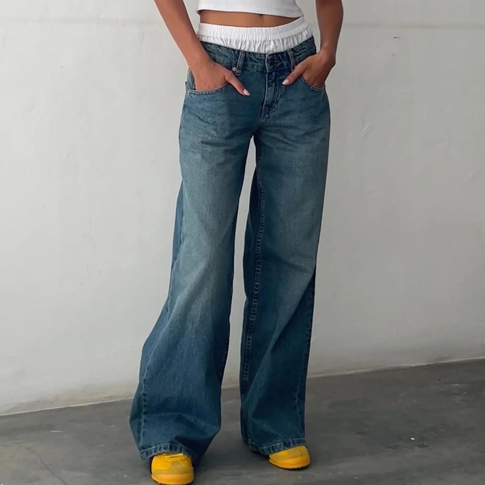 Retro Washed Jeans Women'S Design Sense Mid Waisted Straight-Leg Pants Loose Wide-Leg Mopping Pants Jeans Pants For Woman Jean